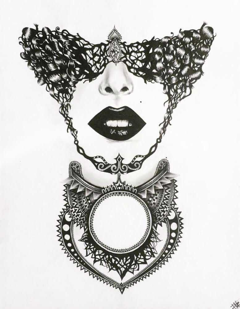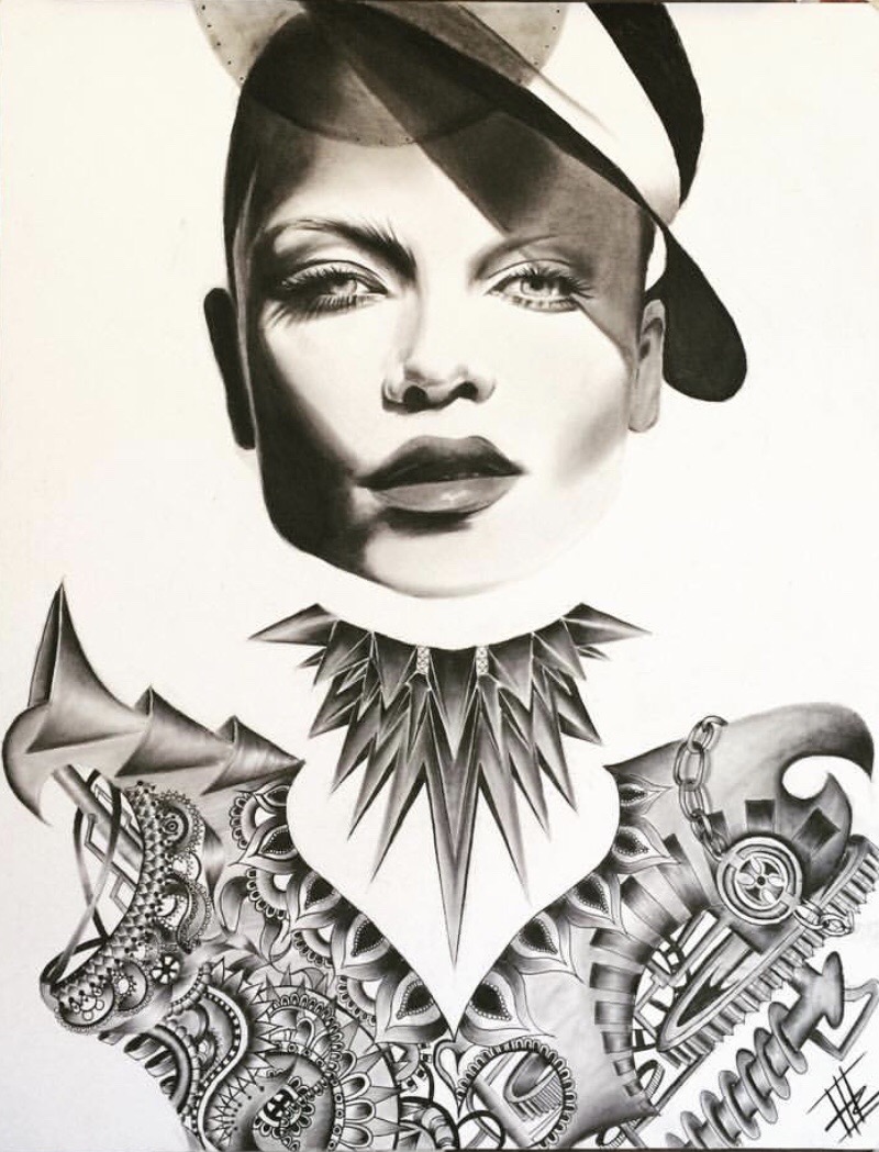 EO: I’ve always been creative since I was little. Obviously, my forms of expression have evolved to the way I dress and carry myself but it all definitely came from art which I’m still very passionate about more than anything. I started to explore charcoal a while ago and it sort of became my main focus when I took advanced art classes. I fell in love with how dark, yet soft, it was. Even the way it moved and blended into bristol paper, it became my favorite. I use micron pens for smaller intricate details and blend it with charcoal. It creates a nice depth in contrast between the two and the figures become more 3D.