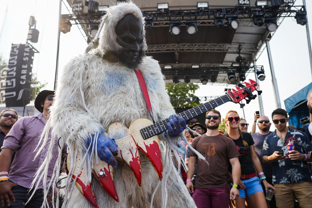 Los Mocochetes brought a seriously funky situation to the Sesh Stage. With an altar of various items at the base of the stage, the group exploded in a fury of Chicano funk darting around the outdoor stage with wild abandon. It wouldn’t be a Mocochetes show without political statements and urging of people to be better than the current administration, and with that, the band asked the tough questions — begging the audience to take away more than just the music. – Kori Hazel
