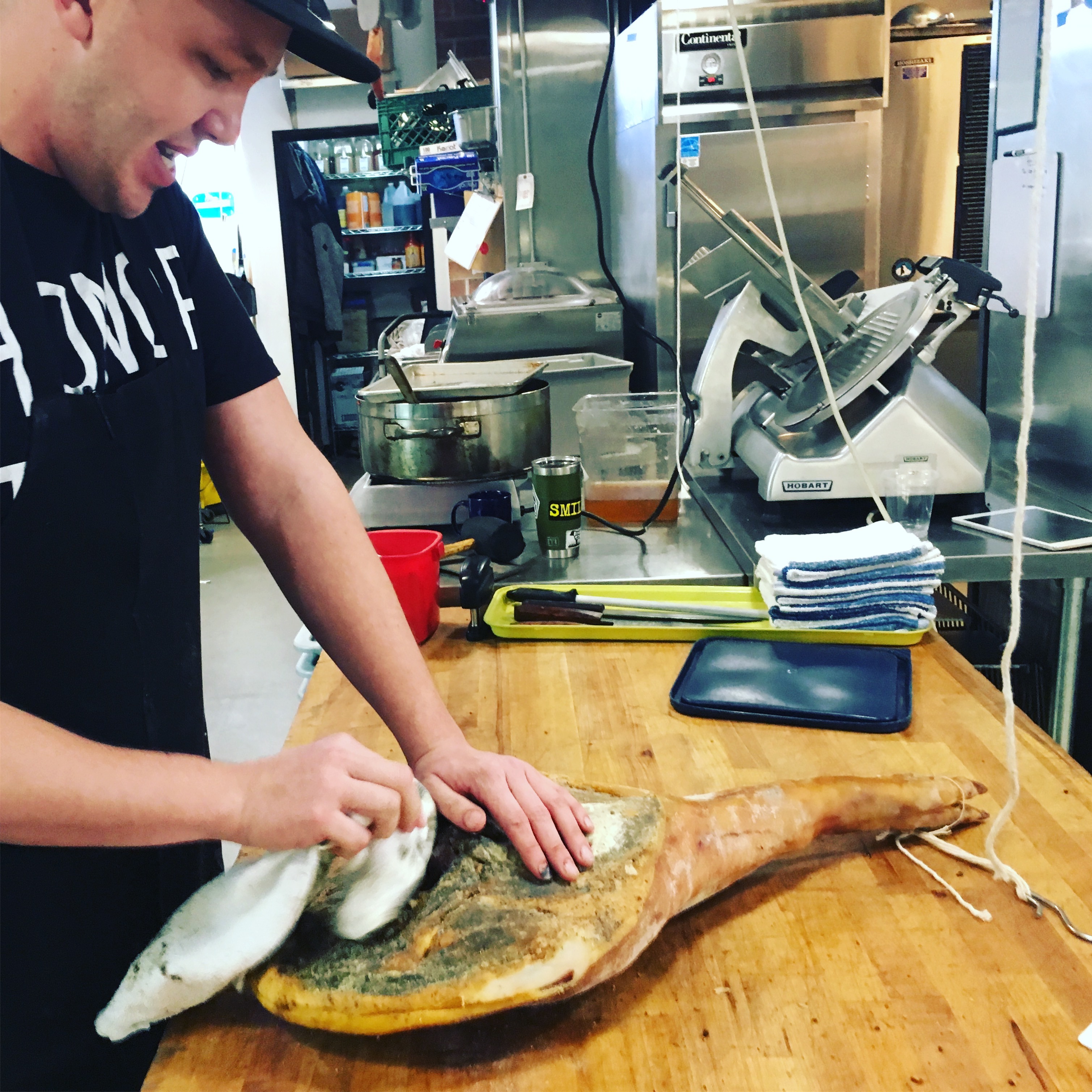 When Nate Singer approaches any piece of an animal, he does so with finesse. The way he dances around the a fairly cramped butcher counter — floor coated in slippery remains — still at top speed and with great precision, is an impressive lesson in grace under pressure. He lives and breathes the stuff, so to find that he is a third generation butcher — with family still running a steakhouse in Cody, Wyoming — is hardly surprising. In addition to breaking down entire cows, pigs, sheep and whatever else gets tossed his way, he ages, renders and slices every bit of edible material into products that range from interesting to downright sublime.