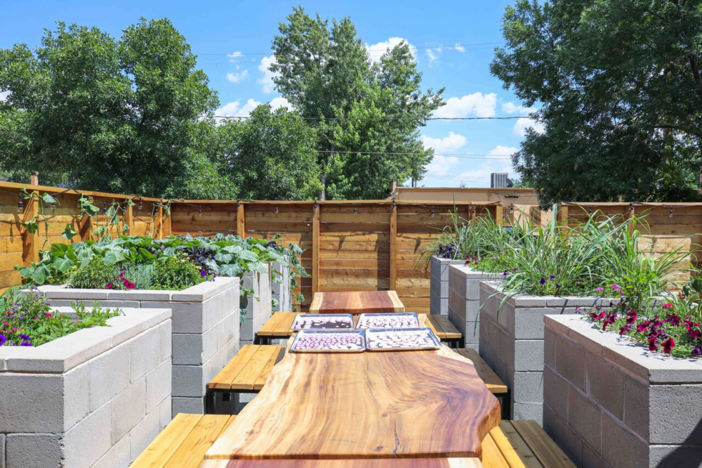 One of the most beautiful and unique parts of the restaurant is the backyard. Much of the produce and herbs are grown back there using Row 7 seeds. Some of the current plants are cucumber, squash, lemongrass and several other vegetables and herbs. The centerpiece between the two rows of gardens is a long table and benches made from Costa Rican wood. In addition, there will be a large fire pit on the other side with more benches surrounding it.