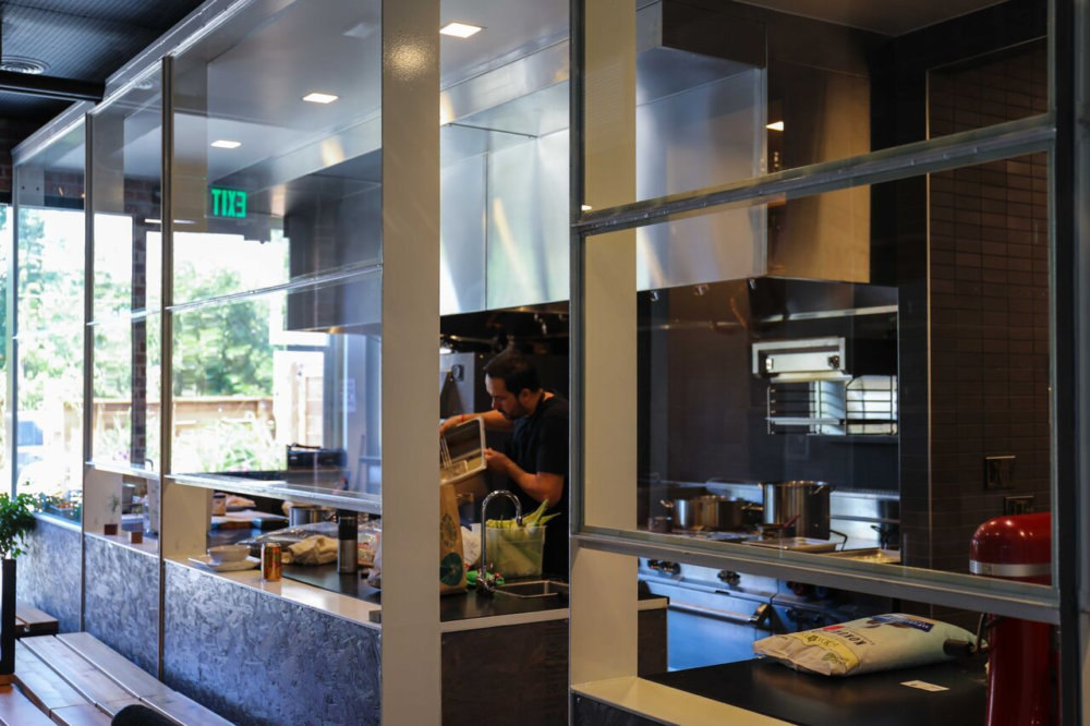 The kitchen has big clear glass windows where you can see the chefs cooking, making the experience more connected. Equally important, all of the cooking and bar equipment is specific and inspired by Whitaker’s culinary travels. He has spent a lot of time in Tibet where his sister lives and has worked in dumpling houses and spent time in Asian night markets. Recently, he and The Wolf’s Tailor crew went to Iga, Japan to learn how to cook with Donabe clay pots. He’s also studied in Hong Kong and cooked in a town north of Naples, Italy.