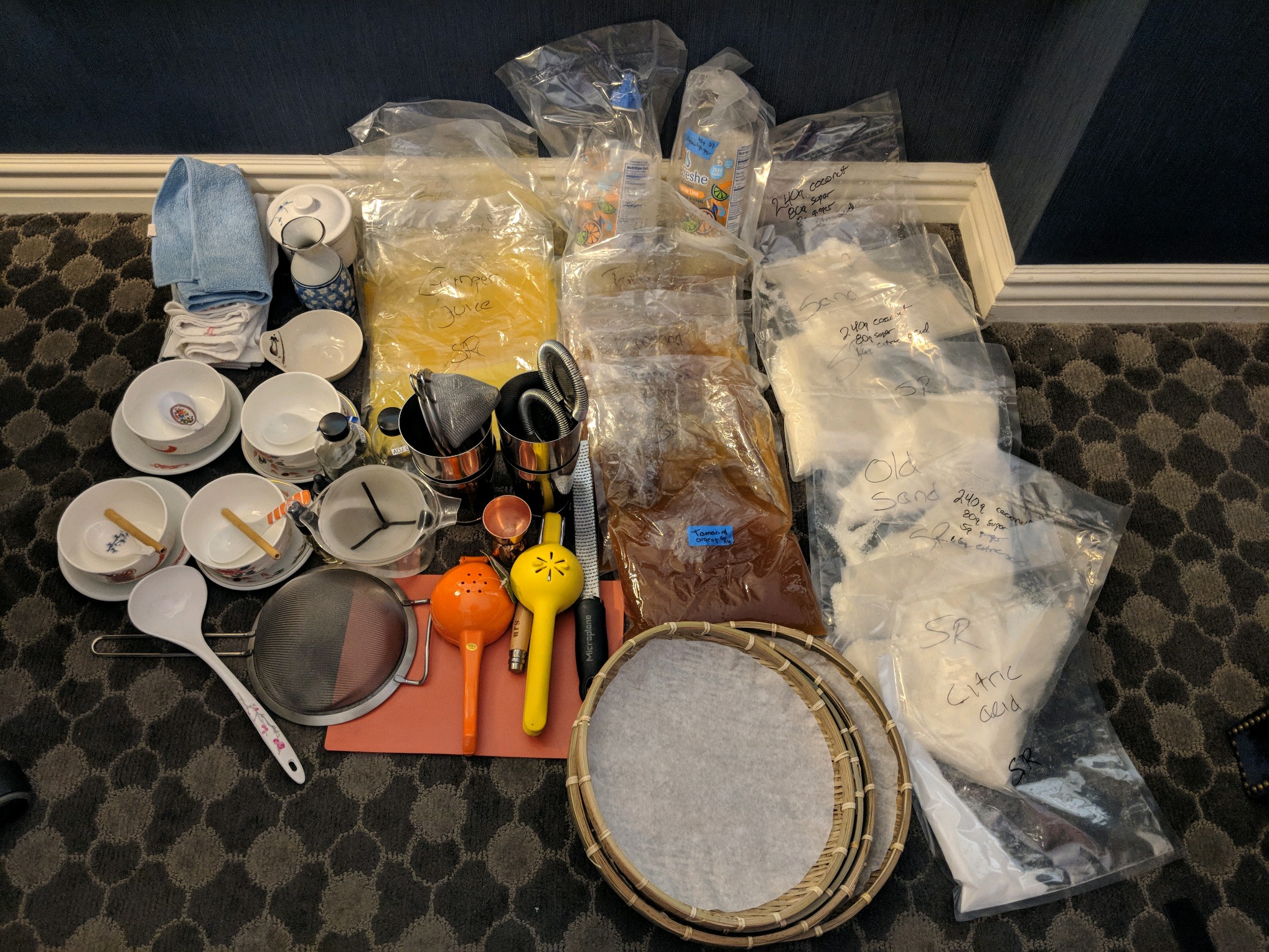 The drink used an ingredient from each of the countries. Blending gin, tamarind-almond syrup, adjusted orange juice — in which citric acid is added to produce a more lemon-like punch — and coconut-ginger and garnishing with basil, mint and an absinthe spritz, Ruggiero served the drink in teacups atop a basket of “edible sand” — a homemade blend of dehydrated coconut, ginger, citric acid and sugar. Highly ornate presentations are central to the competitions where drinks can range from sophisticated and traditional-leaning to highly outlandish. For this year’s Tequila Herradura competition in Denver, Ruggiero intends to make a grilled cheese and tomato soup margarita.