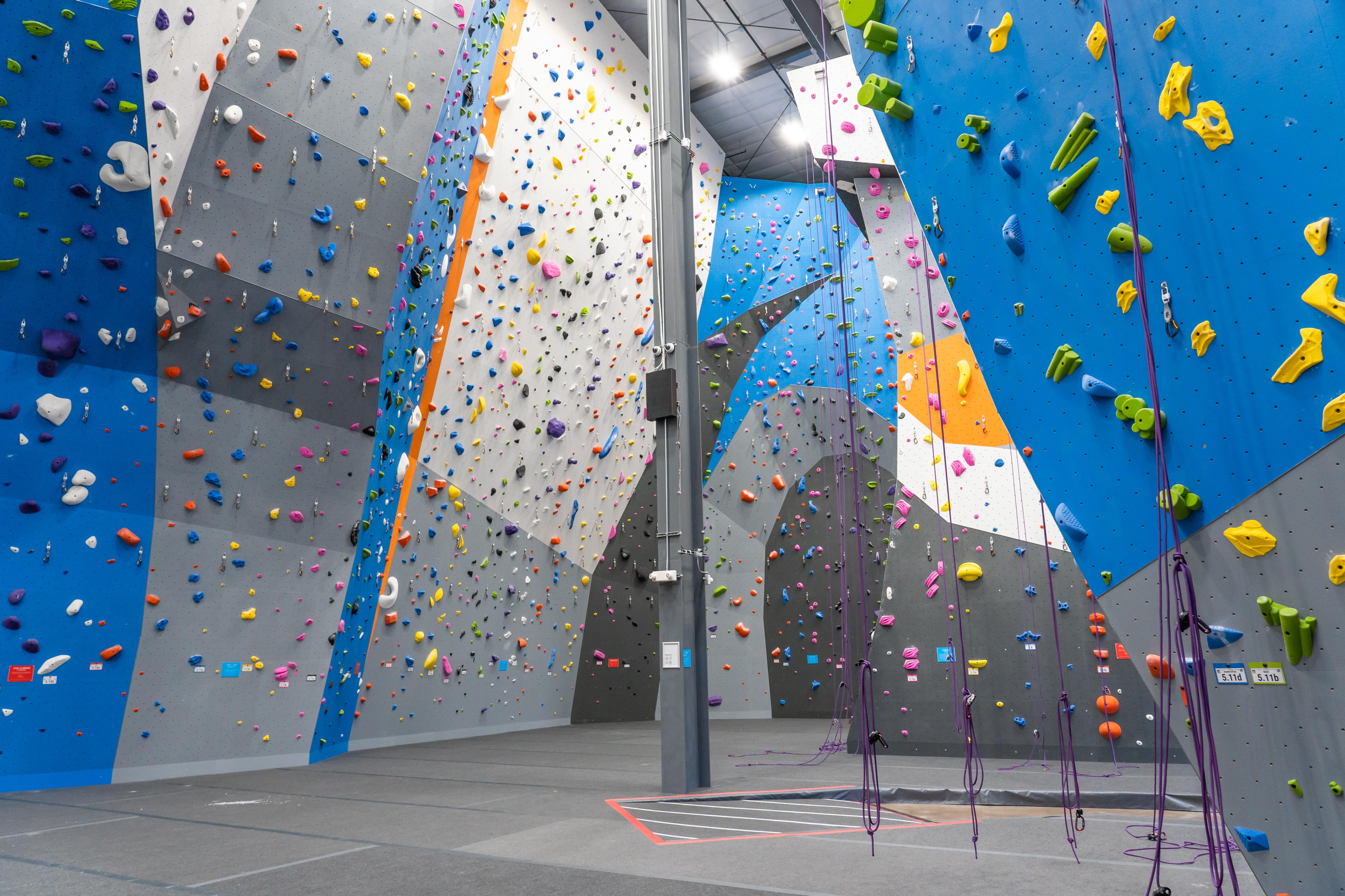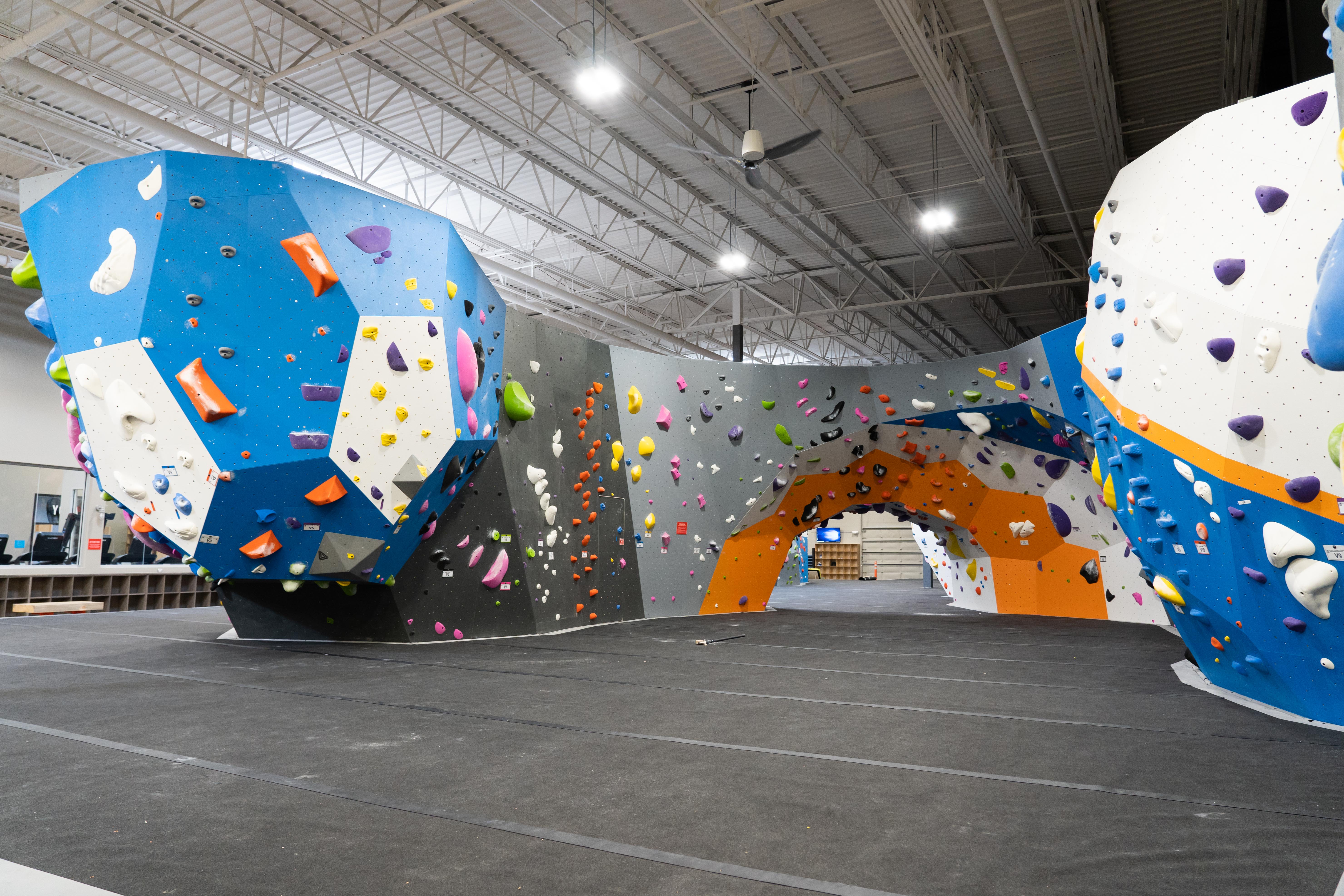 At 53,000 square feet, the brand new Earth Treks climbing gym is claiming bragging rights as the biggest in North America. Opening tomorrow, it’s obvious why the former Sports Authority’s corporate headquarters is taking the title. Not only were the ceilings raised in certain spaces to 55 feet, the new gym is packed with routes — 500 to be exact.