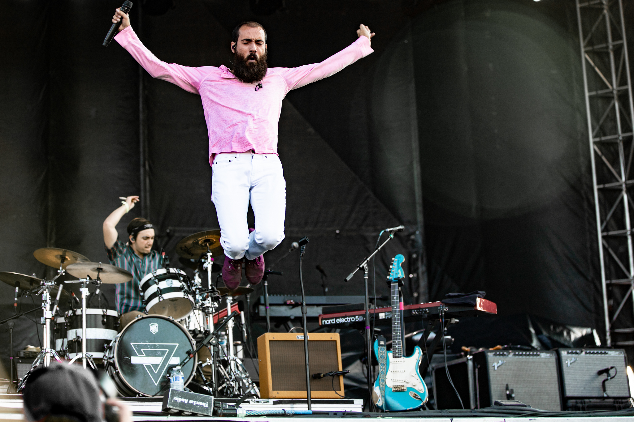 The Cold War Kids began their performance with a cover of Rihanna’s “Love On The Brain,” an odd start for a band with beloved original music. Shortly after, however, they did launch into their hit song “First,” which seemingly brought more people to the stage from the surrounding vendors and ignited the existing crowd. The American indie rock band wrapped up their performance with a rendition of “Something Is Not Right With Me”off their 2008 album Loyalty to Loyalty. The crowd was seemingly fuller than it had been all night as the band said goodbye and packed up in preparation for the next act.