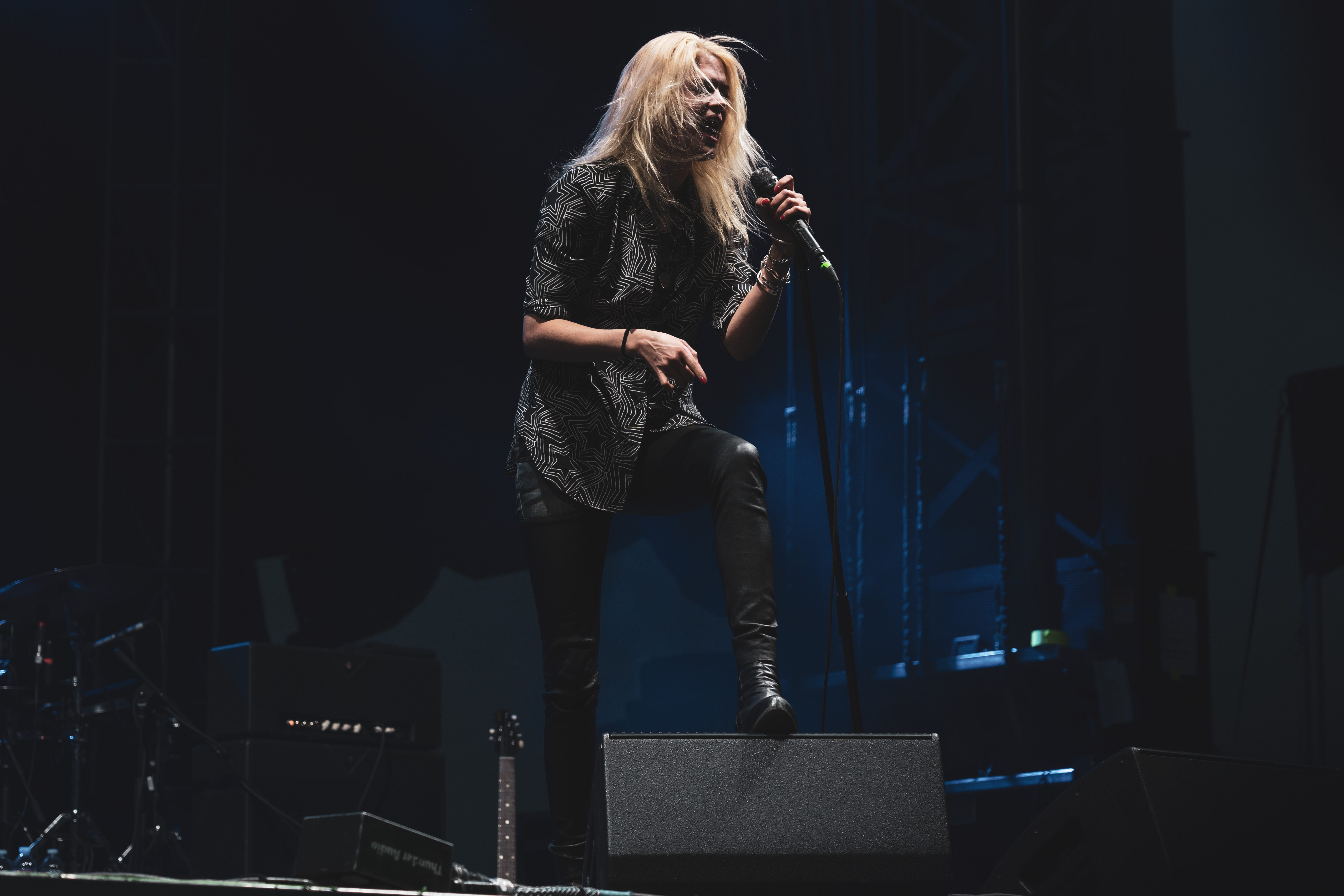 Despite the number of problems Velorama faced, if you attended in hopes of seeing great live music you had many opportunities to get your fill. On Friday, two acts particularly stood out — Philadelphia based Hop Along and UK’s The Kills. Hop Along’s frontwoman Frances Quinlan has an uncanny ability to fluctuate her vocals between sweet and melodic and a rugged growl. It propelled the band’s indie-folk into the realm of full-blown hard rock. The band kept it moving, making the most of their 45 minutes on stage. The only time they stopped for stage banter is when Quinlan took a moment to applaud Denver’s free clinics — having attended one after getting very ill last time she was in town.