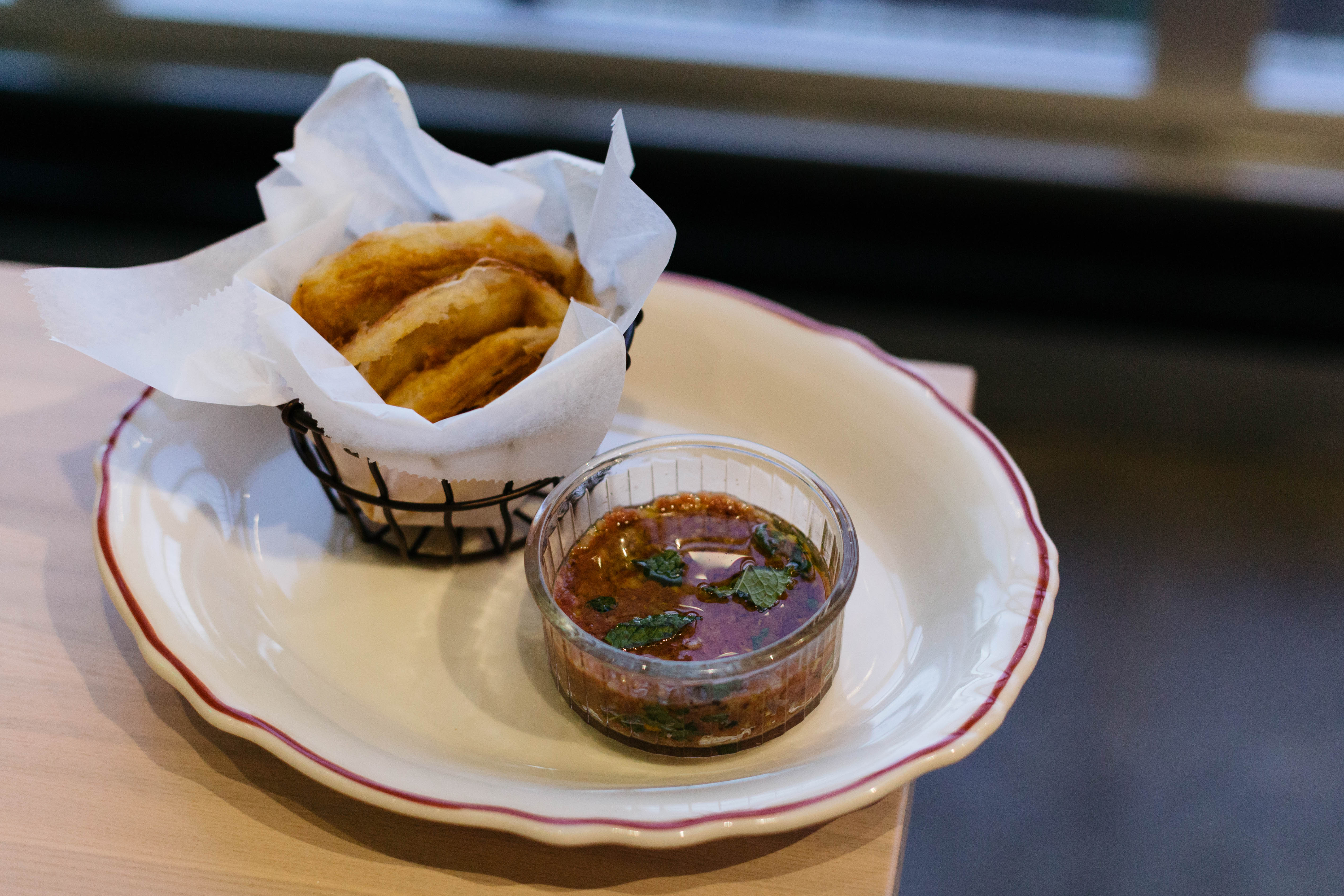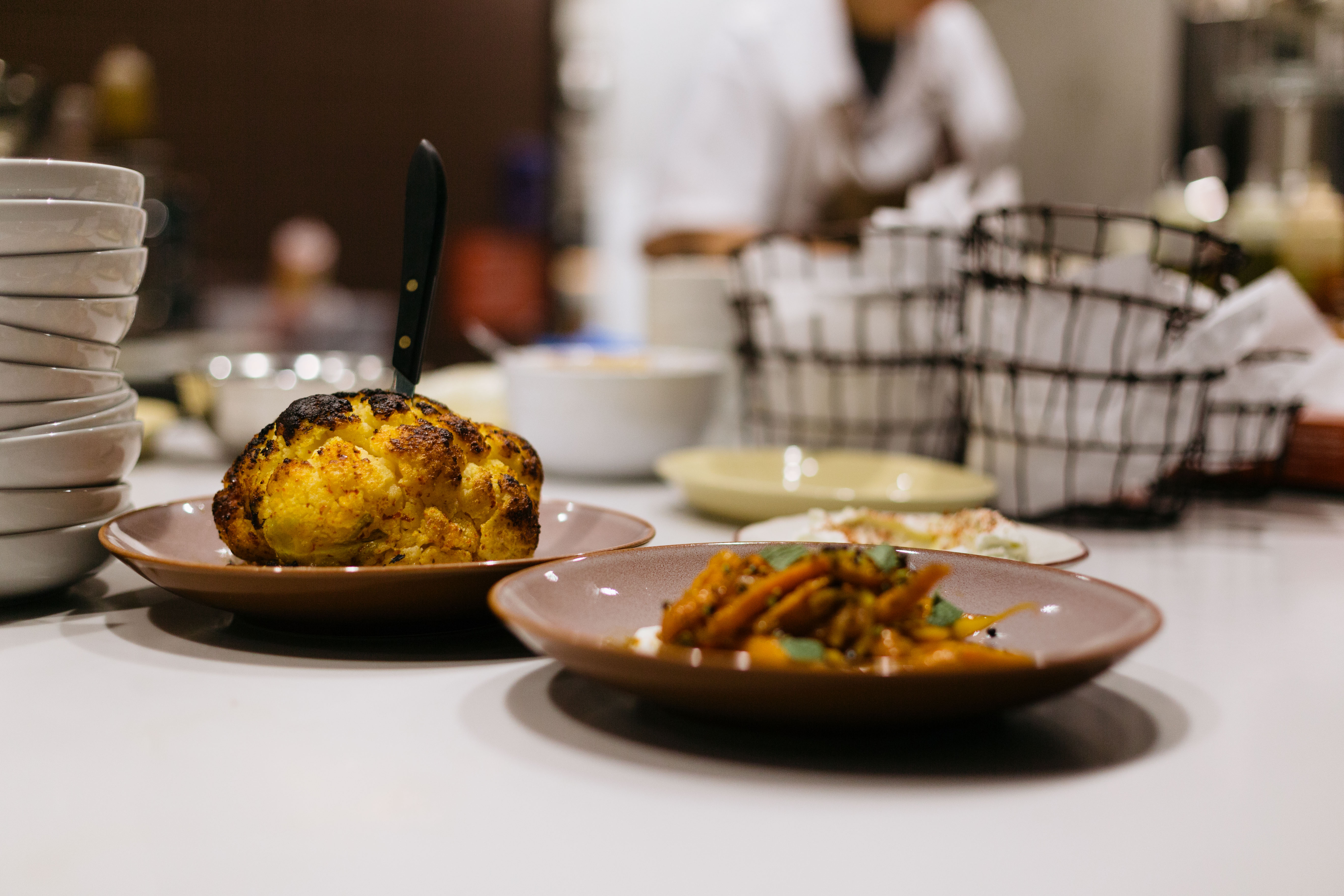 Safta just opened this past weekend inside the brand new Source Hotel. Located in a hyper-modern building full of angles and concrete, it may seem like a hard spot to recreate something that reminds you of your grandmother. But the rose toned walls paired with blonde wood and white orchids softens the space just enough that you instantly see the connection. Shaya, half-jokingly said it reminds him of a hipster grandmother’s living room. The inviting space feels much more casual than your typical high-end restaurant and in some sense, that’s reflected in the food too.