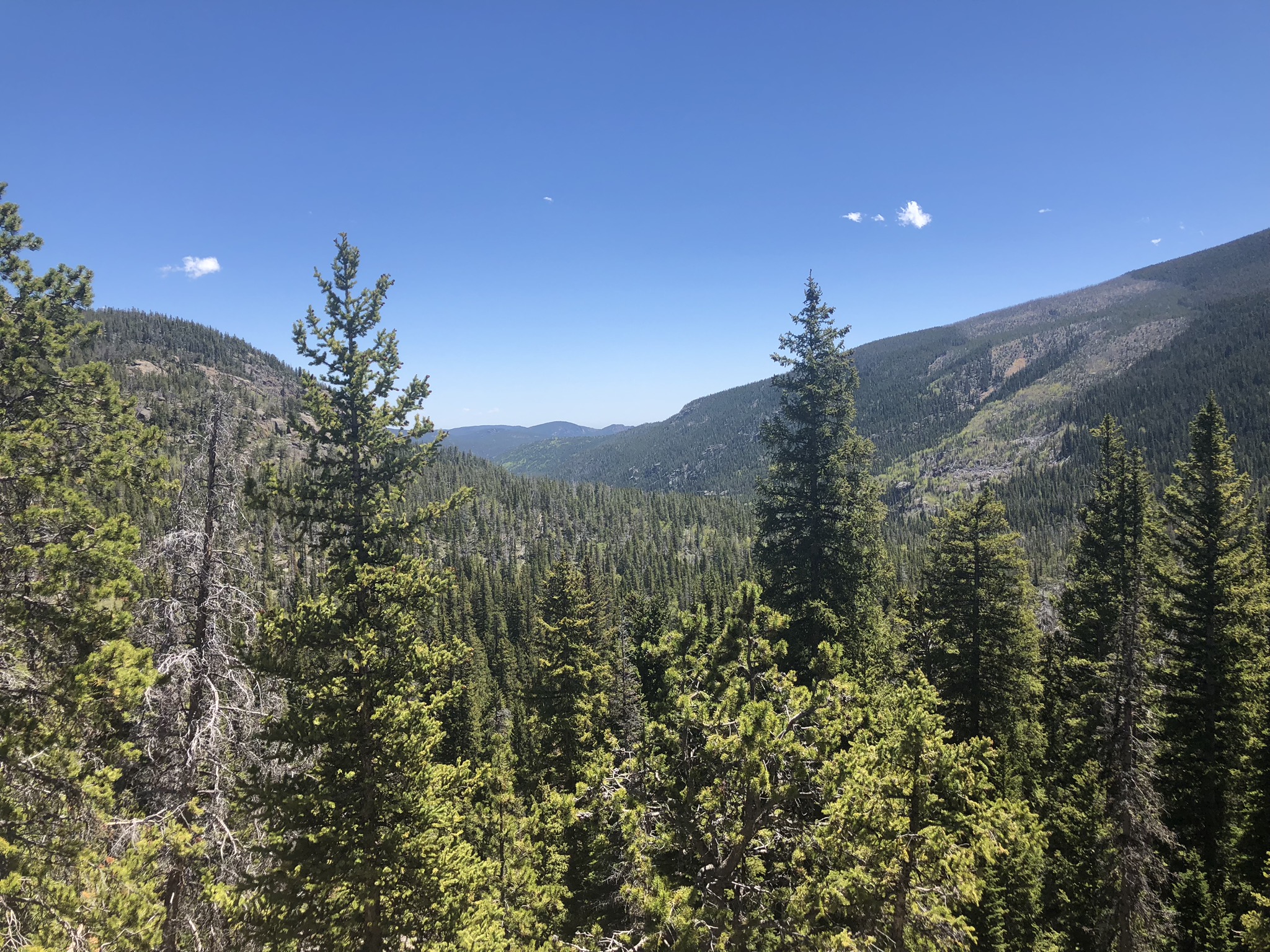 Sandbeach Lake Trailhead takes you to one of Rocky Mountain National Park’s larger subalpine lakes after weaving through plenty of viewpoints and impressive pines. To get there, go back towards CO-7. This trail head is right after 84 splits into Highway 115.