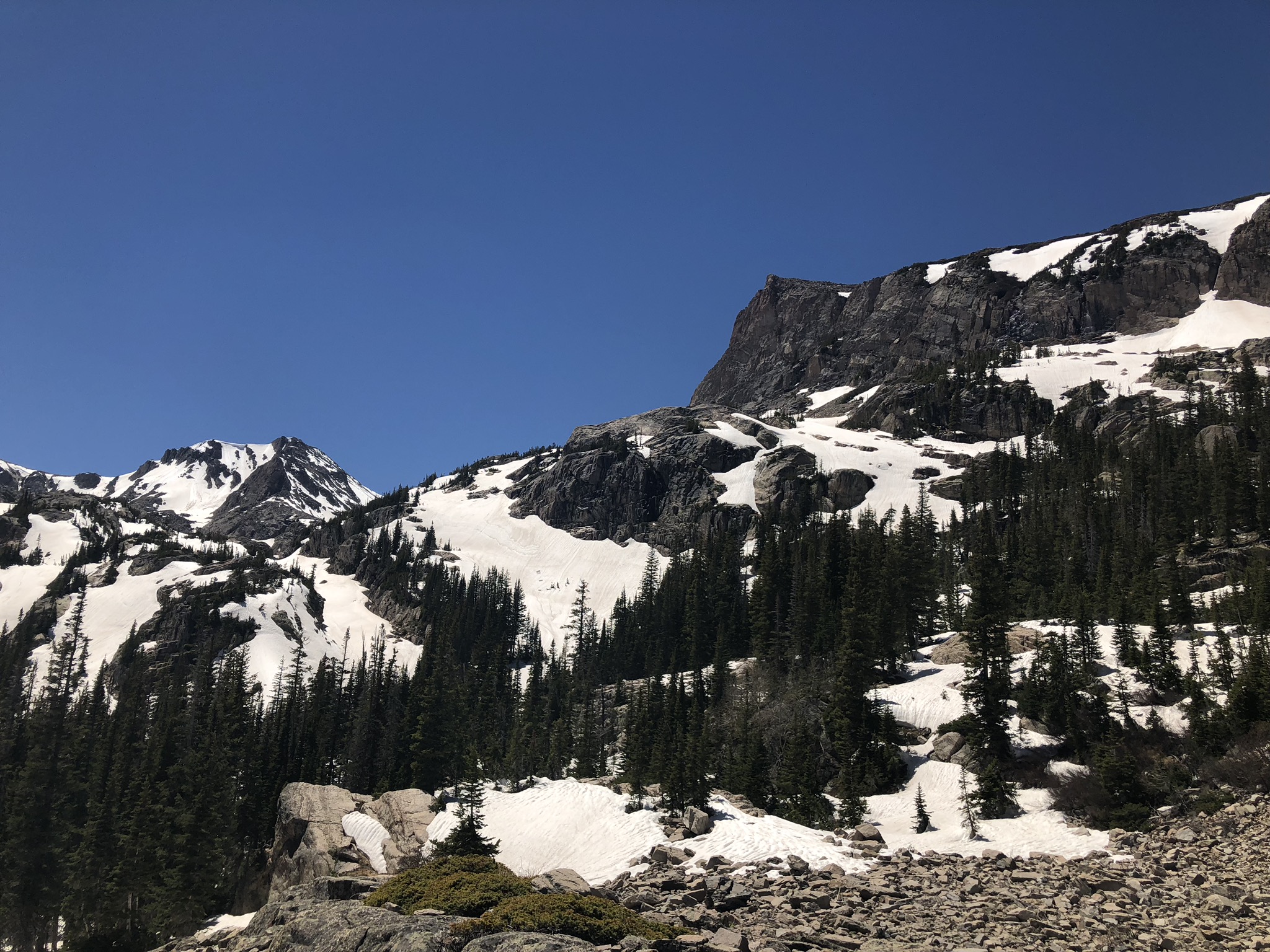 What you’ll see: Boulder scrambling for the final quarter mile before reaching a pristine alpine lake with a surrounding cirque wall of Ouzel Peak, Mt. Copeland and Mahana Peak.
