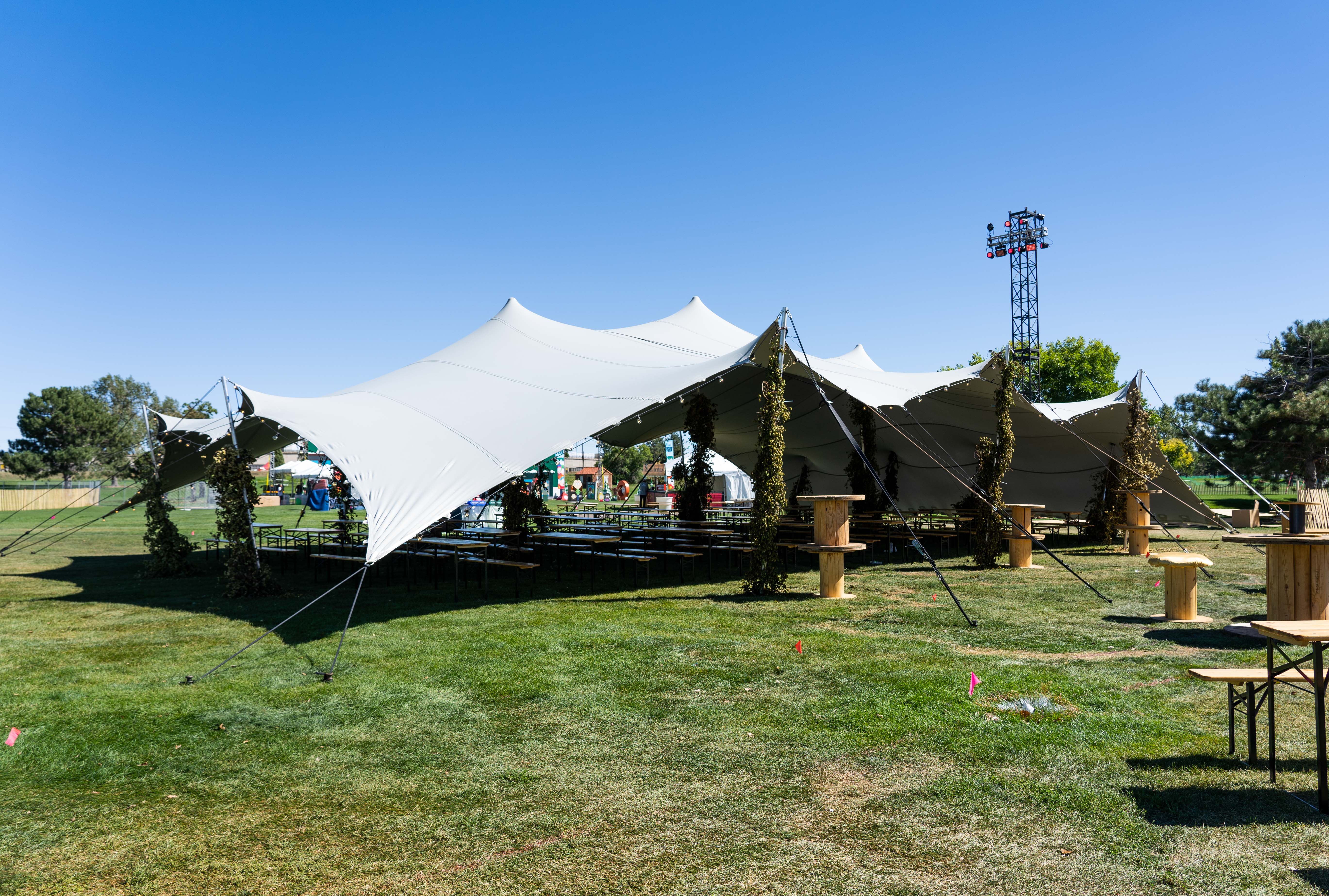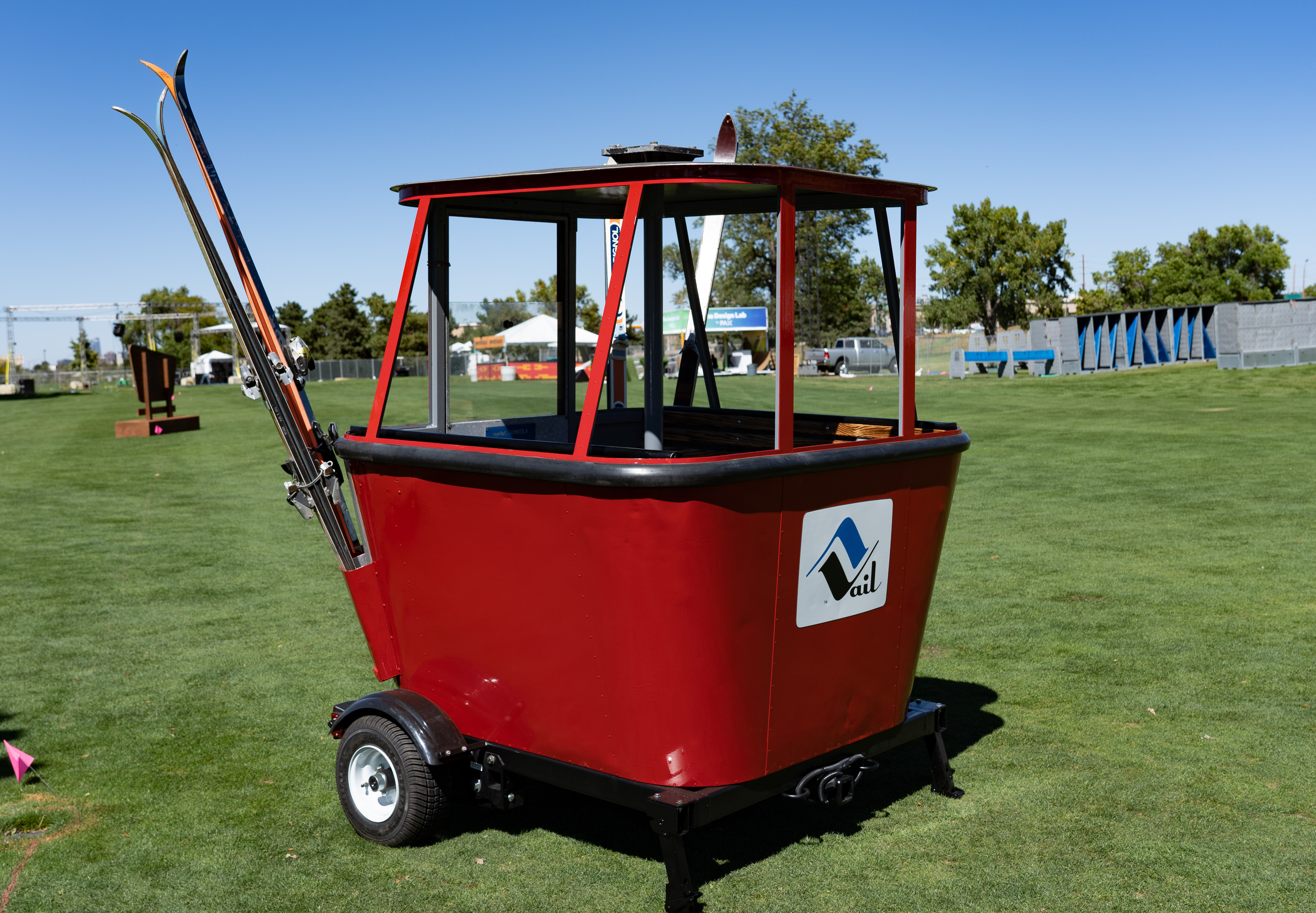 For fans of dance music, The Break Room — which sports a stacked lineup of dance artists and even yoga— sports a 360-degree sound system. Other activations include the ’80s-themed ski lodge with ski-centric decorations and sponsor activations like a Bud Lite Dive Bar Lounge, a camping-themed Capital One Tent and more. The Capital One Tent includes an inside bar shaped like a giant cooler, projections of outdoor scenery on the domed-ceiling, a fake outdoor firepit and most importantly air conditioning. The banking corporation also has an elevated lounge for cardholders located on the side of the main stage — so if you have one of their cards bring it so you can get access. The ’80s Ski Lodge is hosting conversations throughout the weekend with Colorado entrepreneurs and athletes like Olympians Bobby Brown and Jeremy Bloom plus performances. In addition, just outside of the ’80s Ski Lodge, attendees have the opportunity to peruse Colorado outdoor brands such as Topo and Icelantic Skis. Topo has even created a limited-edition bag just for Grandoozy.