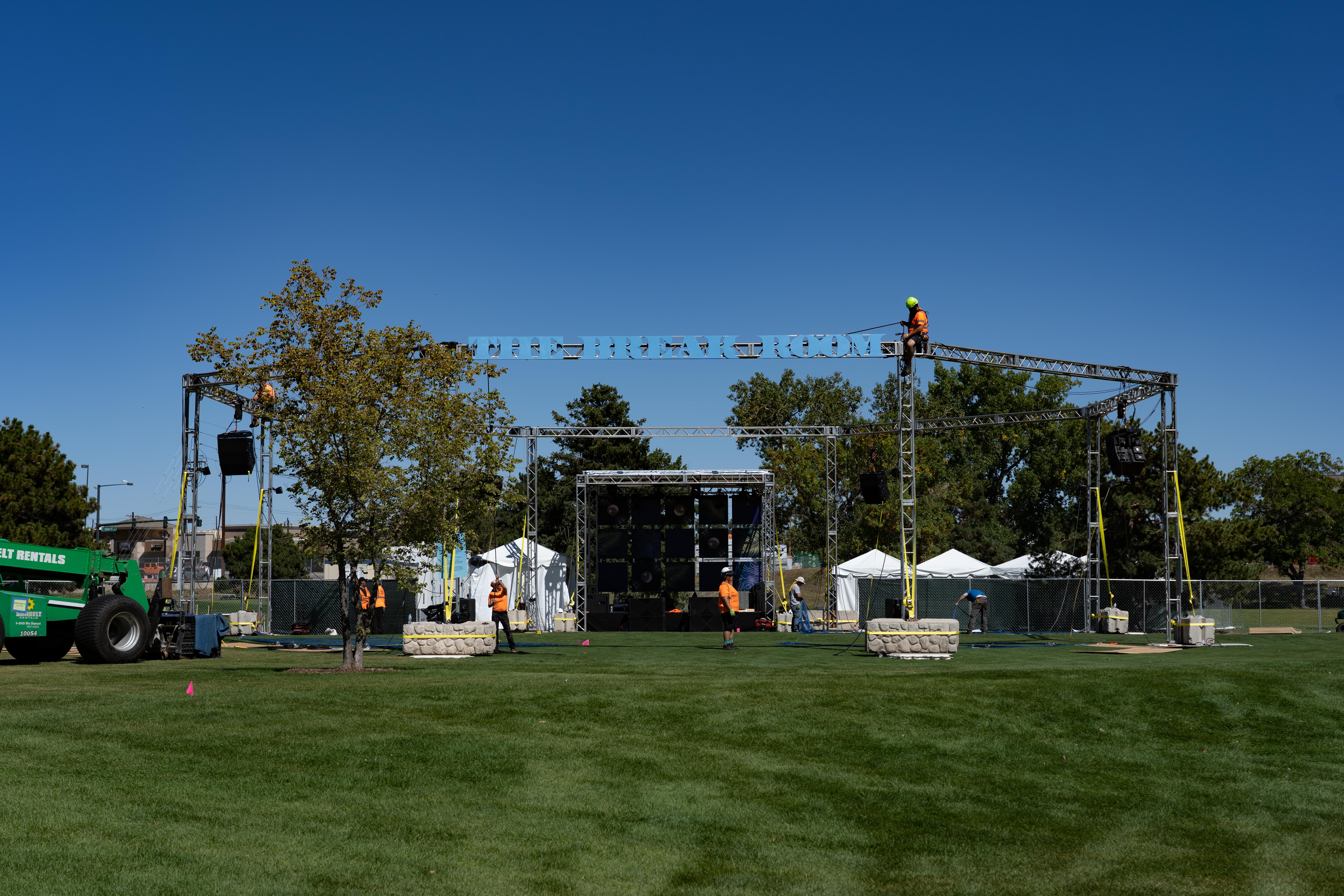 The location of the festival has some inherent perks — Overland Park is blanketed in vibrant green grass and populated with trees to provide shade. Throughout Overland Park, one may notice the differences in some grass patterns — subtle, but noticeable still. These circular patches are mounds that have been removed from the golf course. Grandoozy festival producer David Ehrlich stated that SuperFly worked in conjunction with Overland Park Golf Course to flatten the mounds — something he claims both parties wanted. Overland Park Golf Course isn’t the only community entity Grandoozy is working with, though. This year the festival teamed up with Love Hope Strength Foundation, Mo’ Betta Greens, Levitt Pavilion, Headcount (voter registration), Youth on Record (YOR) and many more. All have been encouraged to bring experiential setups, like YOR who is possibly bringing an on-site recording studio.