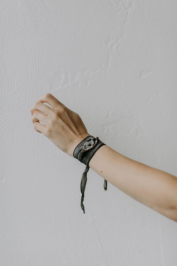 The technique that I use to plate the stones is called electroplating. Instead of putting the stone into a setting where you have to cut the stone and make it uniform, that technique allows the natural edges of the stone to show through. This is just how it’s formed and you work with the stone itself, instead of having to cut the stone to fit the setting.
