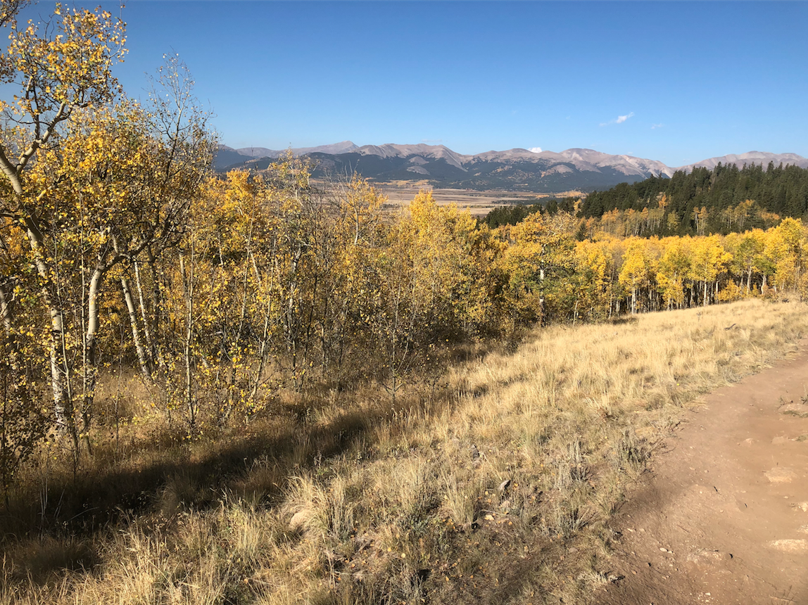 The Lowdown: We’re getting this road trip started by heading down Highway 285 towards Buena Vista just in time for a crisp-aired sunset hike. Stop at Kenosha pass for one of the most iconic fall backdrop hikes—or runs if you’re up for it. Start at the Kenosha Pass North trailhead and follow the trail for as far as you want before it starts to get dark. The whole out-and-back trail clocks in at 7 miles and has minimal elevation gain. With plenty of aspen groves and leafy views, this hike will get you in the right mindset for the rest of the weekend and start things off with the natural beauty you’re after this time of year.
