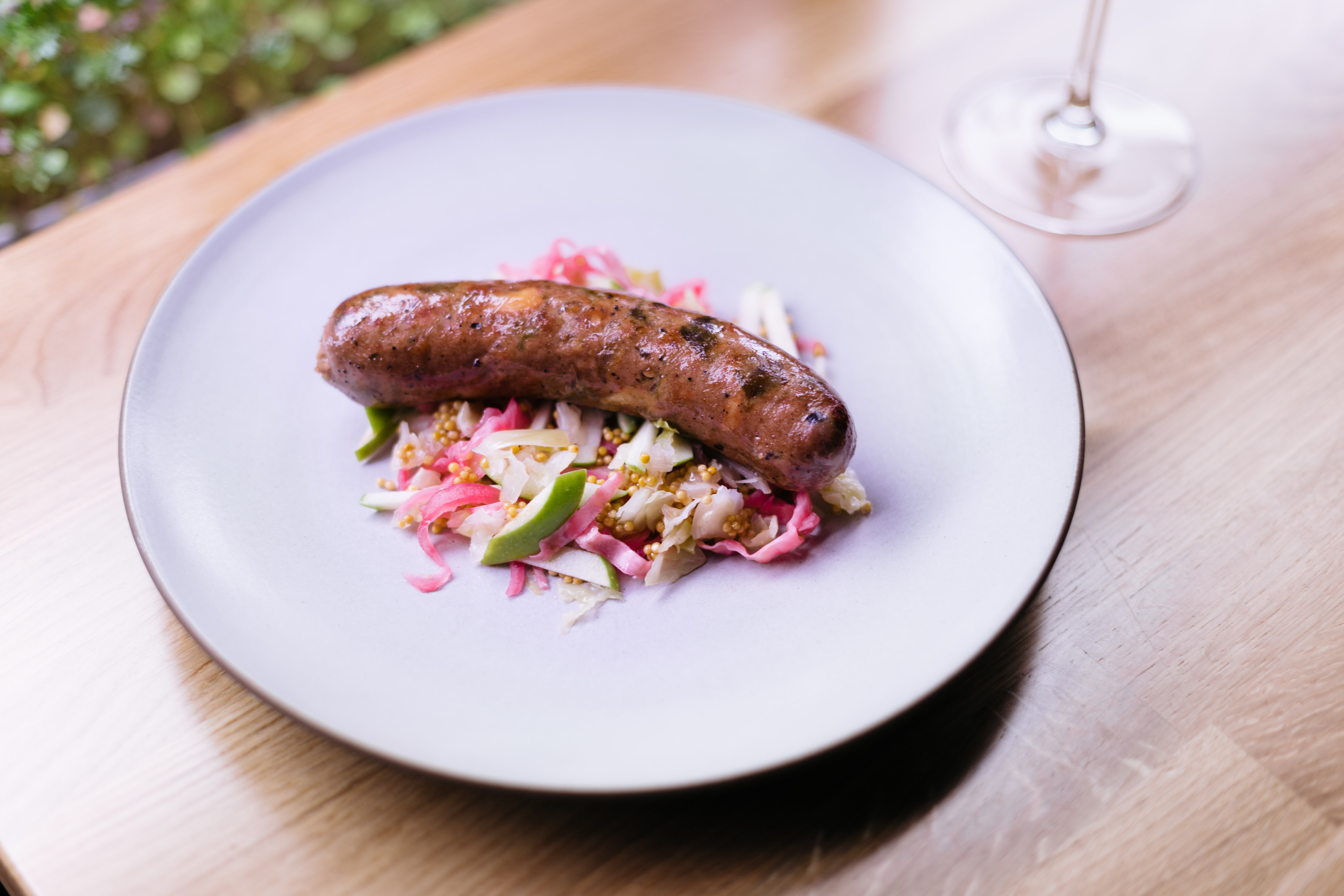 Offerings on the fall menu are split into three subsections — “The Garden,” “Share Plates” and “Entrees” — with most items available in gluten-free variations and all food priced under the $35 mark. The must-have from “the garden” is the beet tartare ($5). This sweet vegetarian variation of a steakhouse classic combines peppy horseradish and an umami zing of egg yolk vinaigrette with the residual sweetness of diced beets and fresh pear. Shareable highlights include the charcuterie board ($18) which showcases house-cured duck prosciutto and a funky-sour salumi brought in from in NYC. The chili cheddar bratwurst ($13) is cranked in-house and pays tribute to classic German flavor profiles — plated with a red cabbage and green apple slaw — a fresh grind is always something worth noting.