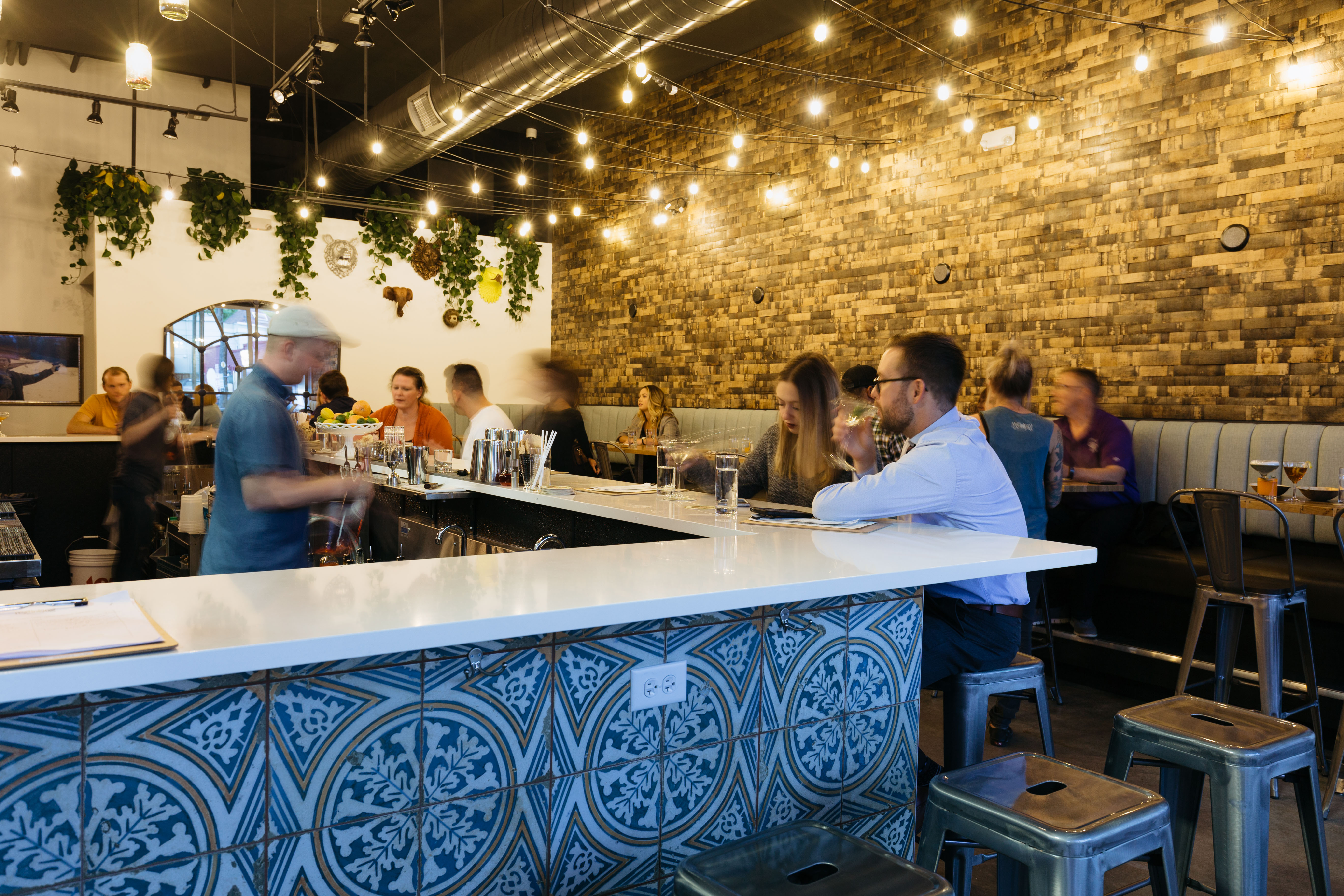 Mythology seems to have found that middle that they were searching for. It’s in walking distance for many LoHi dwellers, which makes is more of a regular spot that a destination. And the space is cozy — from the big wooden table where guests can play board games and mingle, to plenty of cushioned seats, brightly colored Spanish tiles and hanging twinkle lights, it doesn’t have the typical warehouse feel of a distillery. And if it weren’t for the huge window that allows drinkers to get a glimpse of the custom-made Vendome copper still, you may never know that this quaint cocktail lounge is making all of their own spirits.