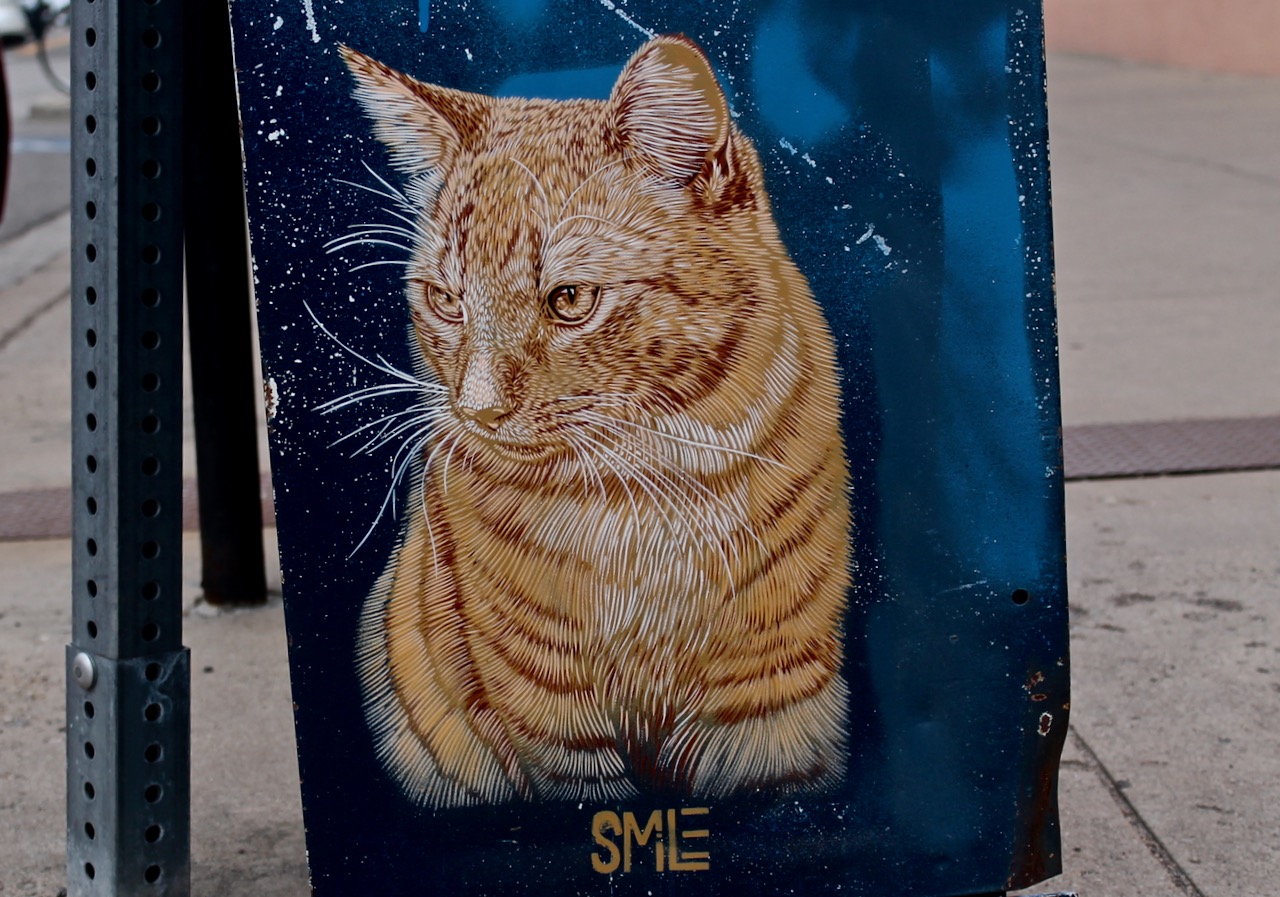 S: Definitely. I like painting at night here [in Boulder]. It’s very peaceful and quiet. That’s actually part of the reason that I like to paint cats. Almost every time I’m out painting, a cat will come up to me like, “hey what are you doing out here?”