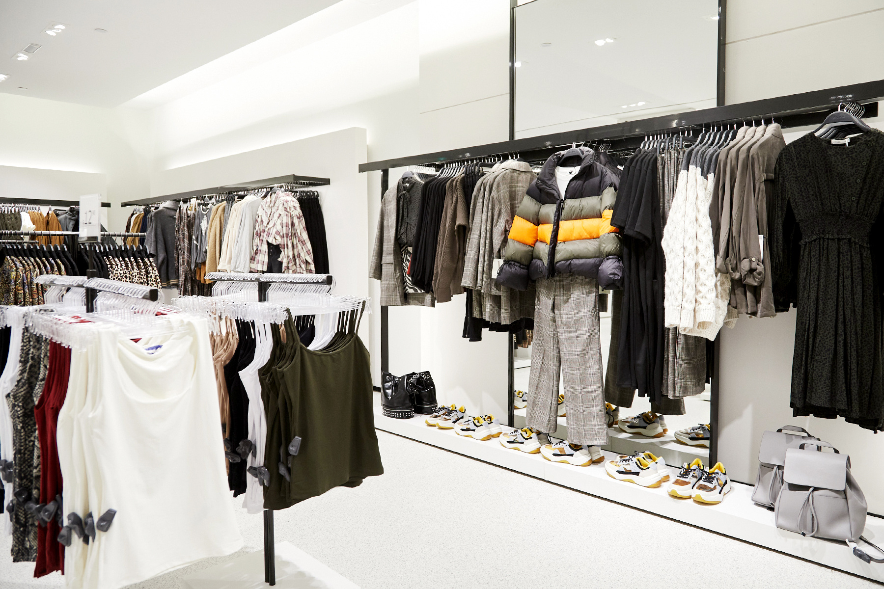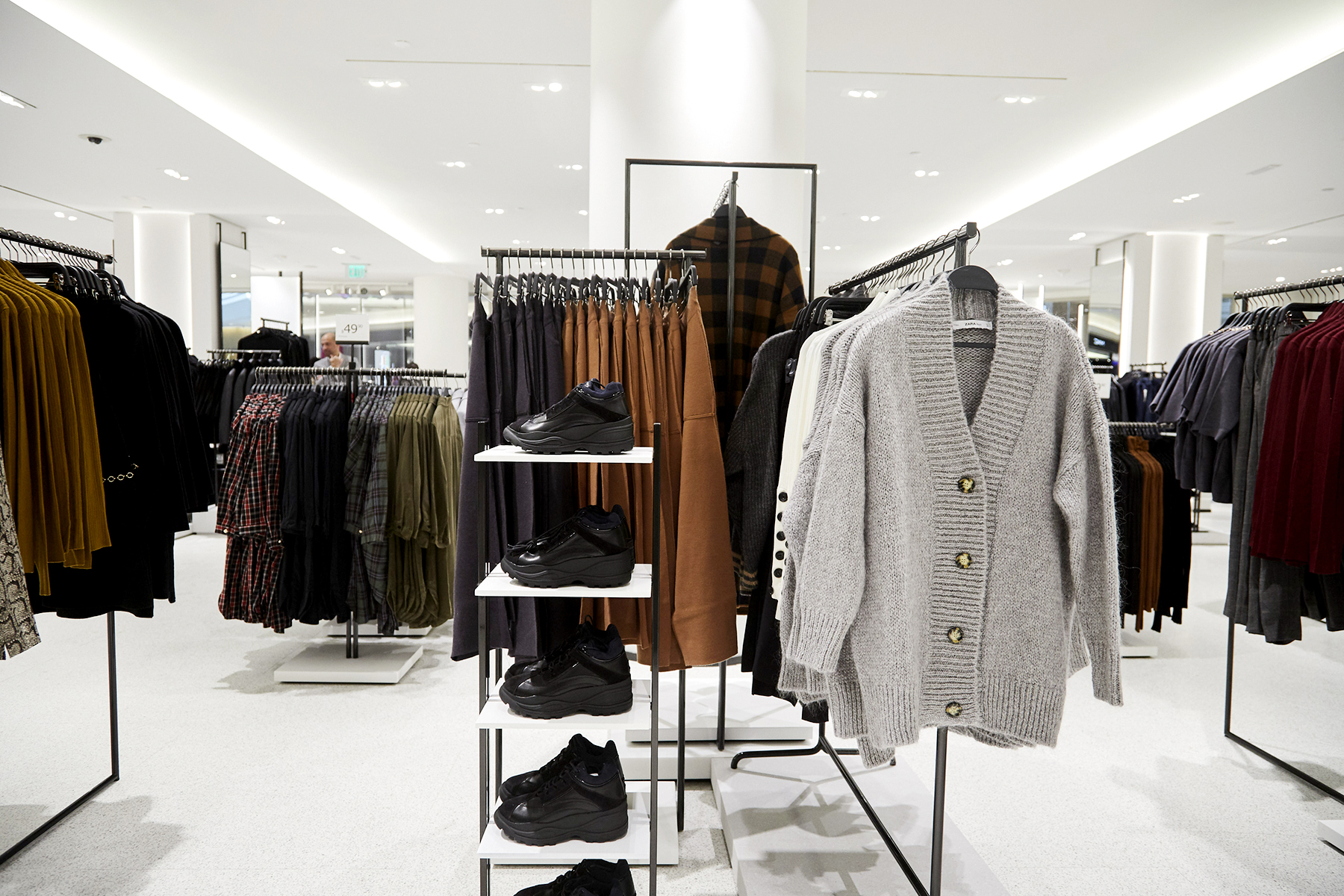 Introduced to the United States in New York City in 1989, Zara is set to open its 100th US store right here in Denver’s Cherry Creek Shopping Center tomorrow at 10 a.m. The store is set up using Zara’s latest global design concept, including two floors in a space totaling 32,000 square feet. The minimalist white flooring, walls and ceiling allow the true stars of the show — the beloved clothing — to shine. The selection includes the latest collections for women, men, kids and Zara Join Life, a line of products made using sustainable raw materials like organic cotton and recycled polyester and wool.