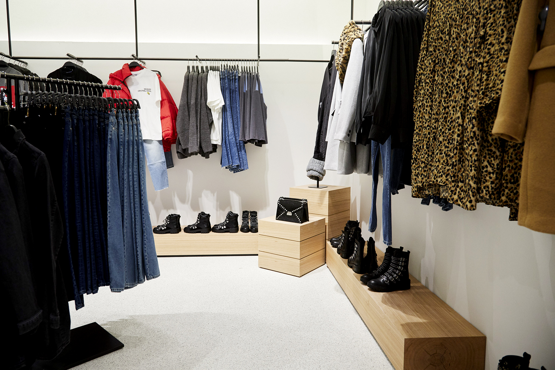 The new store houses a setup unique to Denver that includes specific clothing selected for local fashion enthusiasts. Knitwear and outerwear are a central part of every collection and are organized with suggested outfit pairings, making it easy for shoppers to put together outfits to brave the Colorado weather in the chicest way possible. Stand-out outerwear selected for the Denver market include 100 percent wool coats made from Italian sustainable wool taken from sheep cared for on smaller, privately owned farms.