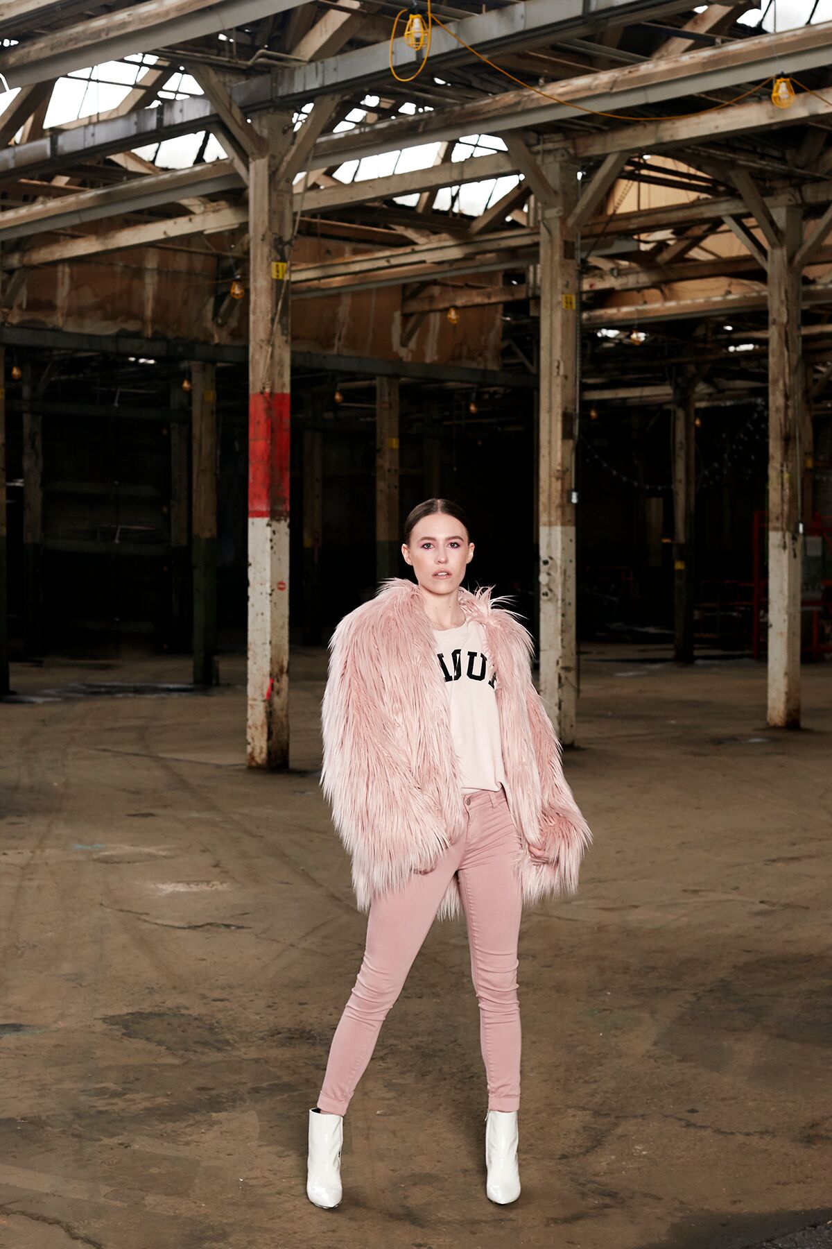The Lowdown: To keep with tradition, monochromatic looks free of patterns and prints always serve as flawless fashion styling approaches. Reilly Blake’s hot pink ensemble is a suspenseful way to make a color really pop. Heather Heath’s pale pink look served as a great way to incorporate popular pastels for spring. When keeping true cohesiveness in the entire looks, we incorporated colored eyeshadow approaches to match the colors of the outfits. Blake donned a hot pink fuchsia eye and nude lip while Heath’s pale pink eye was a slightly less vibrant version.