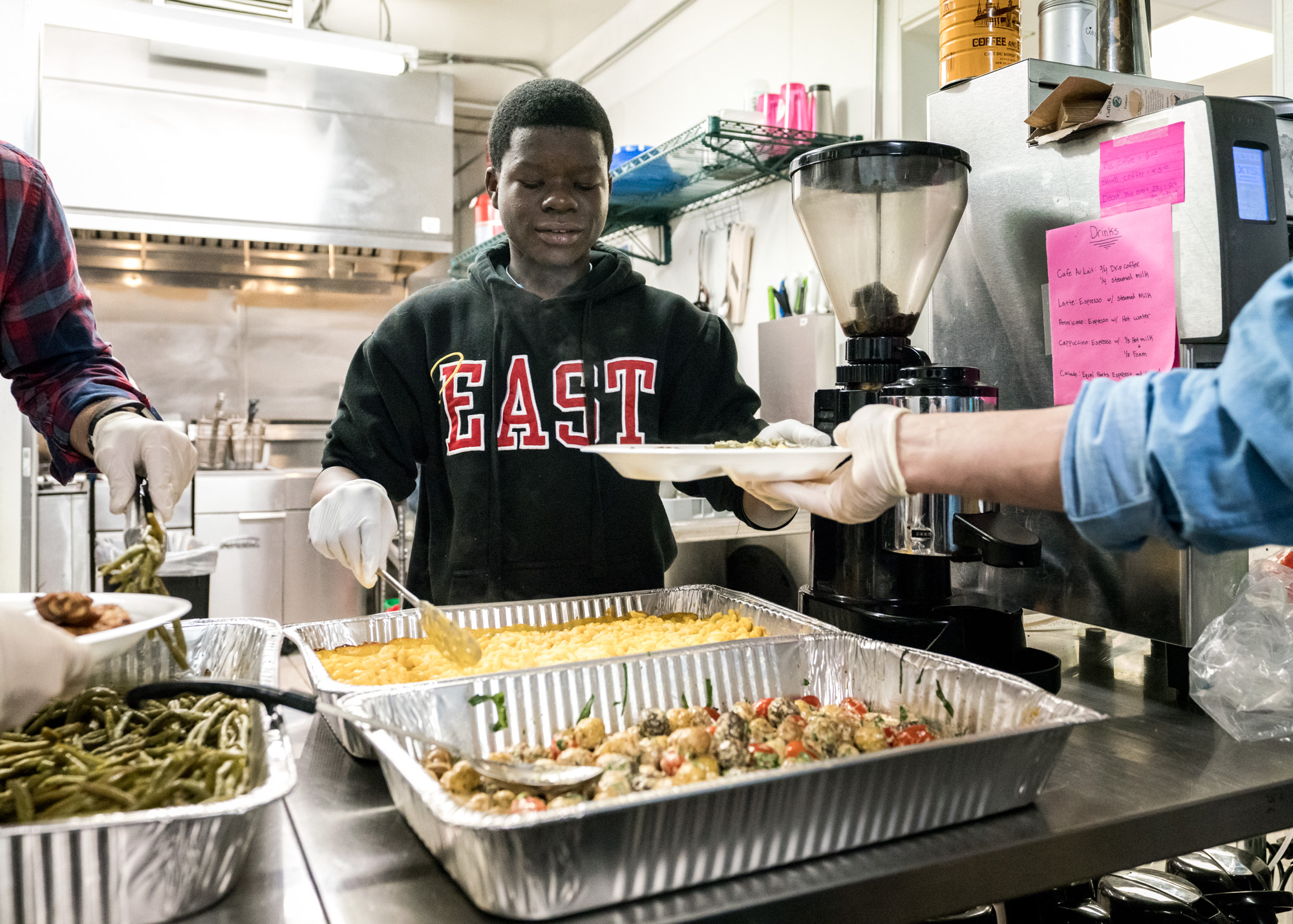 The Center funds youth cooking classes and choir lessons over the weekends where children can spend hands-on time with the in-house chef and other experienced staff members to learn things like knife skills, how to cook new recipes, constructive art projects and even vocal coaching. An open enrollment after-school learning-lab is available during the weekdays where young adults are encouraged to extend their learning outside the classroom. The kitchen prepares 60 charitable meals for the youth in the neighborhood during the week. Access to healthy food is a key element of the operation but the long-term aim here is to offer young adults a stepping stone to propel themselves into the real world with the skills they need to succeed. Currently, the kitchen is able to employ a handful of youth from the neighborhood to work the front and back-of-house operations for the kitchen. Many of the teen employees have earned their aprons — graduating from participants of the weekend cooking class to become some of Denver’s youngest culinary minds and on-staff chefs.