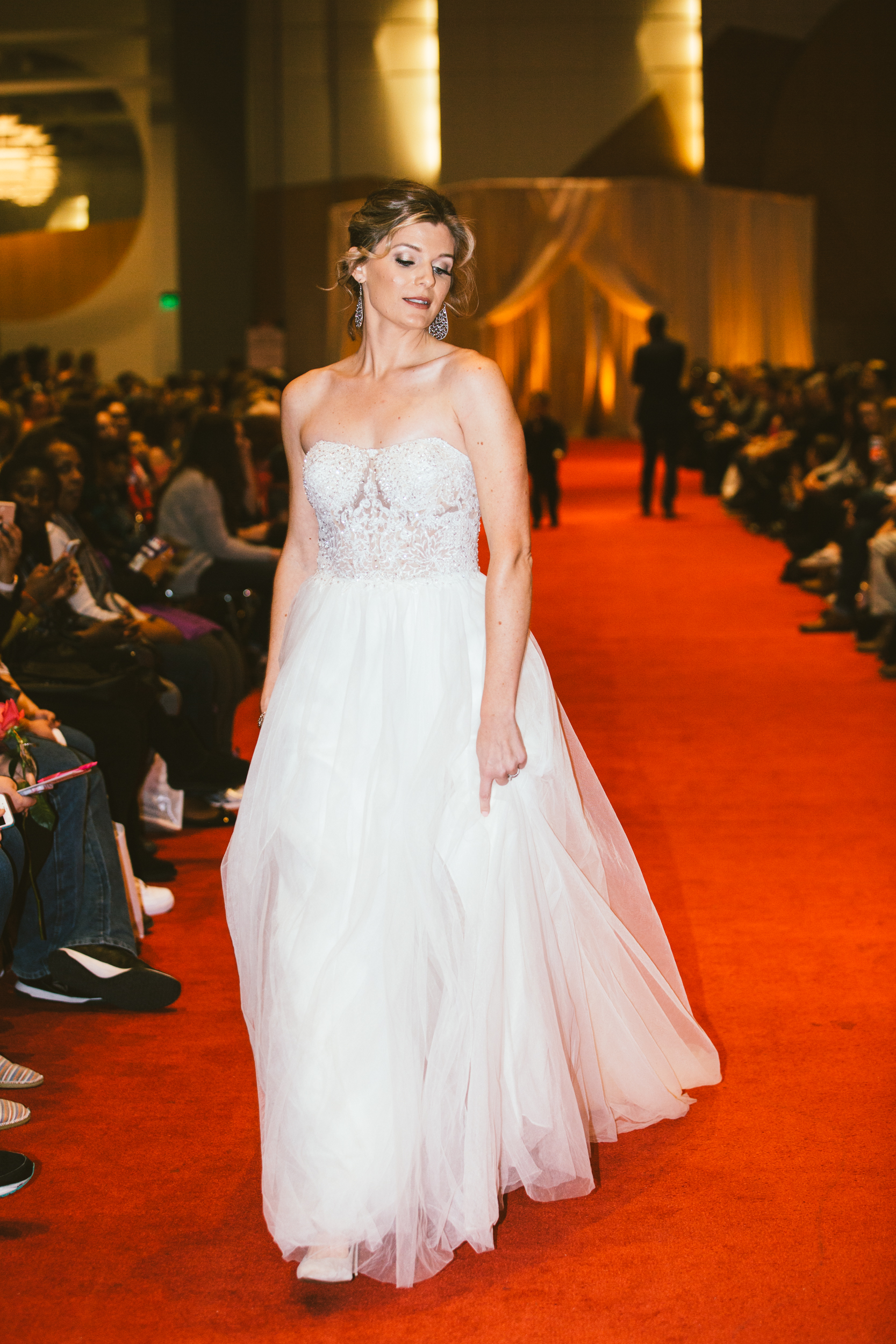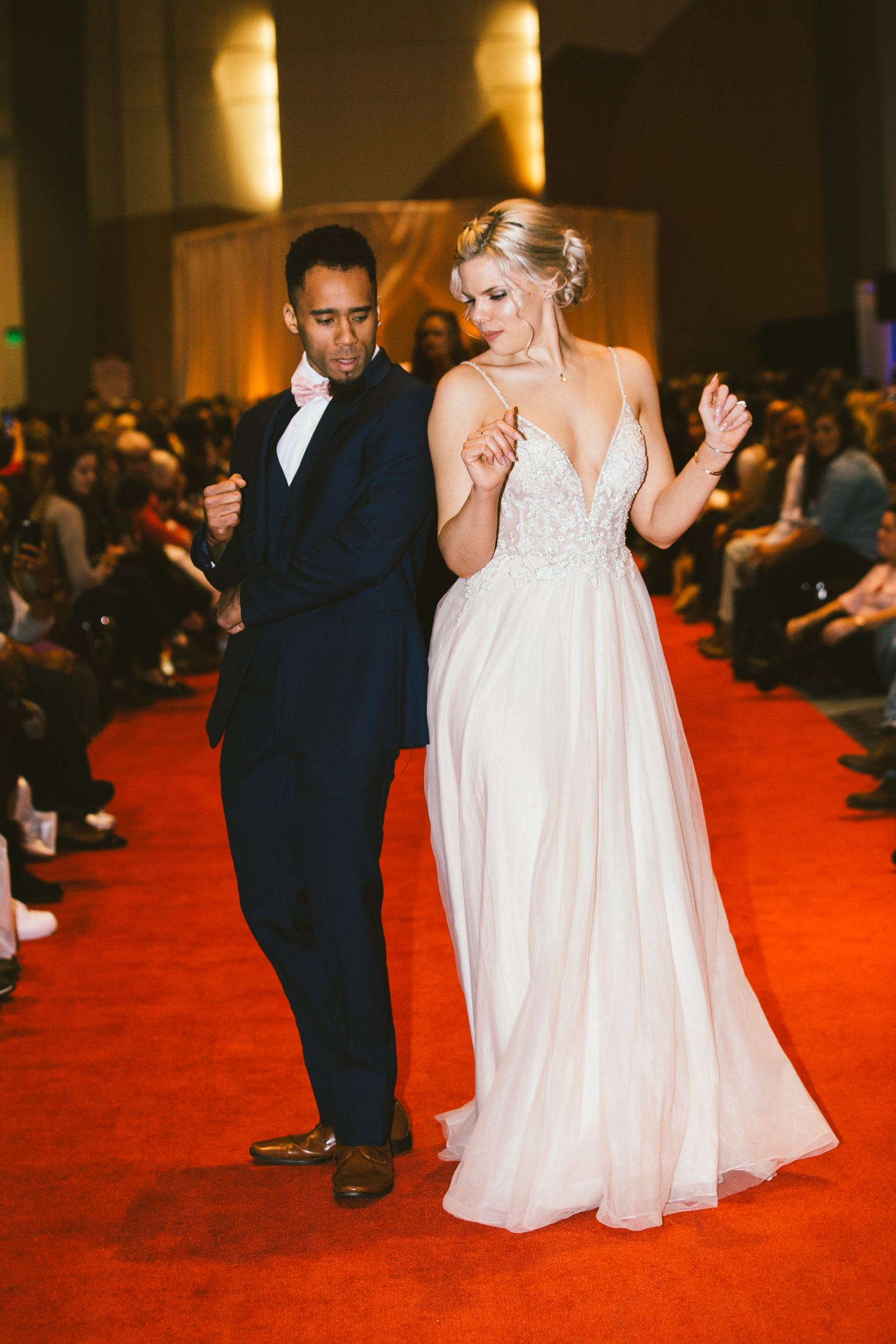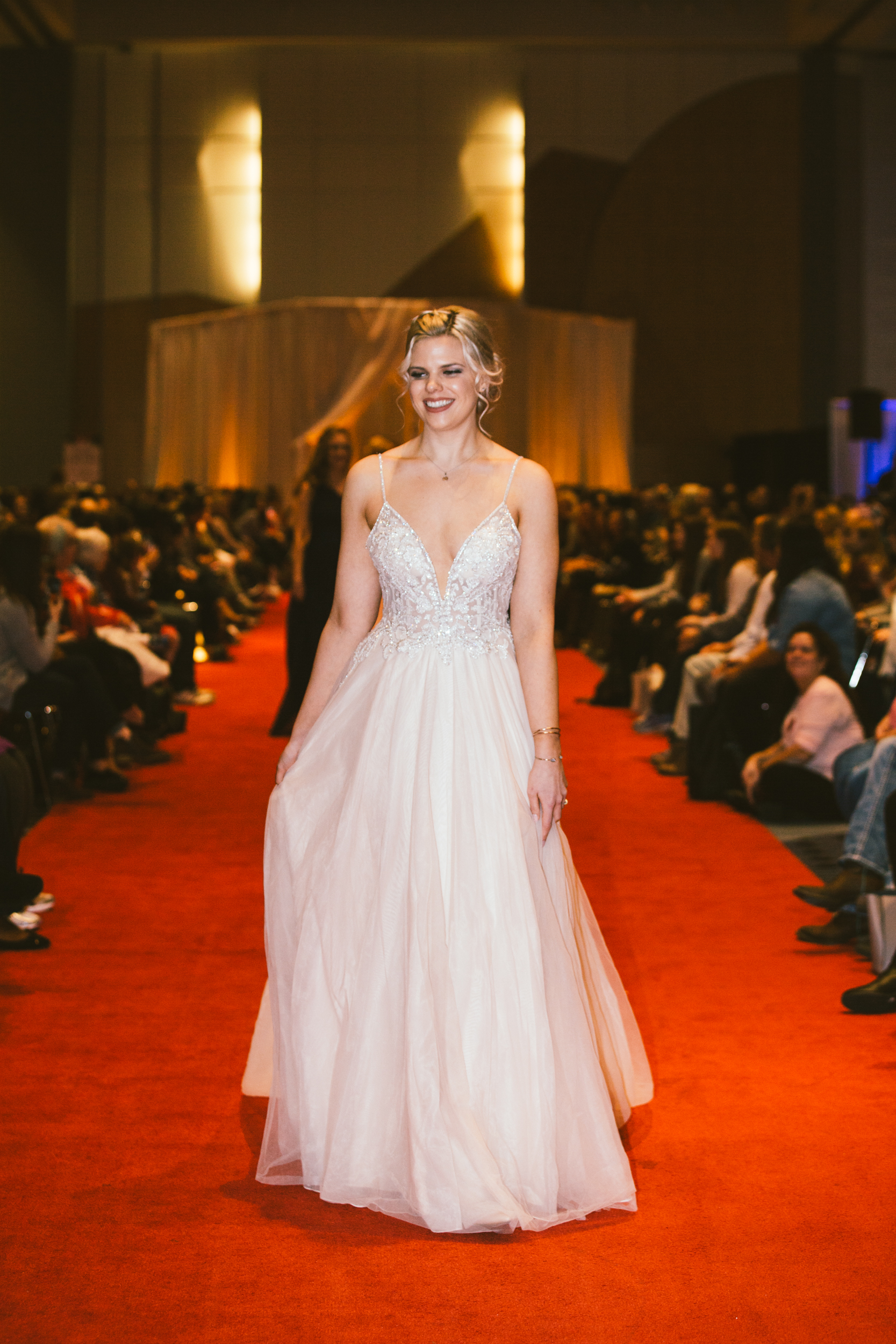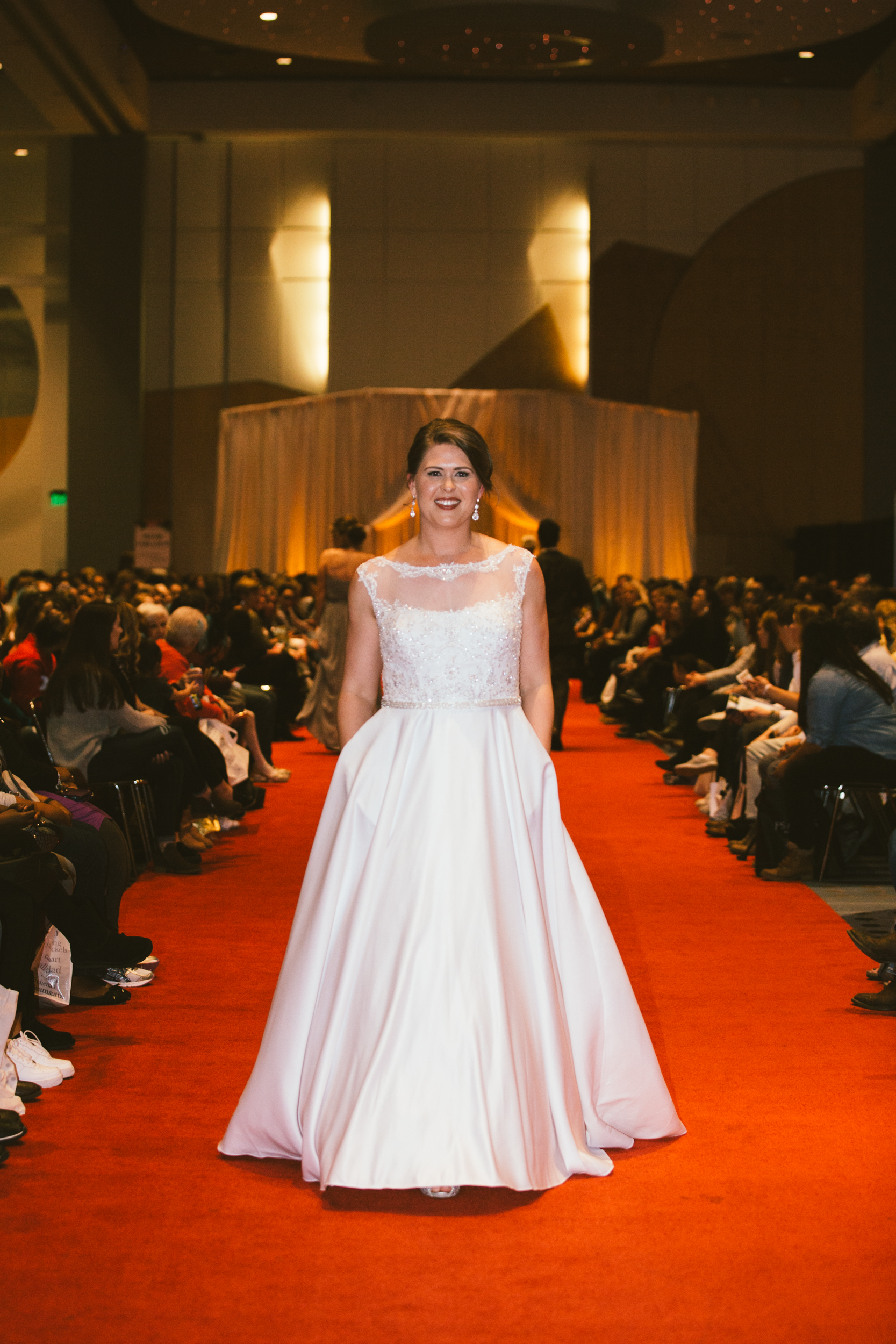 This fun, relaxed and upbeat environment didn’t stop at all the exhibitors and prize stations. The runway show was all about confidence and having a good time with the people you love. Every model who showcased their wedding day apparel down the runway was excited and confident. The models danced, cheered and pumped the audience up by interacting with them and with each other on the runway. To top it all off, in the middle of the show the brides-to-be stood up and danced for the chance to win prizes and have a fun time overall.