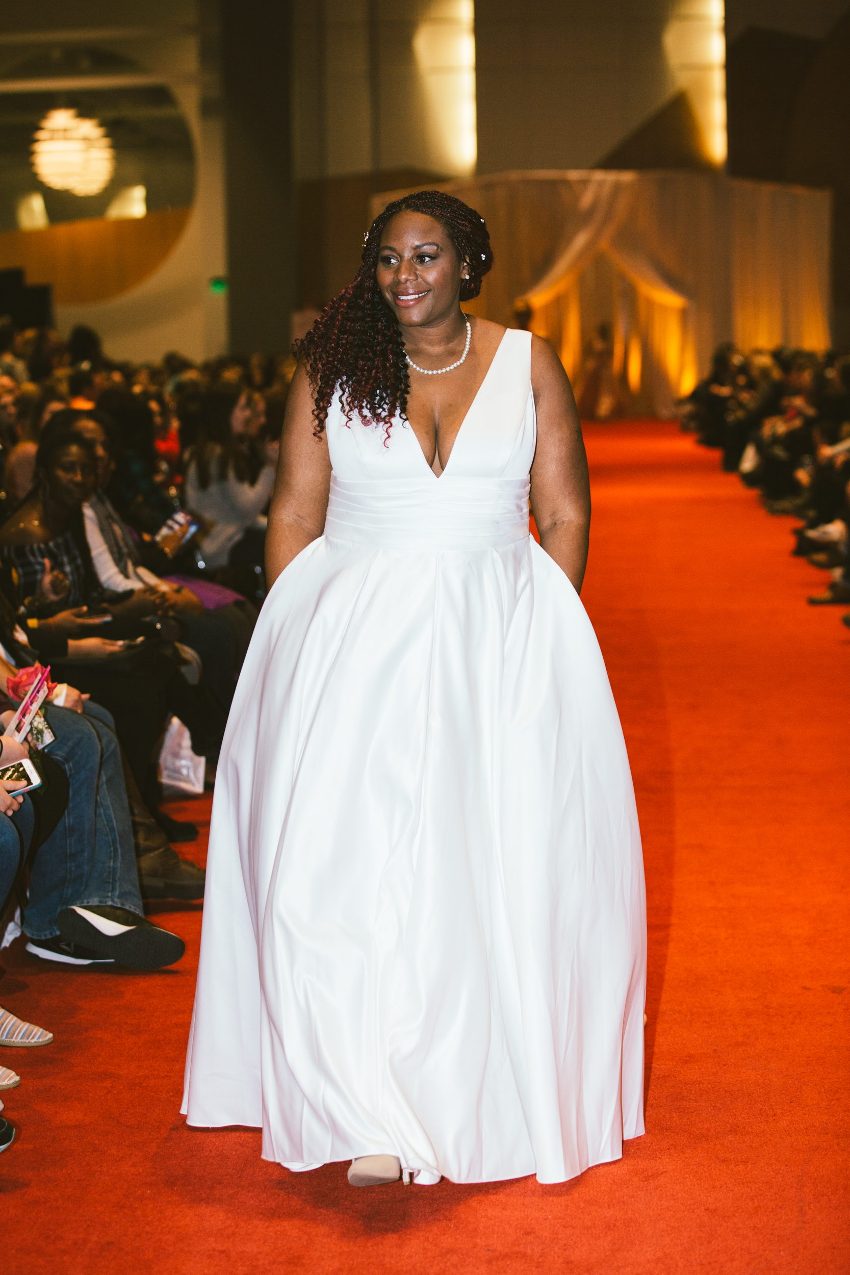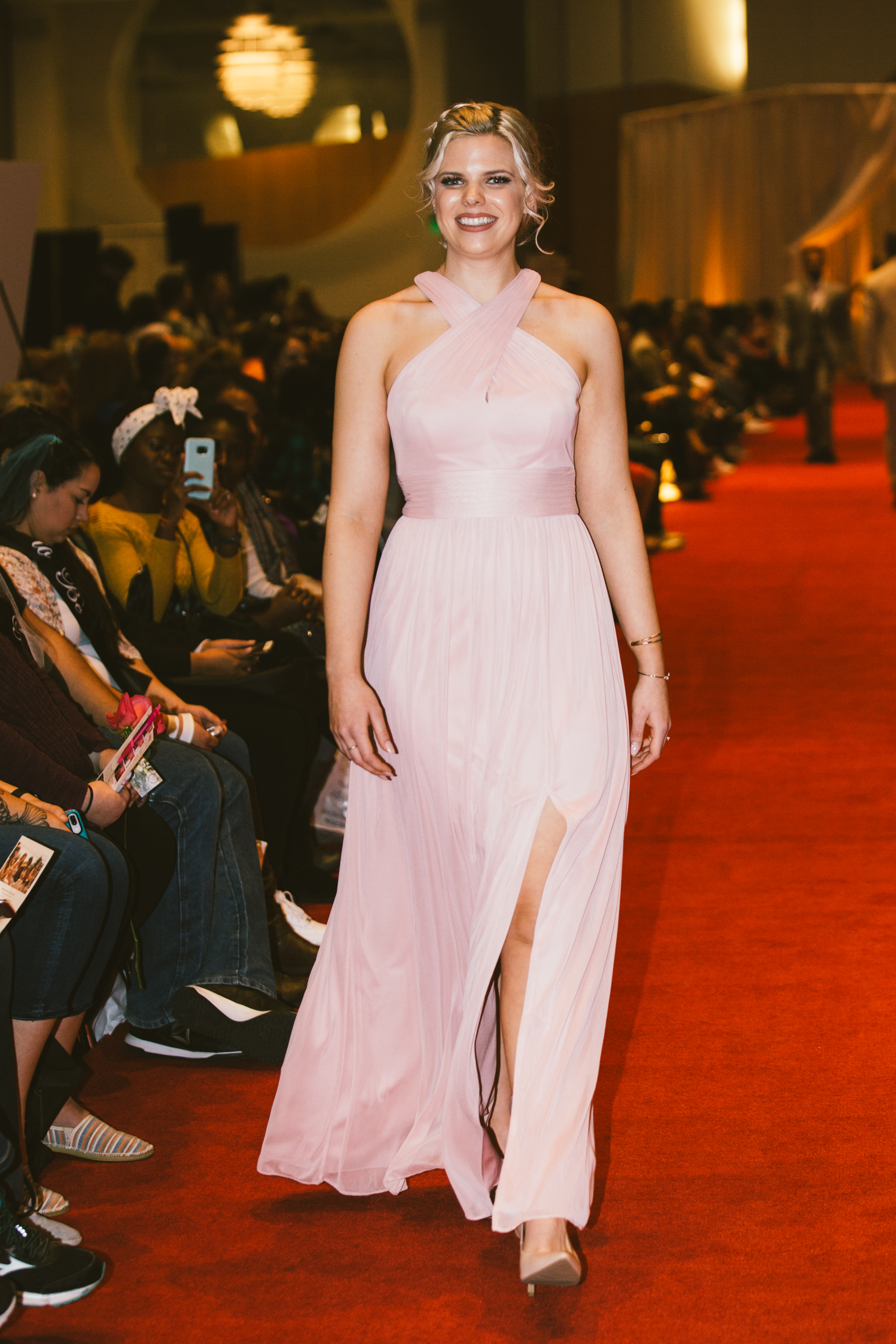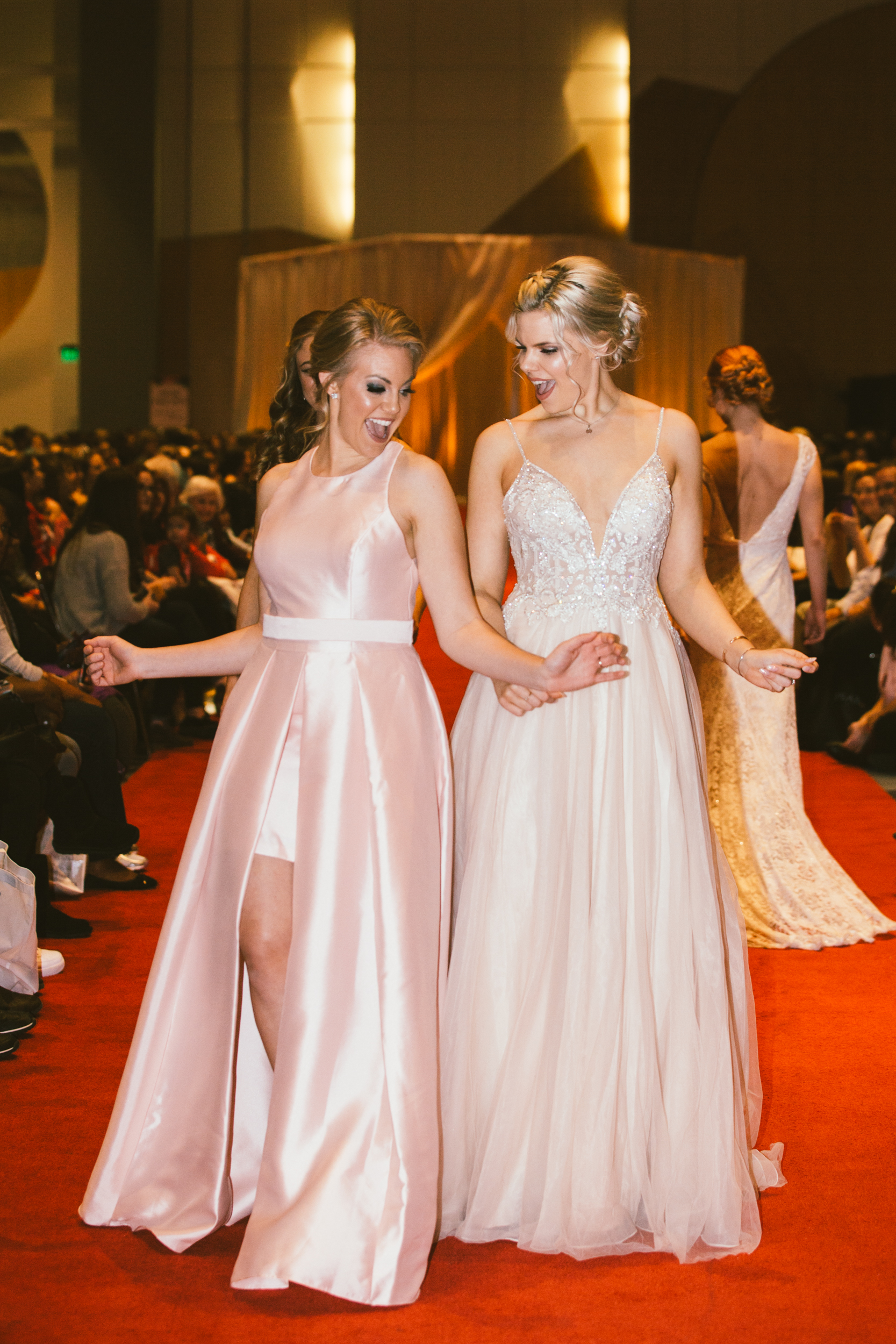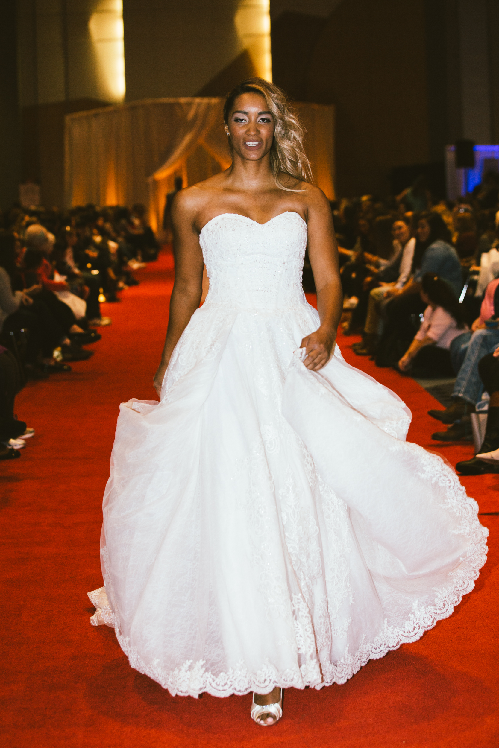 This fun, relaxed and upbeat environment didn’t stop at all the exhibitors and prize stations. The runway show was all about confidence and having a good time with the people you love. Every model who showcased their wedding day apparel down the runway was excited and confident. The models danced, cheered and pumped the audience up by interacting with them and with each other on the runway. To top it all off, in the middle of the show the brides-to-be stood up and danced for the chance to win prizes and have a fun time overall.
