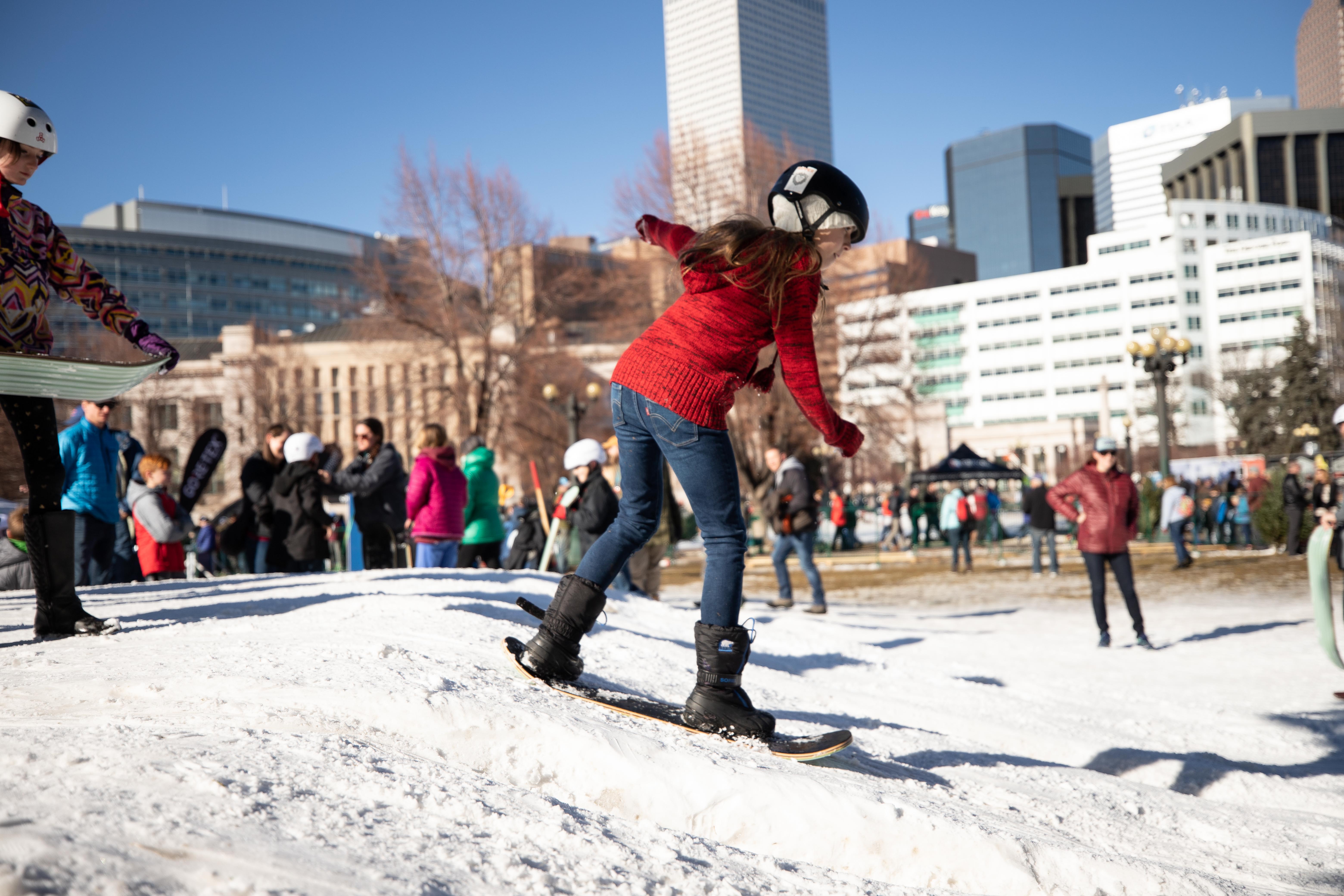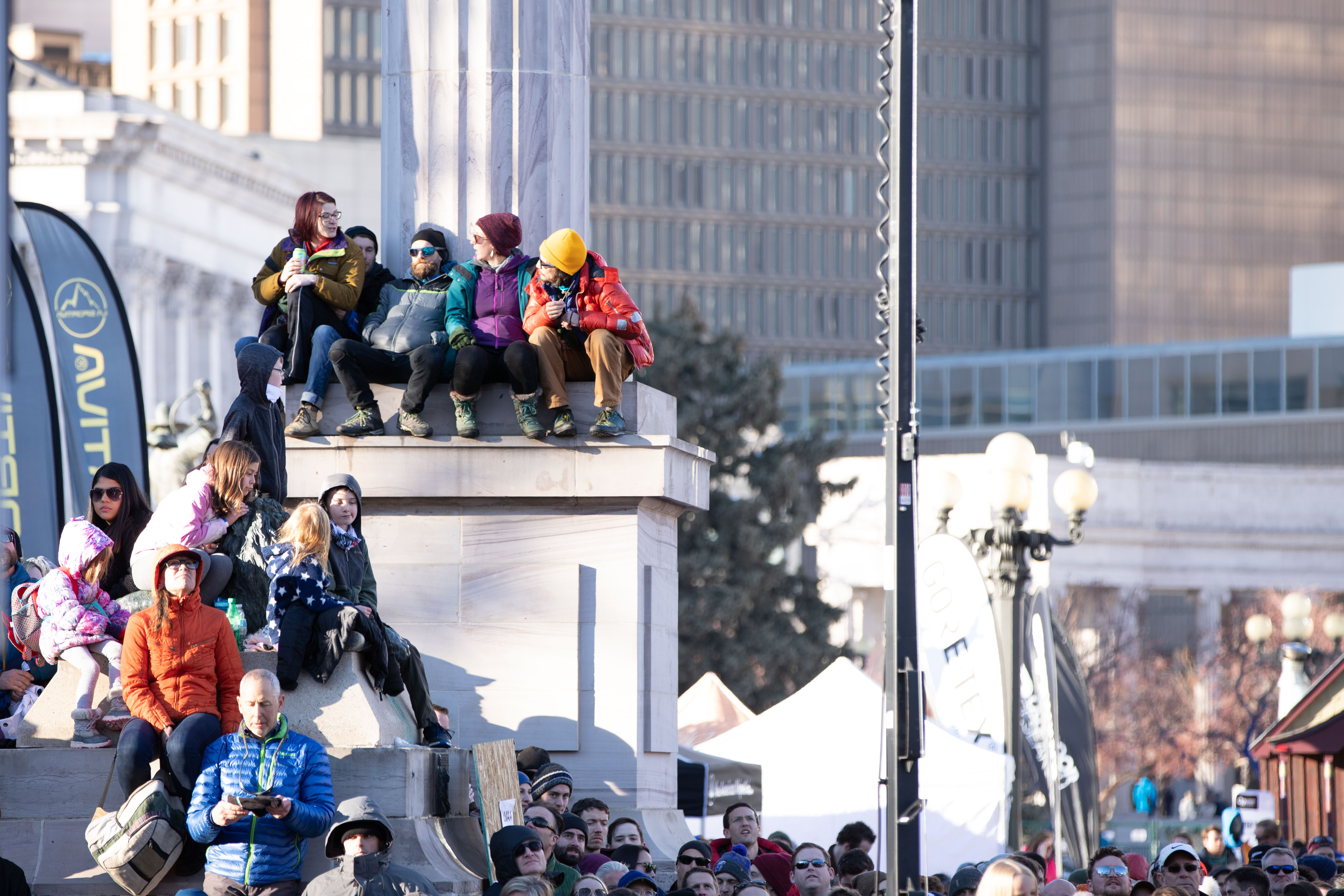 Most impressively in the context of downtown Denver, a wall of sheer ice and steel was created for the event. The wall, made on site with giant “ice cube trays” and kept frozen with a chilling system, allowed for two climbers at a time to race up 60 feet for the speed climbing competitions.