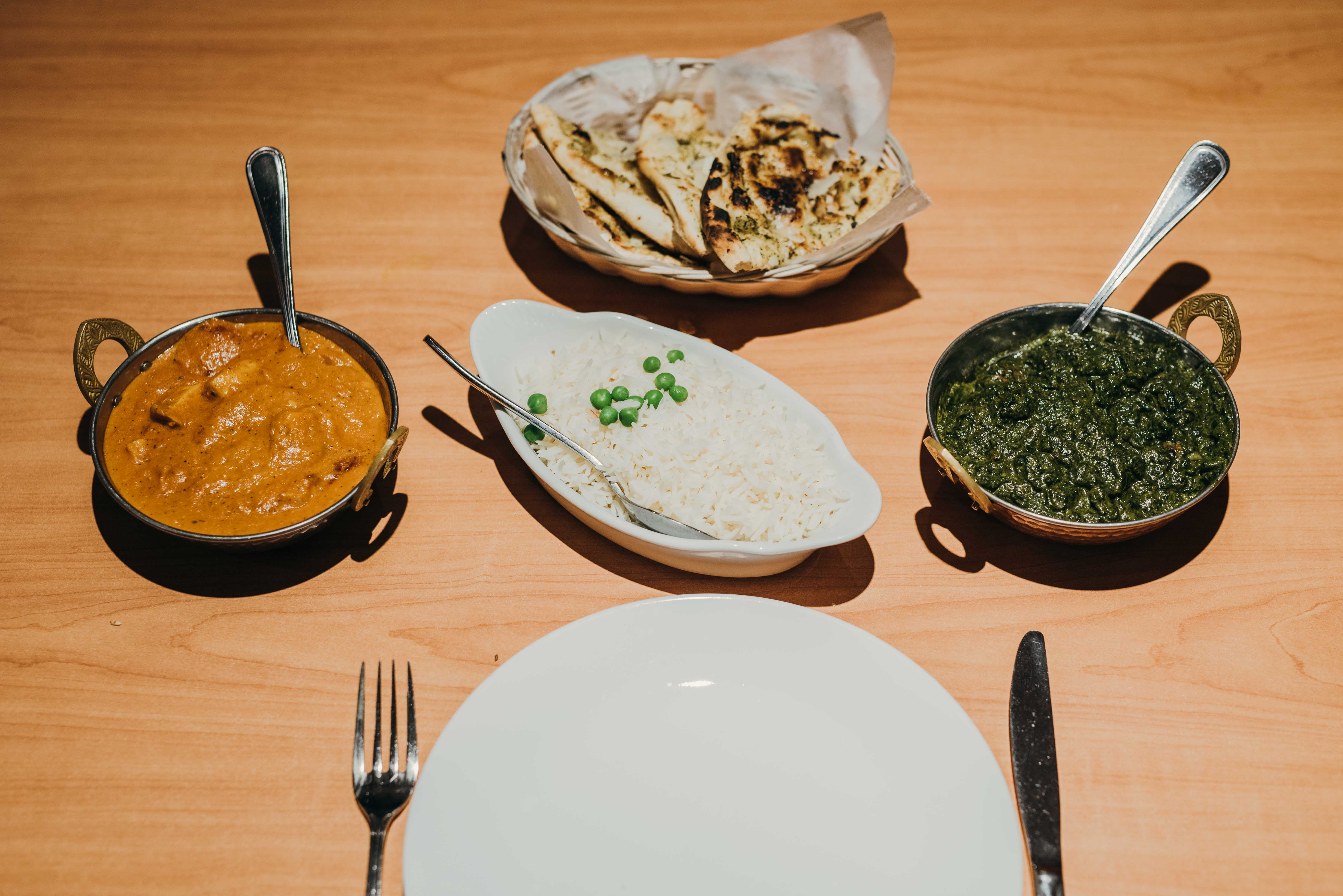 Entrees include curry, vindaloo, saag, kadai, korma and tikka masala and can be enjoyed with chicken, lamb, scallop and shrimp, fish and shrimp. The chicken tikka masala ($16) is a connoisseurs rendition. A well-stocked vegetarian section rounds out the list with dishes like dal darka ($12) — an aromatic garbanzo bean stew — and mixed veggie curry ($14). Spice level can be ordered to taste, but be warned, the medium is already not trifling.