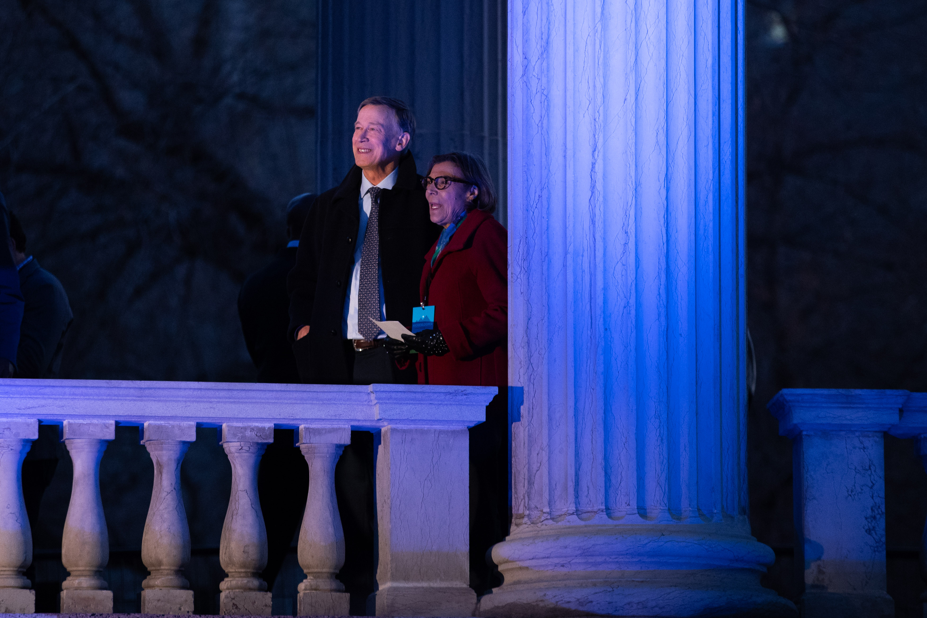 Music punctuated the night of celebrating Colorado’s twist on presidential bids. The First Lady of Denver, Mary Louise Lee, kicked off the procession of speeches from local politicians, both current and former, with a passionate, fiery rendition of, “America the Beautiful,” a song penned by Katharine Lee Bates in 1893 as she climbed Pike’s Peak. Bluesy twangs and soulful belting shared the spotlight with high-vaulted political abstraction, and Mayor Hancock took to the stage to deliver a testimonial on Hickenlooper’s reliability.