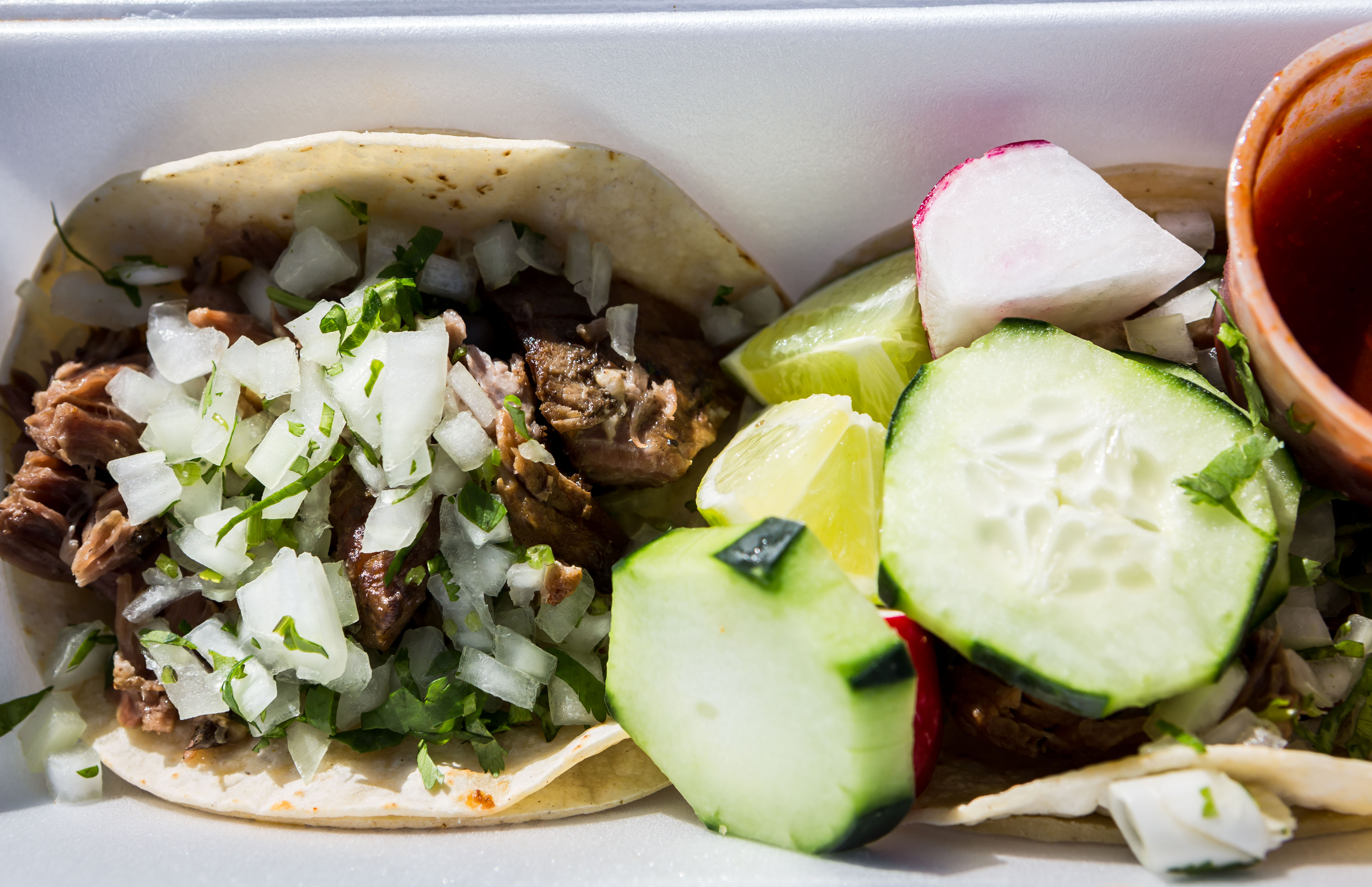 Owner Robert Lopez is from Mexico and his wife from El Salvador — created a dual cuisine specializing in Mexican street tacos and Salvadoran pupusas. The focus here is on doling out quick and delicious food. The inside is very tiny with just a few feet lying between the bar seating and the ordering window. During the lunch and dinner rush — if you’re driving by you can see the many people eating by the window and others standing in line.