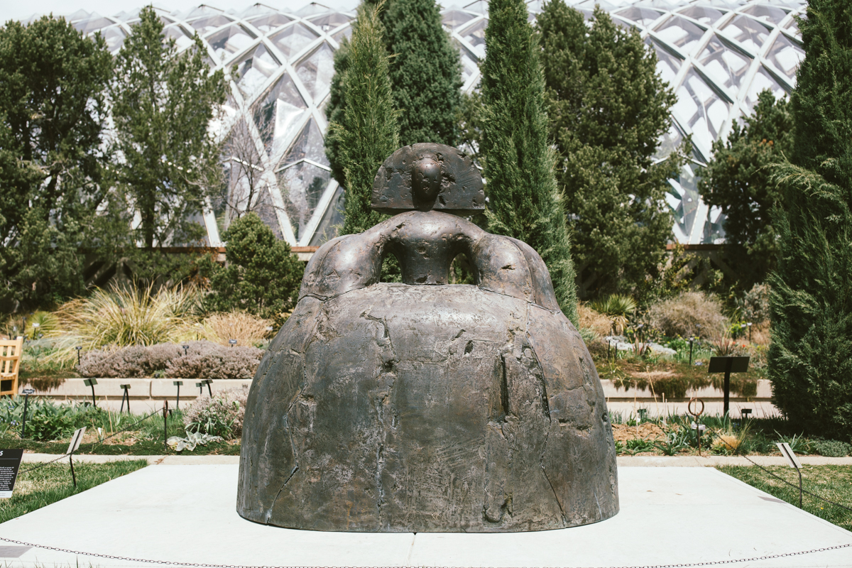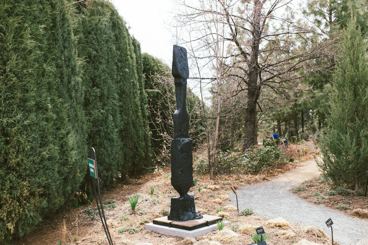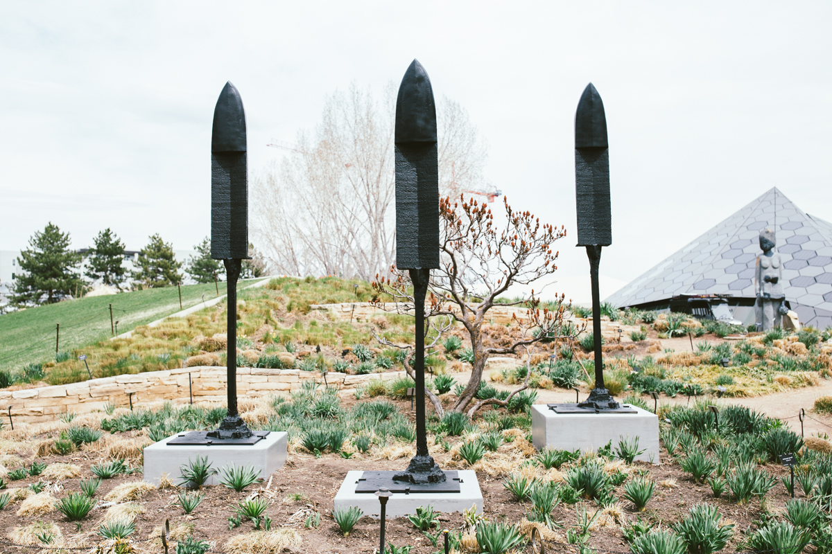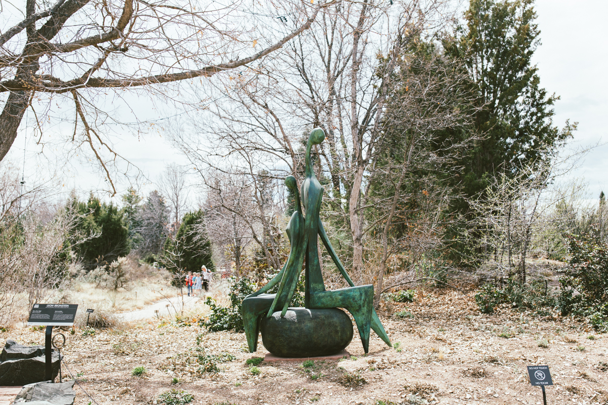 Moving through the exhibit and the gardens, you’ll find more abstract or modern interpretations of the human figure in pieces from Peter Ambrose, Squire Broel, Joseph Csáky, Beverly Pepper, Jacques Lipchitz and Manolo Valdés. Pepper, who also has sculptures in front of the Denver Art Museum, contributed a smaller statue that loosely resembles a silhouette. Using an interesting tactic that results in a roughened texture, Pepper’s sculpture takes on the appearance of a rock, carved out by eons of rushing water. In the large monolithic pieces by Broel called The Guardians, the difference in texture between the top arrowhead-like tips and the roughened middle suggests the outline of a clothed body. The clever part about this collection is distilled in these abstract pieces because they need the context of their peers to feel relatable. And ultimately, each of the abstract ones speaks to our collective need to find familiarity in the unknown.