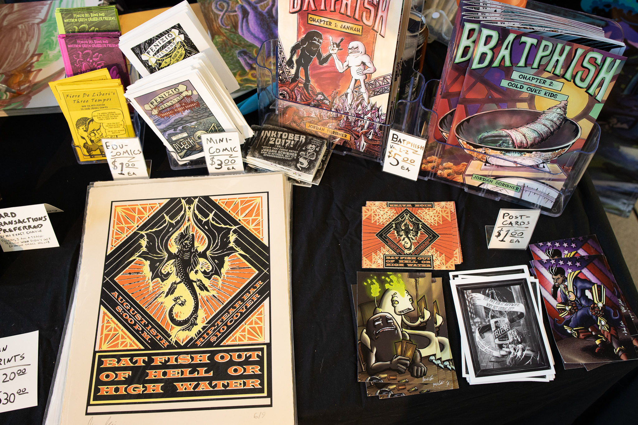 The expo was co-created by Charlie LaGreca, Brian Essig-Peppard, Jim Norris (who also owns Mutiny Information Cafe) and more amazing individuals. Their goal was to extract the best parts of comic conventions – the art– and condense it into one expo focusing more on independent artists. Comic book art is at the heart of the event but you’ll also find street art, tattooing and more.