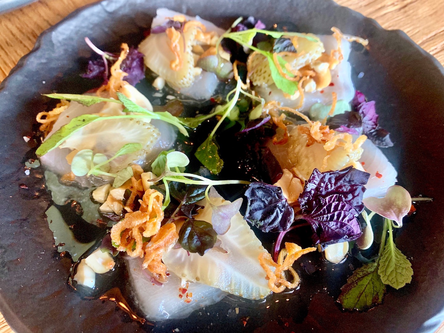 A couple more standout dishes? Try the yellowtail crudo ($13) — delicate, buttery hamachi with pickled green strawberries, cashews confit in avocado oil, white shoyu and ponzu. Or just ask for the dessert that tastes like an Almond Joy.