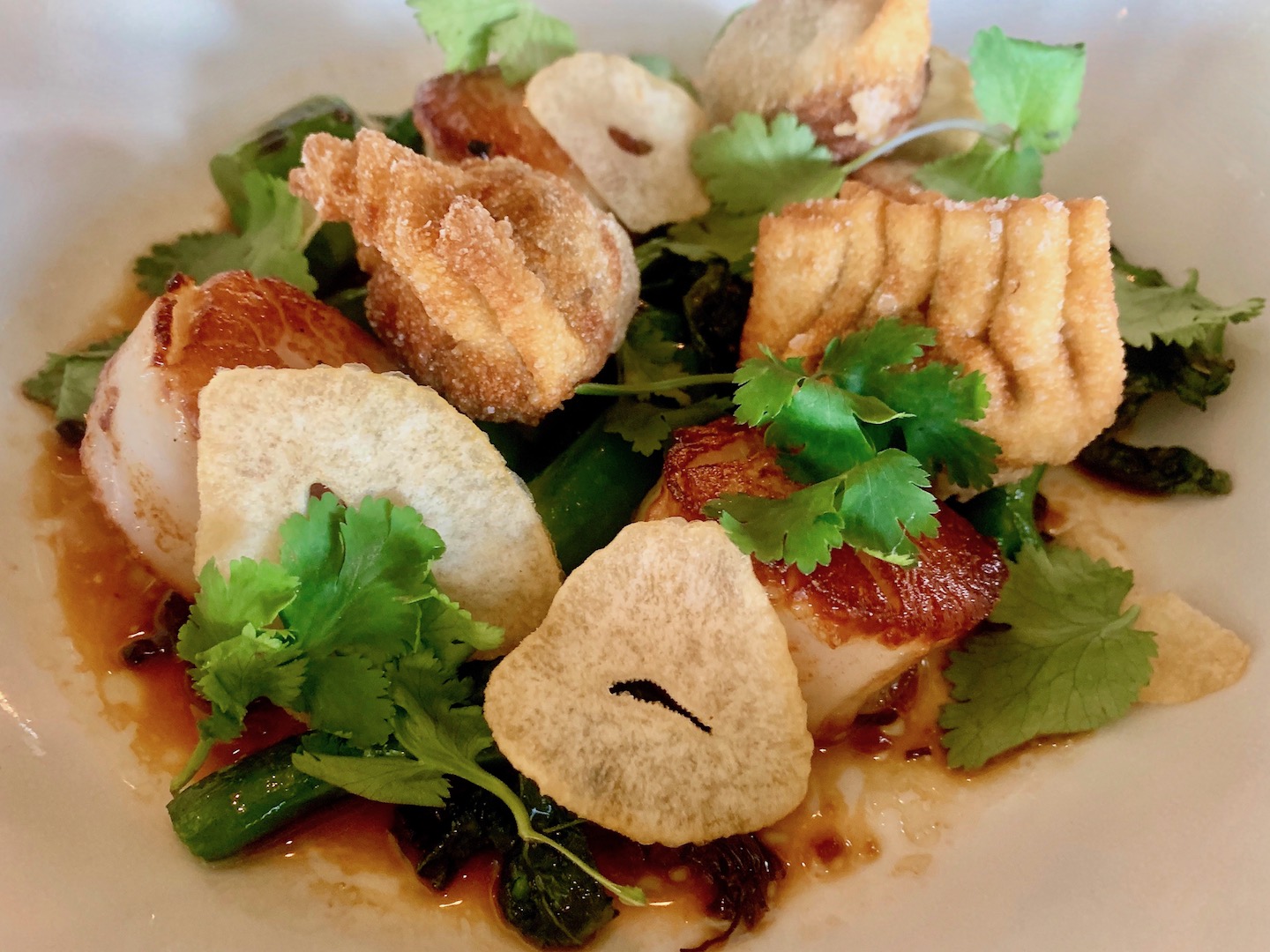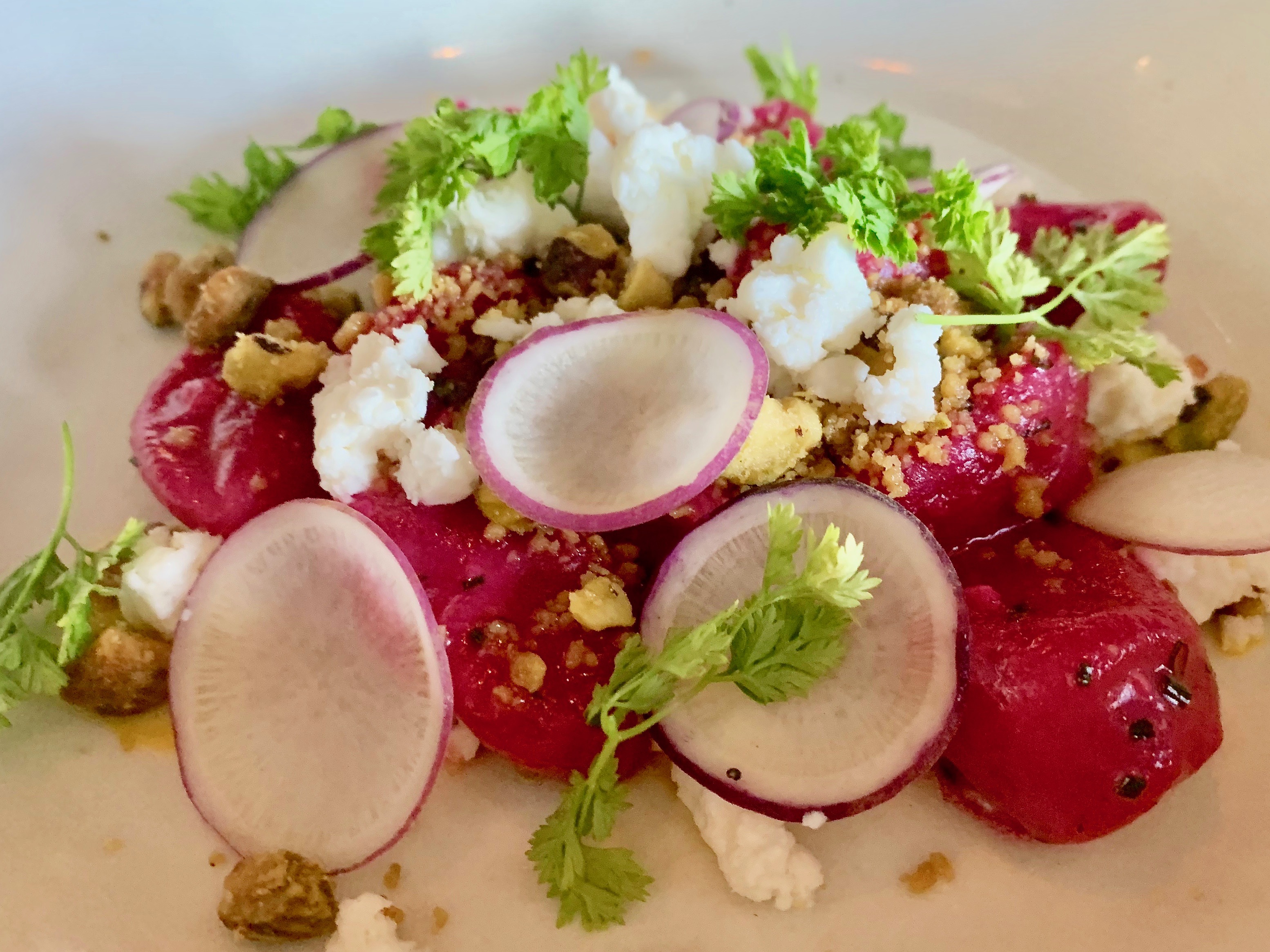 Striking up a conversation about rare cheese will illuminate passion in these chefs’ faces. Even recognizable items such as charcuterie, scallops, lamb and gnocchi offer more than meets the eye. First, the charcuterie is consciously created over a multi-day process. Oxtail dumplings which accompany the Maine diver scallops ($34), are made from scratch, along with the complex xo sauce. The grilled Colorado rack of lamb ($39) is perfection. Beet gnocchi with smoked golden beet puree, pistachio and local feta? ($12) — okay, vegetarians, we get it.