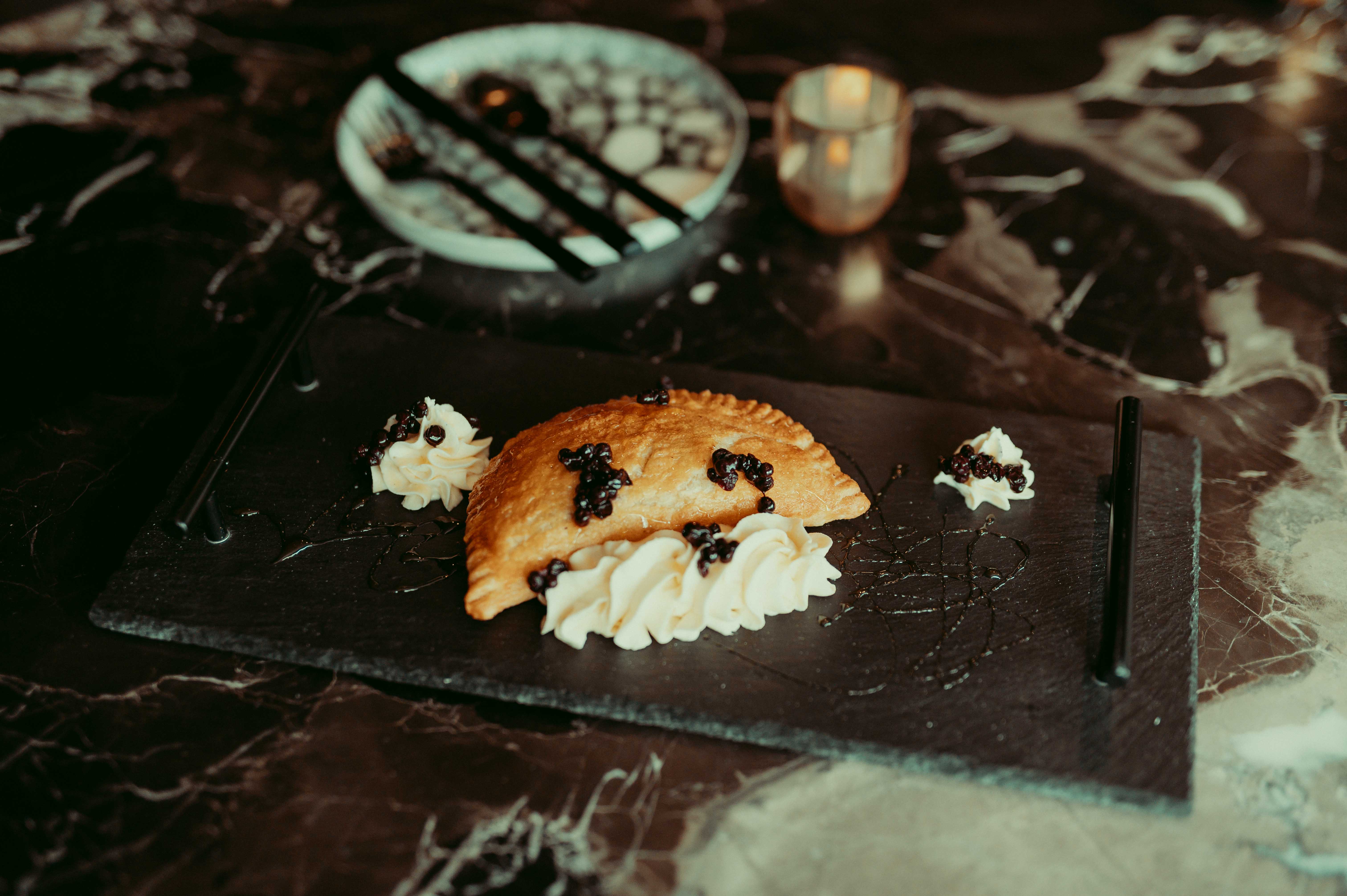 The pun-heavy menu was made in collaboration with bar lead Travis Gale. Bora and Gale designed the beverages to be luxurious, dividing the list into six categories — light and bright, forward and refreshing, rich and comforting, forward with a bite, sweet and savory and non-alcoholic. While nothing on the menu is quite so ornate as the Fowl Play — a lot of them actually look quite simple on paper — the preparation and accouterments make each drink quite the splendid spectacle. Mint frozen with liquid nitrogen, cherry bark smoke and elaborate chocolate decorations are just a few things you can expect to find lining the superb glassware. The Ryenapple Express ($22) is rye, peach liqueur, pineapple and lemon topped with a red wine float. Served with a mountain of ice and a metal straw, the drink is refreshing while still being rich and spirit-heavy. The Espress Yo-self ($16) is house-infused vanilla vodka, cold brew and hazelnut cream and drinks like a souped-up chocolate martini. All the cocktails fetch a high price tag, but Bora’s pours are not delicate.