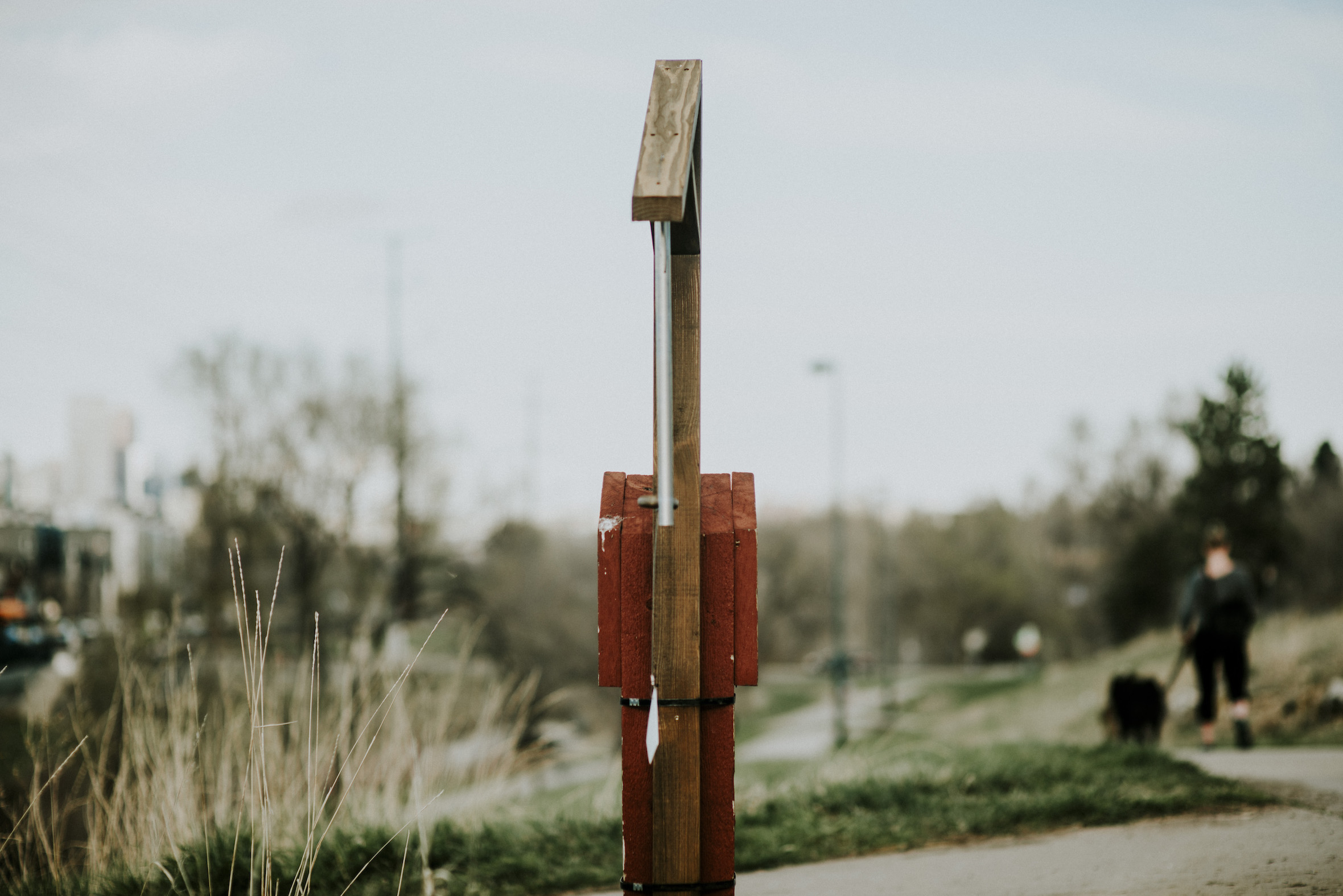 Walking between Federal and Sheridan on the pedestrian path in Dry Gulch Park you will find a series of single-note wind chimes. Made of wood, steel cable, aluminum tubing and plastic found in the park, these chimes are designed by a local artist and musician, Michael John McKee. Each chime is tuned to an unconventional harmony, leaving passers-by slightly uneasy when they reverberate with minor or sharp (rather than major) chords. Titled Voices, this public art project aims to bring attention to the park and the people who have made it their home in the last few years — a haven for individuals experiencing homelessness, who want to avoid the sweeps of Downtown.
