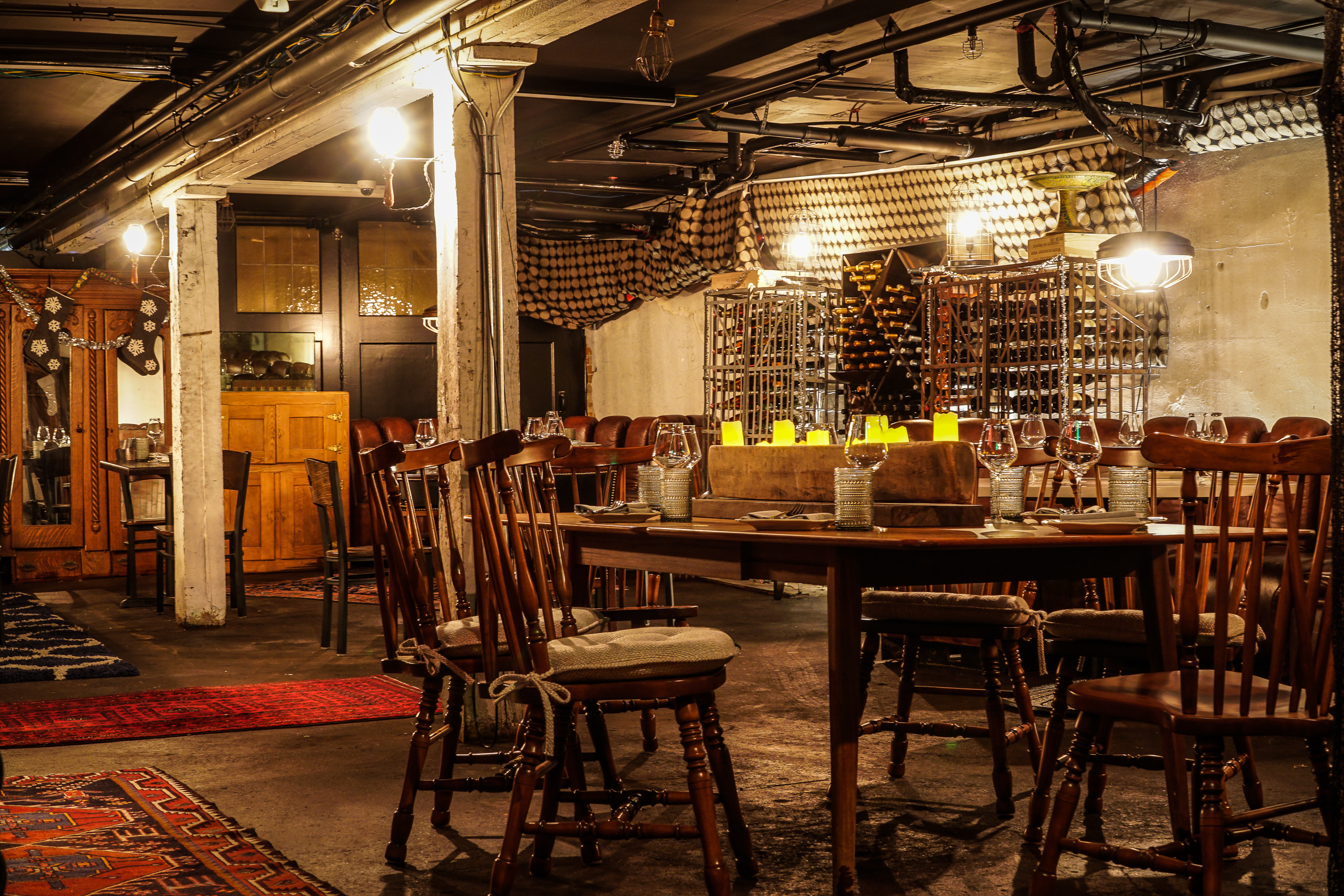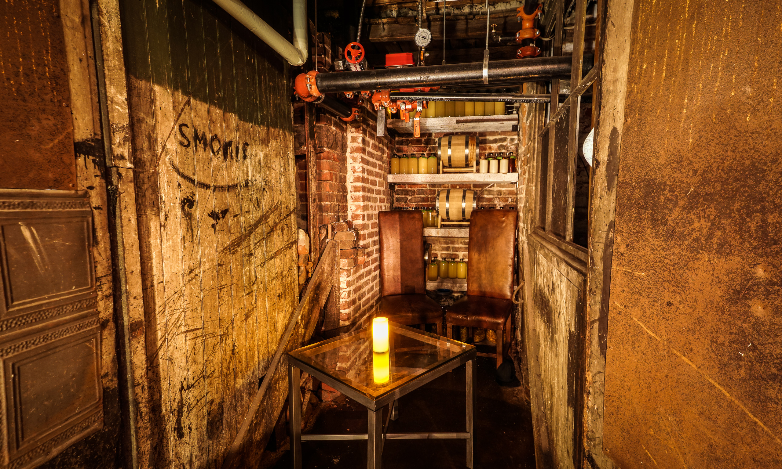 To gain access to Sotto Voce one must descend a candlewax caked stairwell complete with psychedelic wallpaper covered in images of hands holding cloudy mirrors. The entryway is appropriately transporting — the downstairs has all the eerie sensuality of a pirate ship’s hull and an oddly sophisticated hodgepodge of gangster-era leather booths, exposed brick and rustic furniture. The fact the building used to serve as a cigar factory is not immediately apparent or advertised, but the repurposed freight elevator gives a subtle nod to the space’s intriguing history. “Curator of Vibe” Howard Doskey has done a good job giving the place an almost cinematic appeal — an elegant and elaborately-stocked bar cart, wines that guests can hand-select straight off the shelf and an absinthe program complete with a `traditional presentation all help give the refuge an air of vintage refinement.