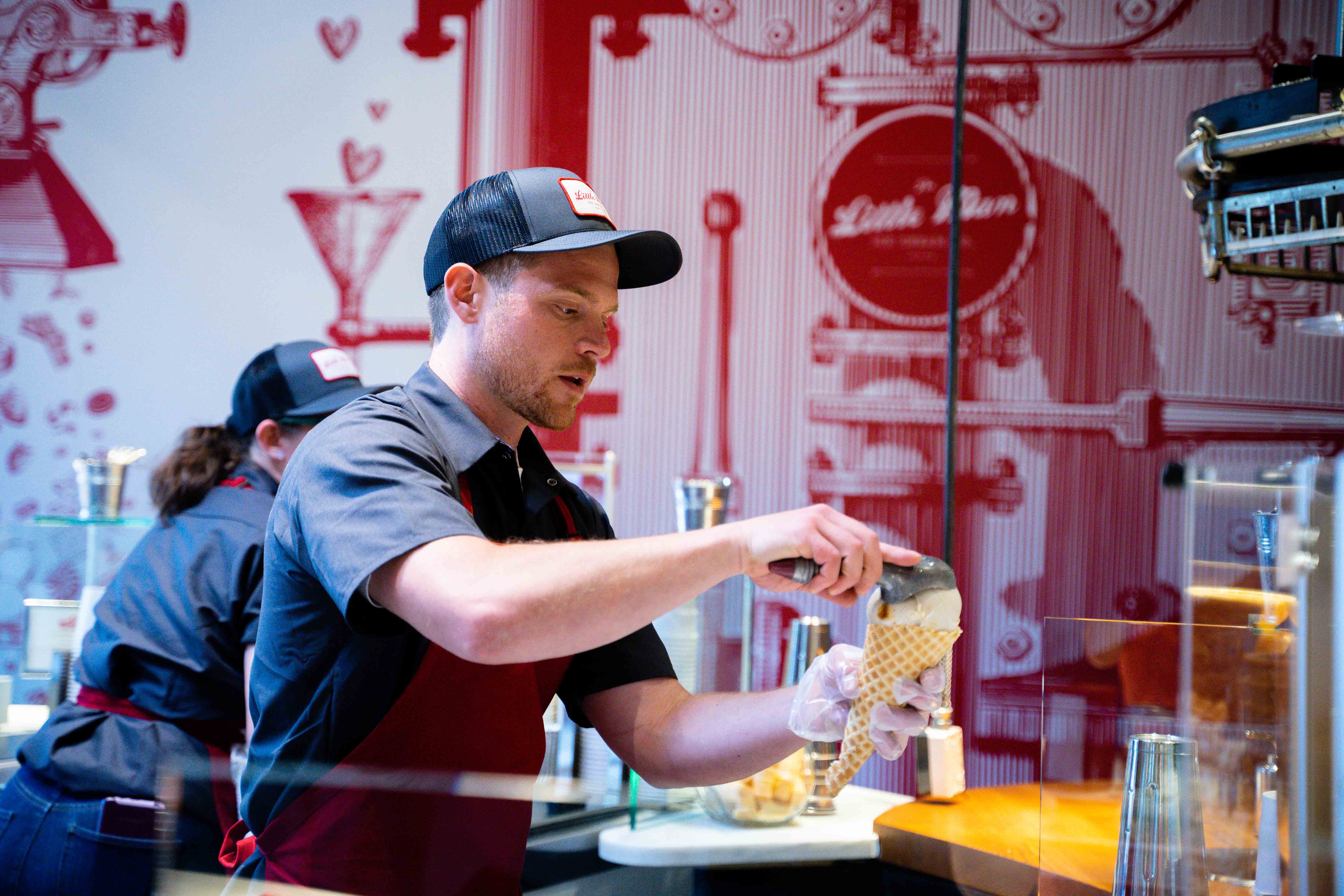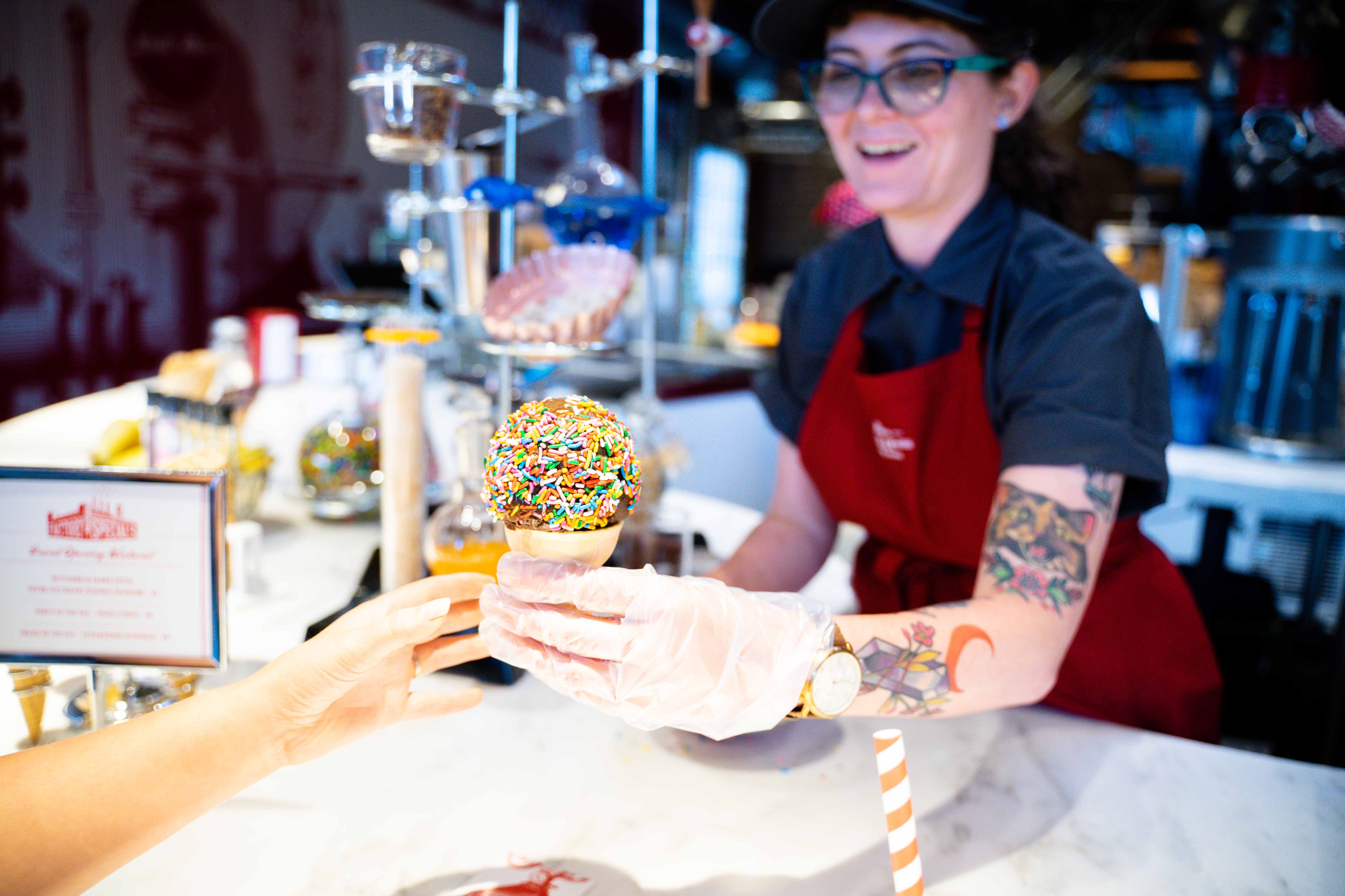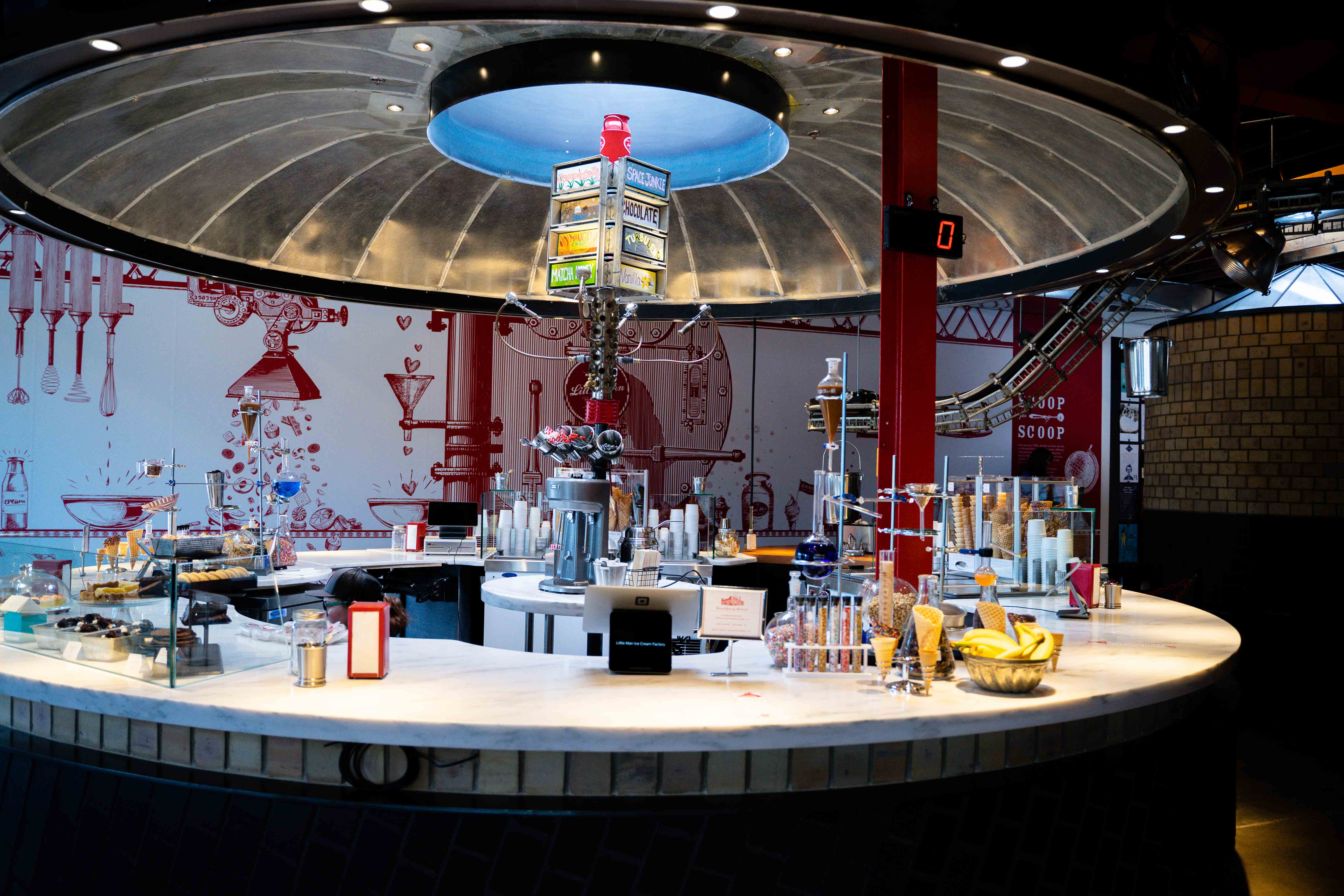 Glass panels are the only walls that separate guests from the cool creations which take a chilly trip into the freezers and are then delivered by a conveyor belt system in buckets right to the counter to be scooped and served up. Now with the new larger factory, the team and chef Claire Fields are able to use space to whip up even more ice cream and act as a test kitchen to create new and innovative flavors and test out new seasonal treats. It is also home to an in house bakery where cookies, brownies and other confectionaries are concocted.