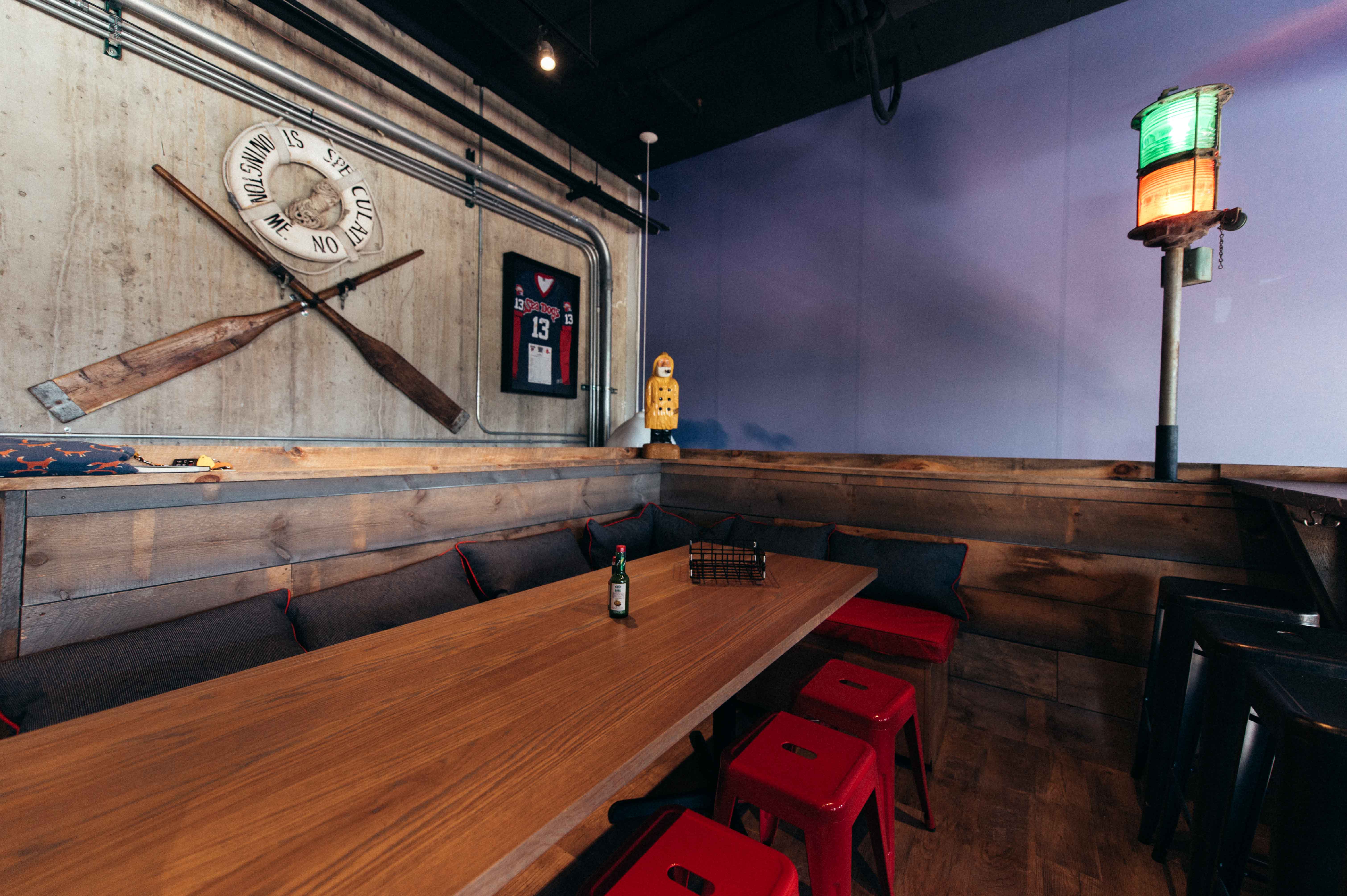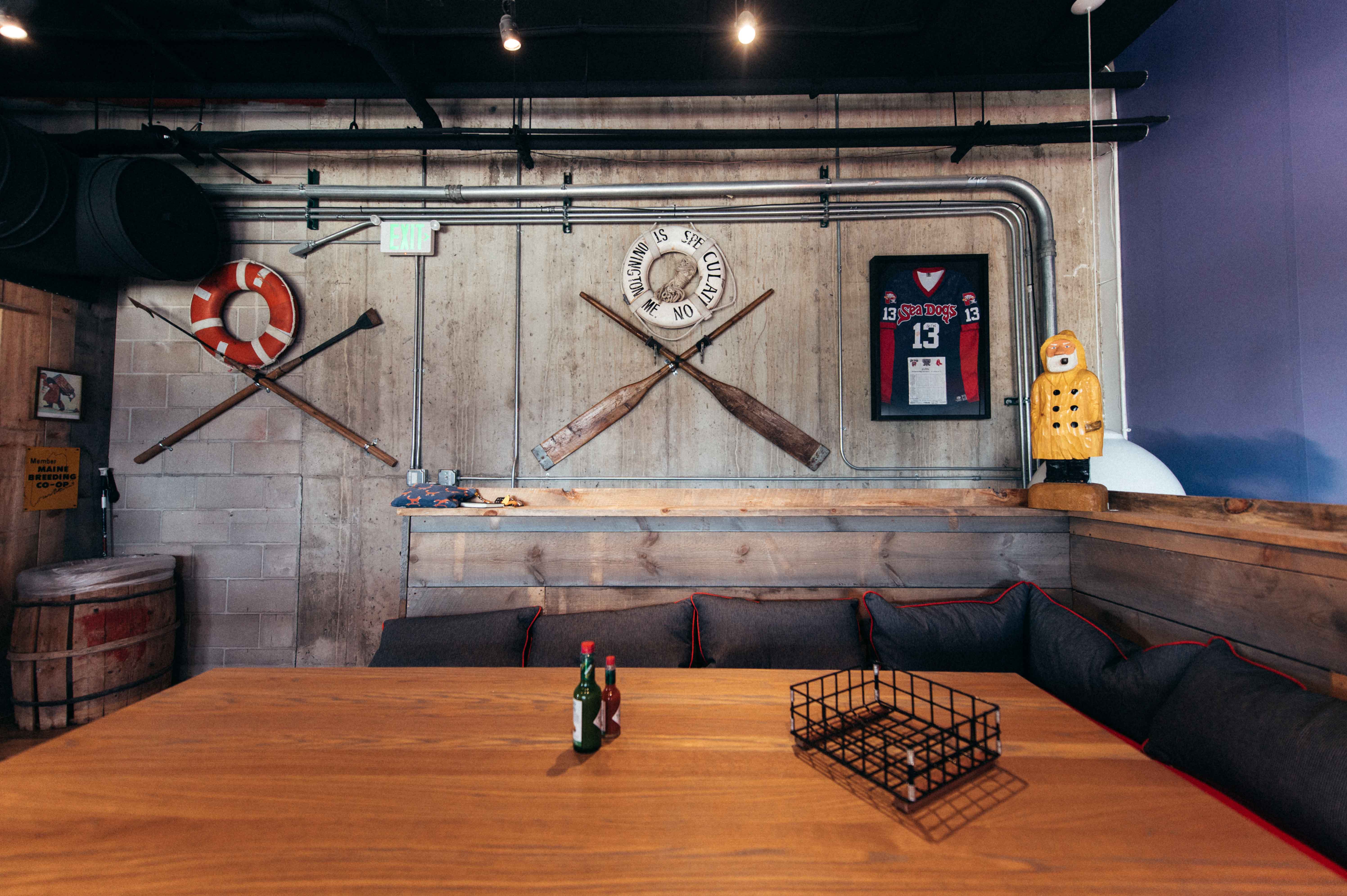Stepping into the place can make it hard to believe that the nearest ocean is over 1,000 miles away. The interior transcends homage, being so thoroughly outfitted with curio and memorabilia that patrons can almost smell a sea breeze. The wood that lines the walls was hand-selected by Ryan from antique places and Naval salvage yards then personally hauled from Maine. A chandelier — made from four vintage and three modern lobster traps — hangs conspicuously, and oars, jerseys and hand-carved crustaceans litter much of the available space. One wall is entirely covered with a 700 square foot mural of the famed Portland Head Light, and a wooden puffin Ryan stole from his parents’ house completes the nautical decor.