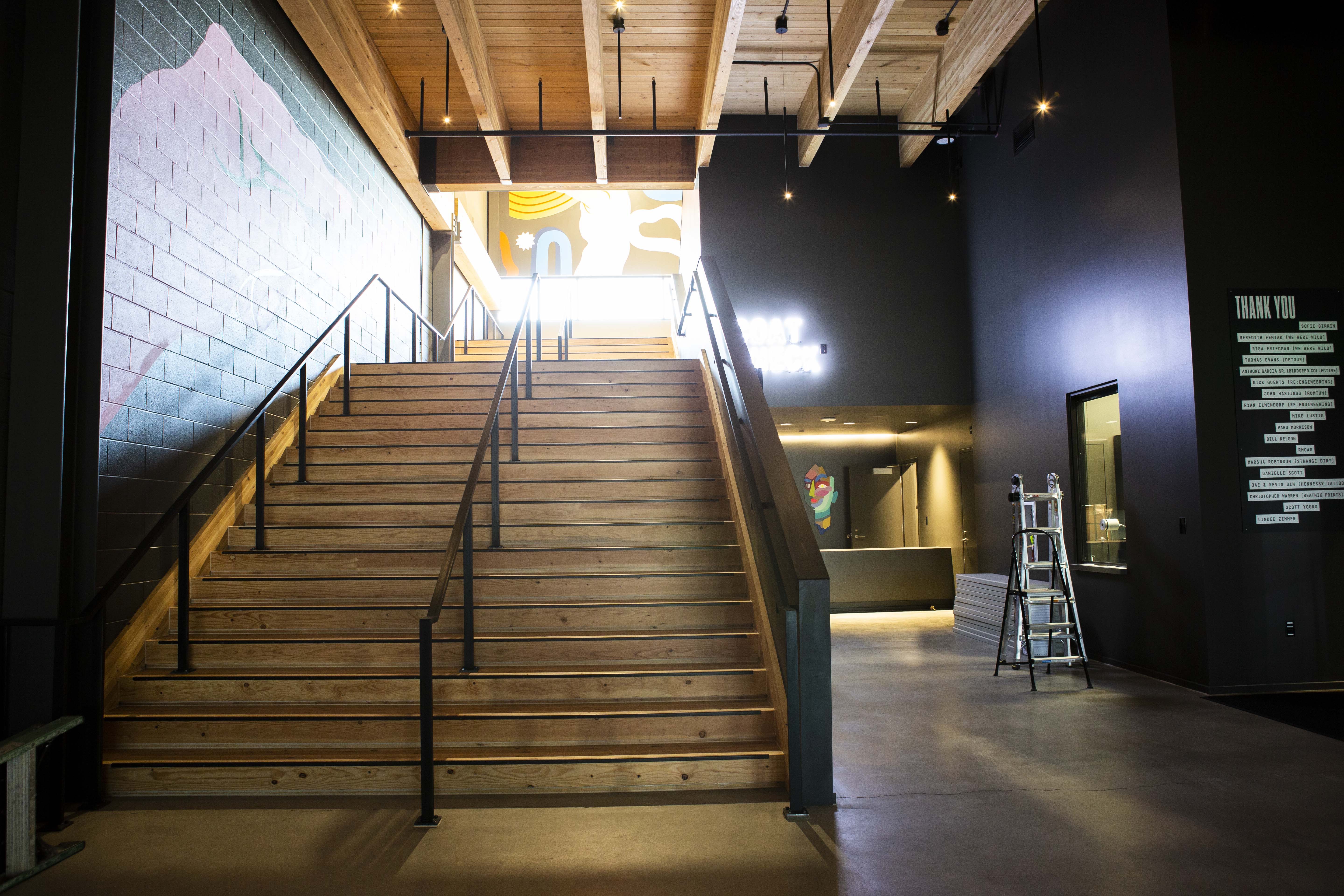 An enormous disco-ball nestles itself right in between the pit. As is the case with all of the art in the building, the disco-ball was designed by a local artist Mike Lustig and fabricators Re: Engineering, who have worked on similar projects for Burning Man as well as the Tree of Transformation in Civic Center Park. The projections are rumored to hit the entire ballroom, providing an unparalleled visual experience for the concertgoer. The choice to go local on all art was curated by Kellie Donahoe. You can catch up on all of the beautiful pieces and the curation process in a separate interview here.
