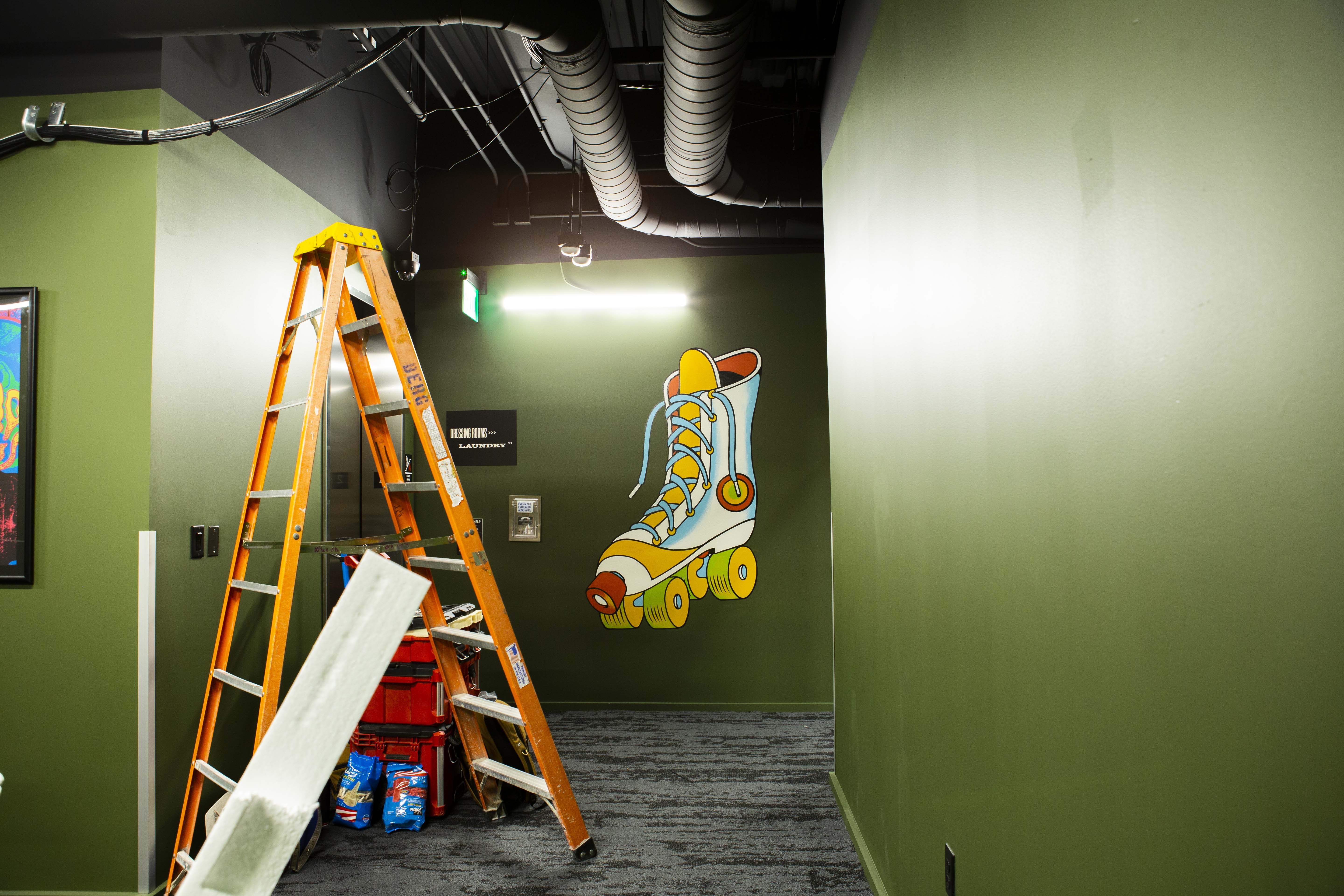Morris took us backstage, where the specific design touches were just as detailed for the musicians themselves. A loading bay for semi-trucks right next to the stage entrance, incredible floor to ceiling showers, vinyl and record players provided by Vinyl Me, Please, all paraded in between glorious works of local art. It was hard to stay fixated on one detail for too long, finding another intricacy around the corner. I expressed my admiration and Morris wasn’t having it. He wouldn’t accept the compliments unless they came with a very specific footnote. This was a team effort. “I certainly don’t want to take solo credit. No, I’m only as good as the people in our staff and my partners.” Everything was done because of his two partners Brent Fedrizzi and Don Strasburg and the entire team working on this day and night who he recalls by name and greets with a smile as we walk through the venue.