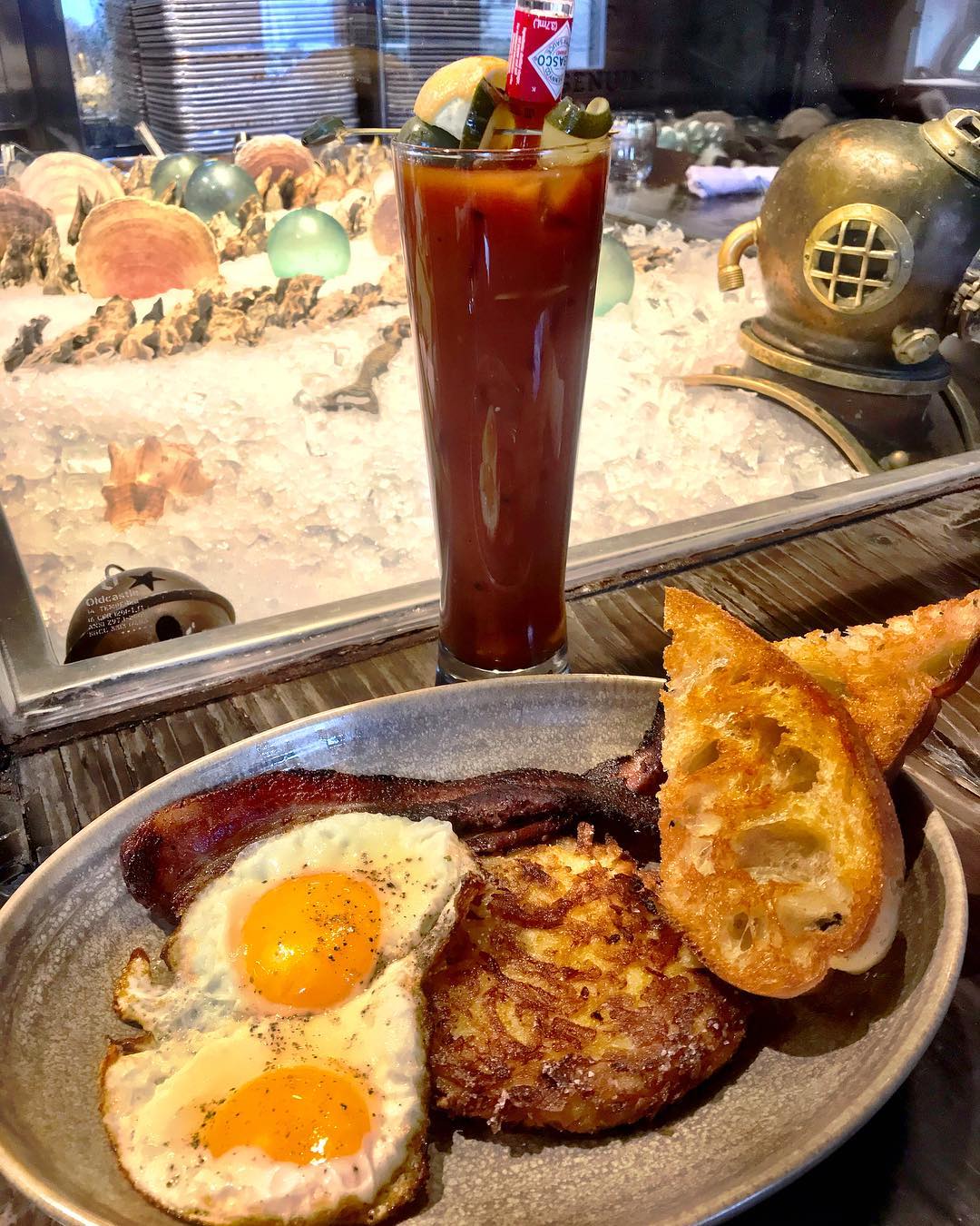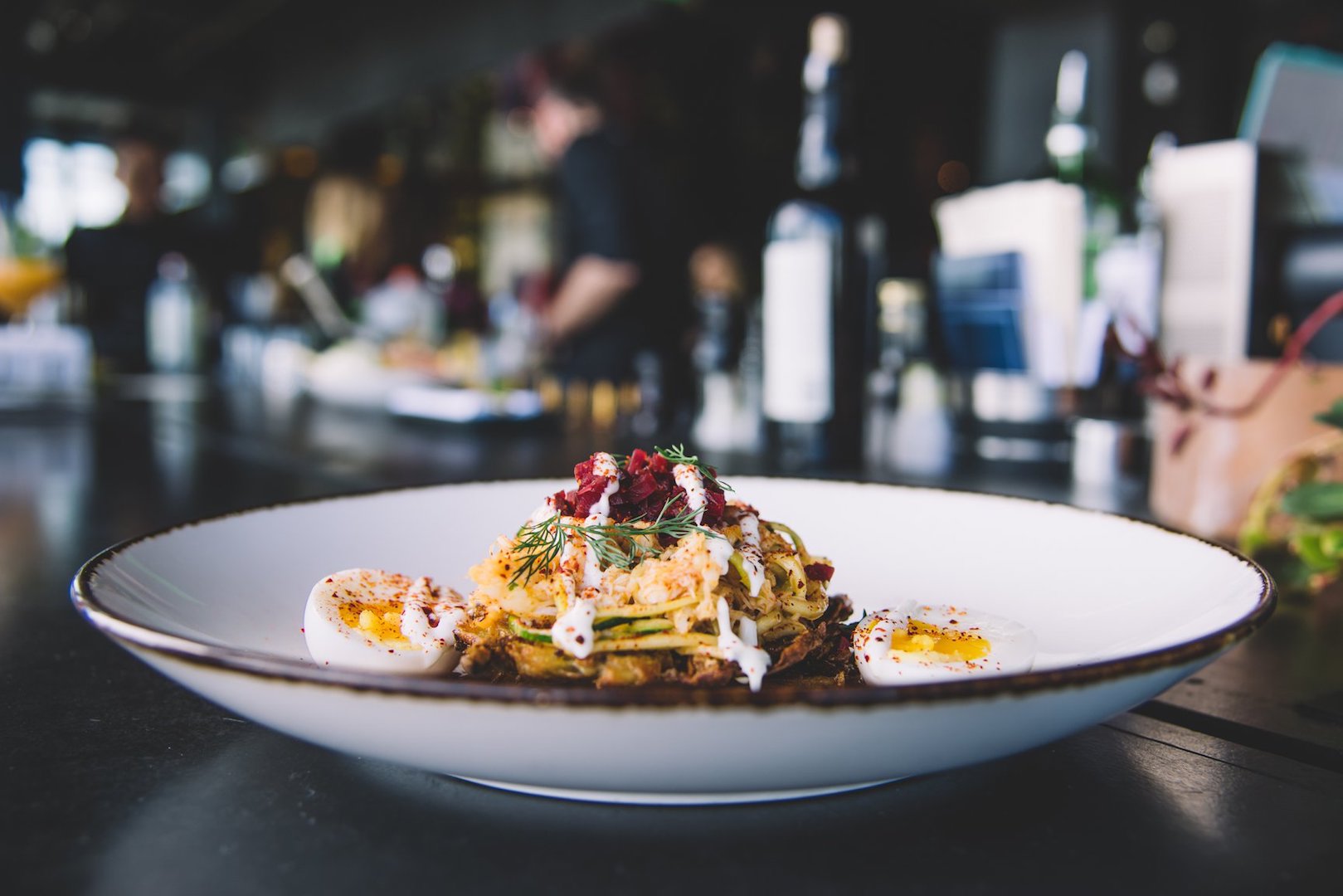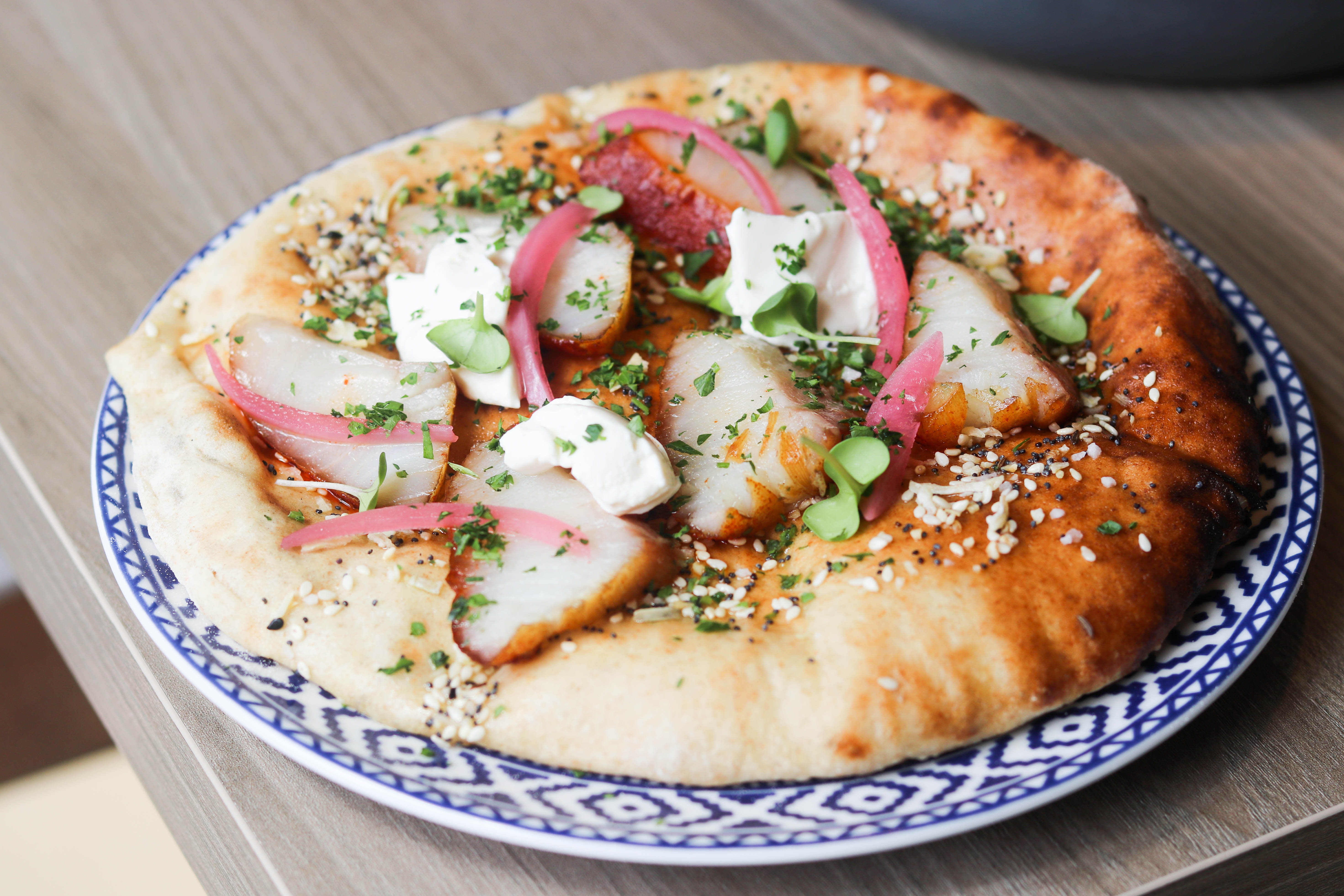 The Lowdown: Hummus for breakfast? Right on! This is what should be said about the “unorthodox cuisine” being dished out for Sunday brunch at Ash’Kara. Not to mention — “right on!” or “totally!” — is essentially the Hebrew street-slang translation of Ash’Kara — chef Daniel Asher’s globally inspired concept which opened in the lower Highlands earlier this year. Wake up to a unique take on Israeli cuisine and sip a Peace-Full ($12) featuring Spring 44 gin, greek yogurt, pomegranate and orange flower, or a detox retox ($9), with Spring 44 vodka and kombucha. Tastebuds tingling, yet? Savor a variety of Mediterranean staples with the Kibbutz breakfast plate ($14) featuring babaganoush, labneh, dill tabouleh and smashed avocado — or, surrender to the brunch saganaki ($16) with duck prosciutto, sous vide egg, ouzo and lemon— flamed to perfection. Alas, let us not forget the smoked sable ($16), with capers, pickled onion and labneh on Ash’Kara’s “everything spice” wood-fired pita.