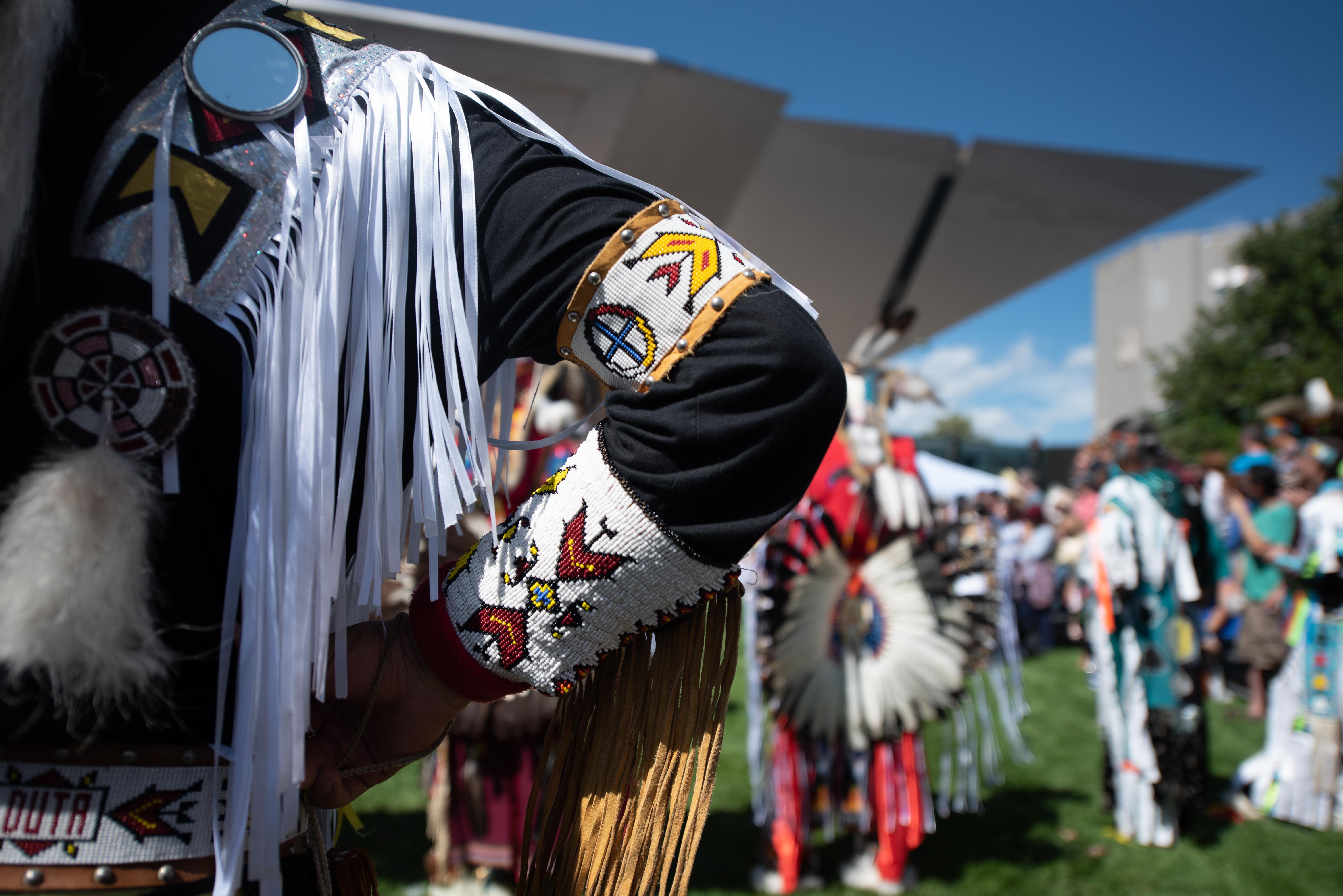With help from partners in the local Native community and the Native Arts Department at the Denver Art Museum, the powwow kicked off with a memorial for Blomberg, the former chief curator of art and the curator of Native arts at the Denver Art Museum who passed last September. Blomberg was honored with a traditional ceremony called a “Wiping of Tears” where friends and family were able to take time to remember Blomberg and have others give their condolences. During this time attendees were asked not to record and take photos due to the sacred nature of the ceremony and out of respect of the friends and family of Blomberg.