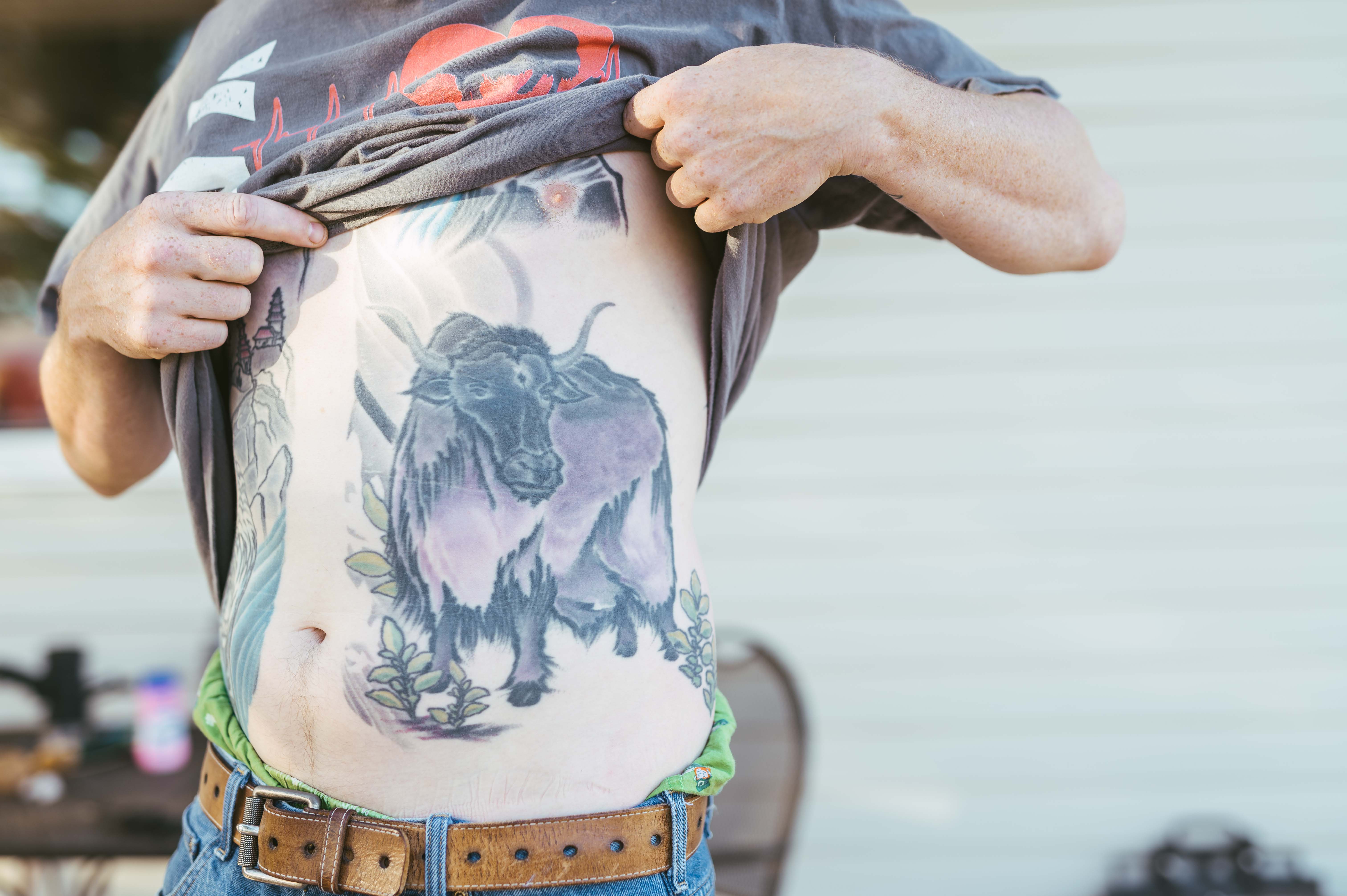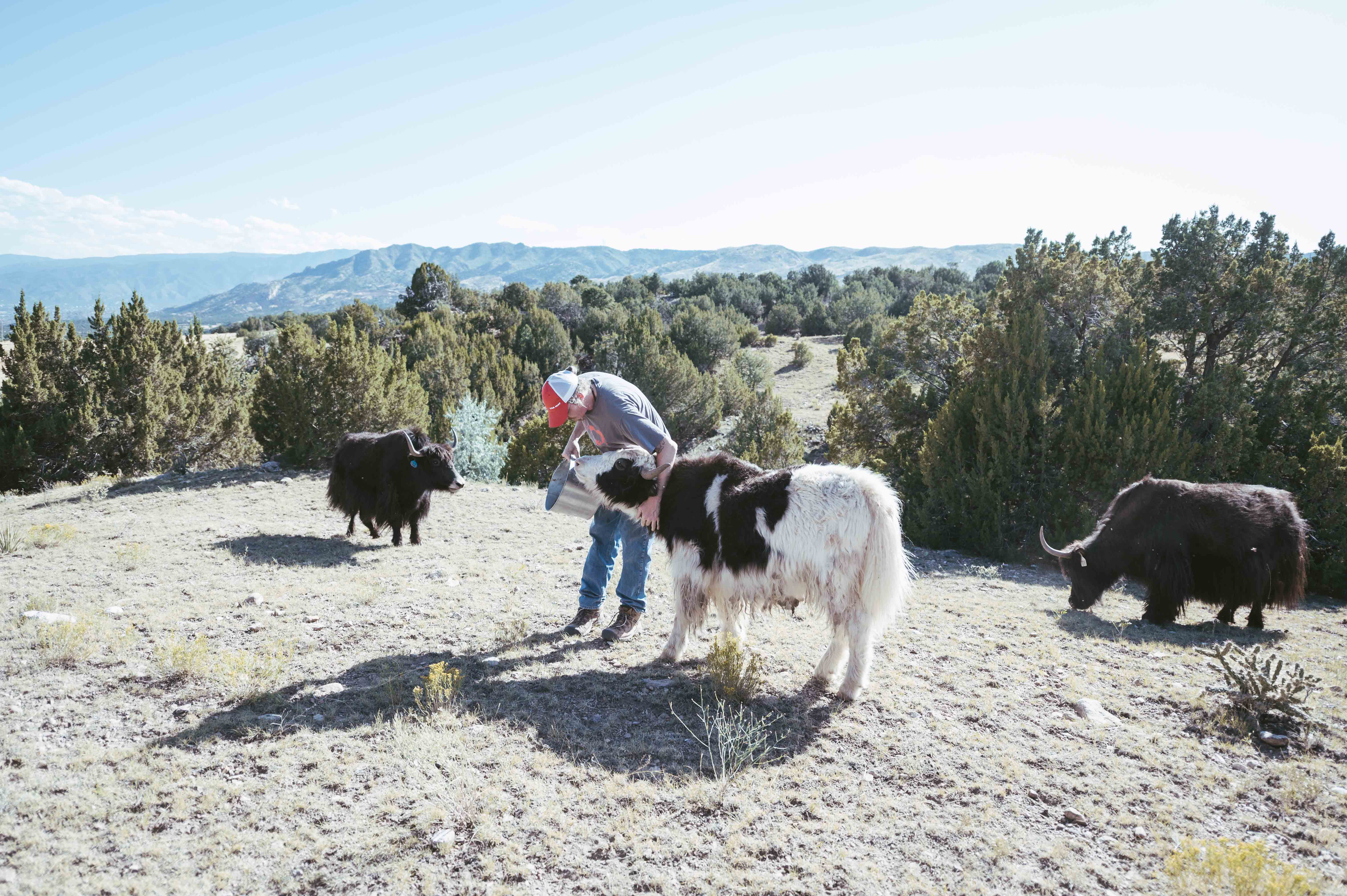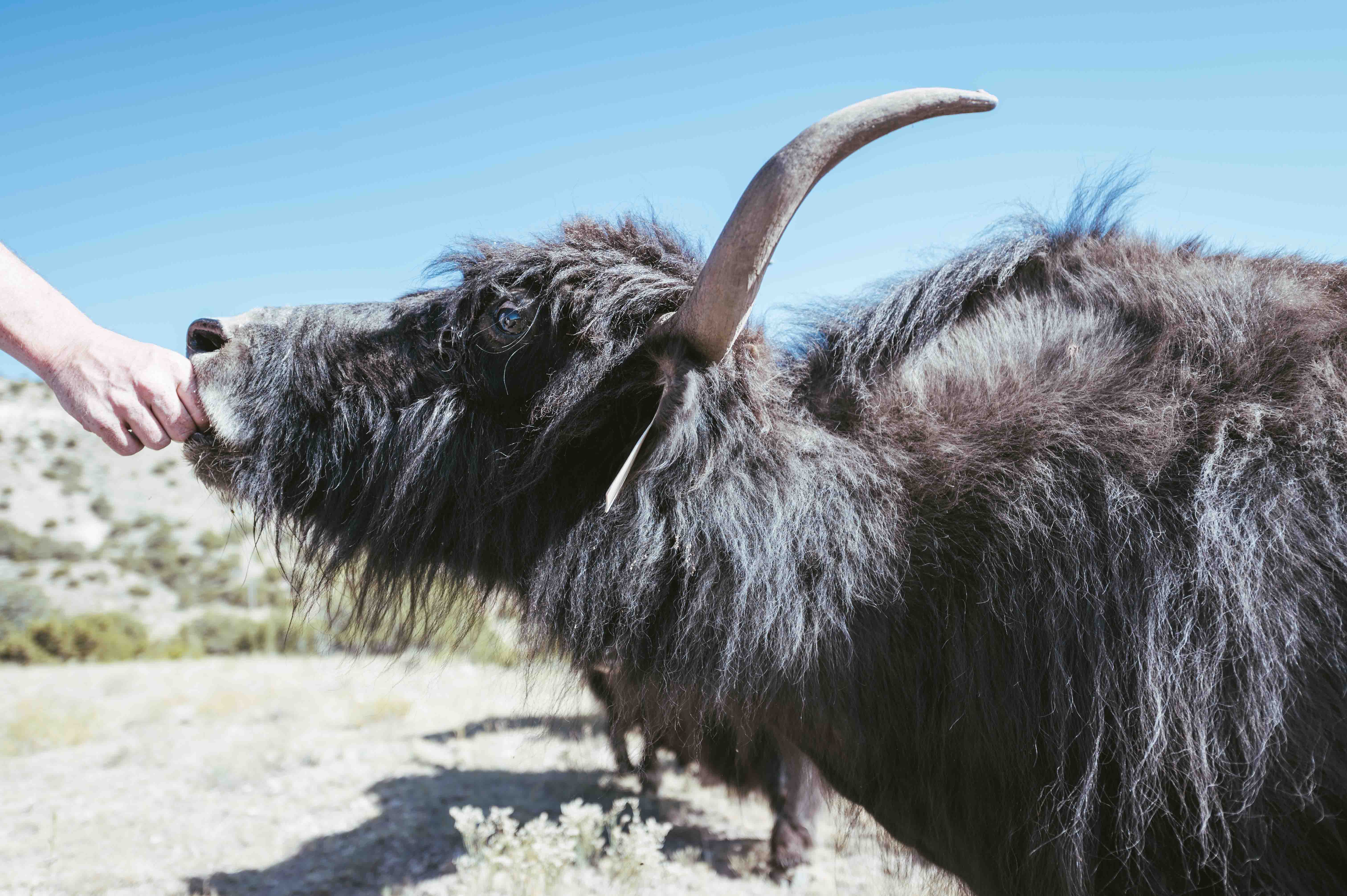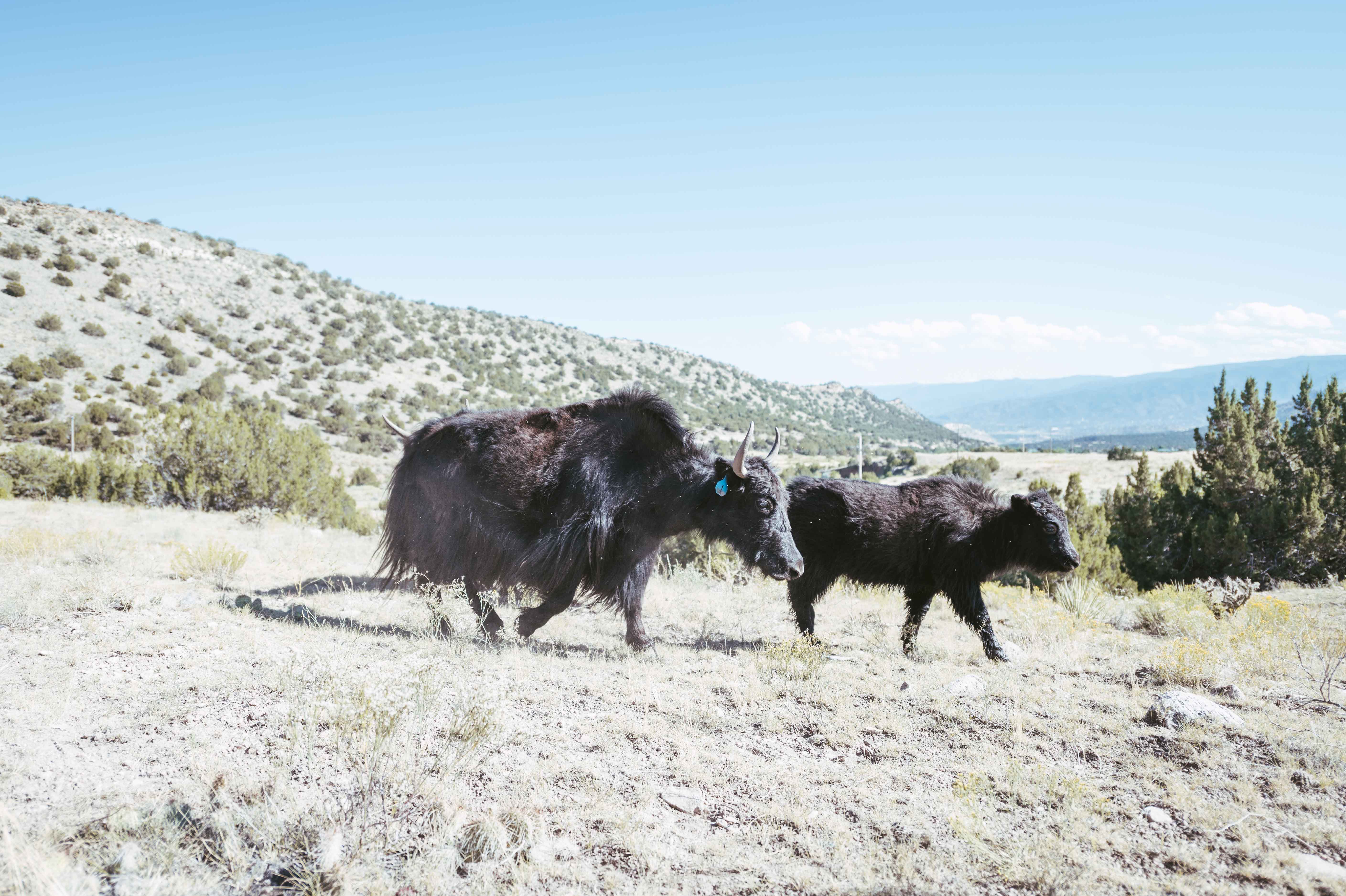 Cañon City sits around Denver’s elevation — the ranch resting somewhere between 5,300 – 5,5000 feet high. According to Gall, yaks thrive anywhere above 4,000 feet, and by the looks of it, the crew is quite comfortable roaming the hilly grasslands that make up the place. This is Gall’s second spot. The first is a 3,000-acre range in the San Luis Valley where the majority of his herd still roams. The 11 pasture yaks — with names like Leo, Phoebe and Babette — and one bottle-baby that occupy the residence are still a formidable sight. The other location has a whopping 120 of the burly beasts stomping the land. An old friend Jay Roybal remains on the original property doing his best to impose order.