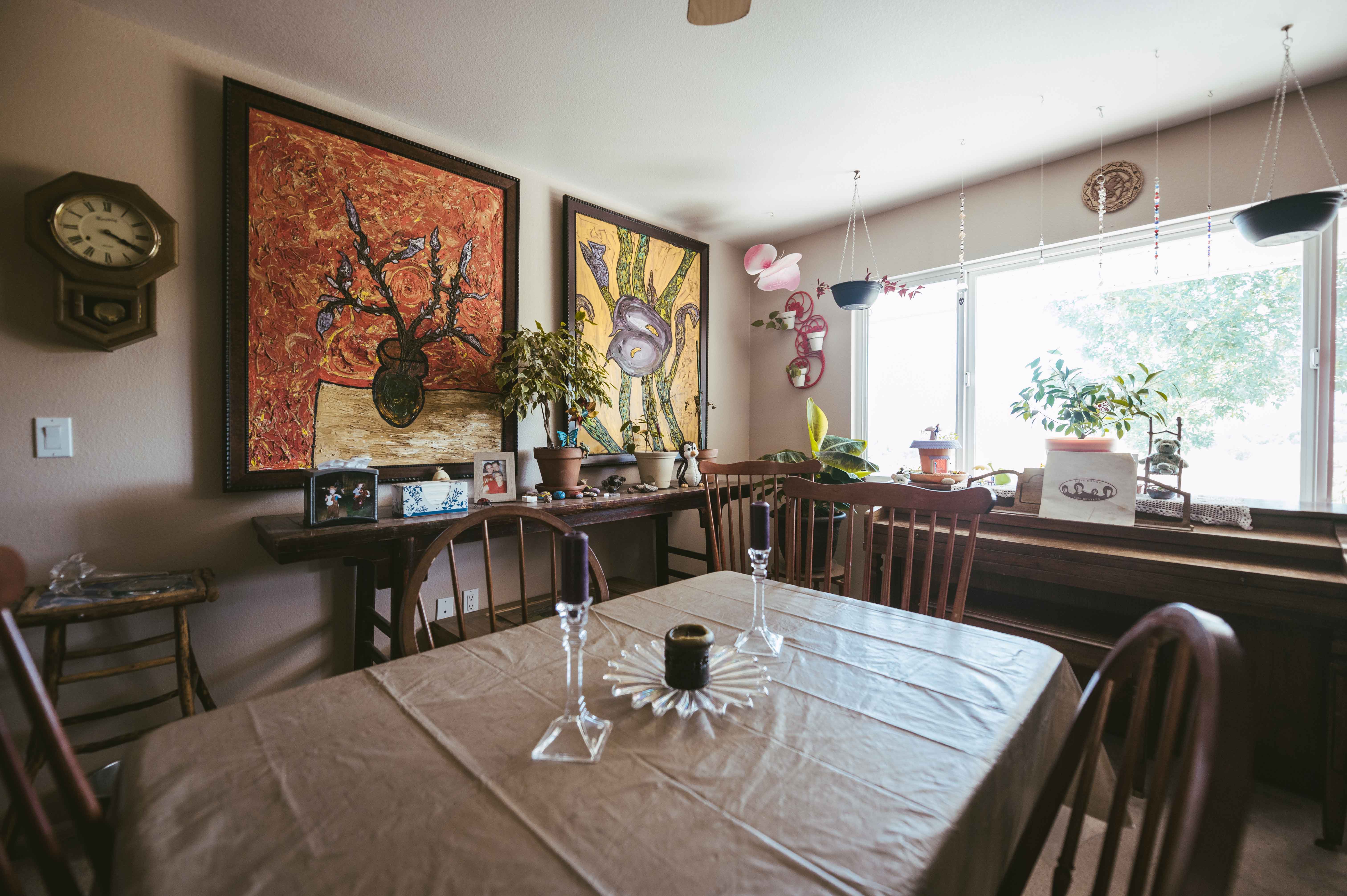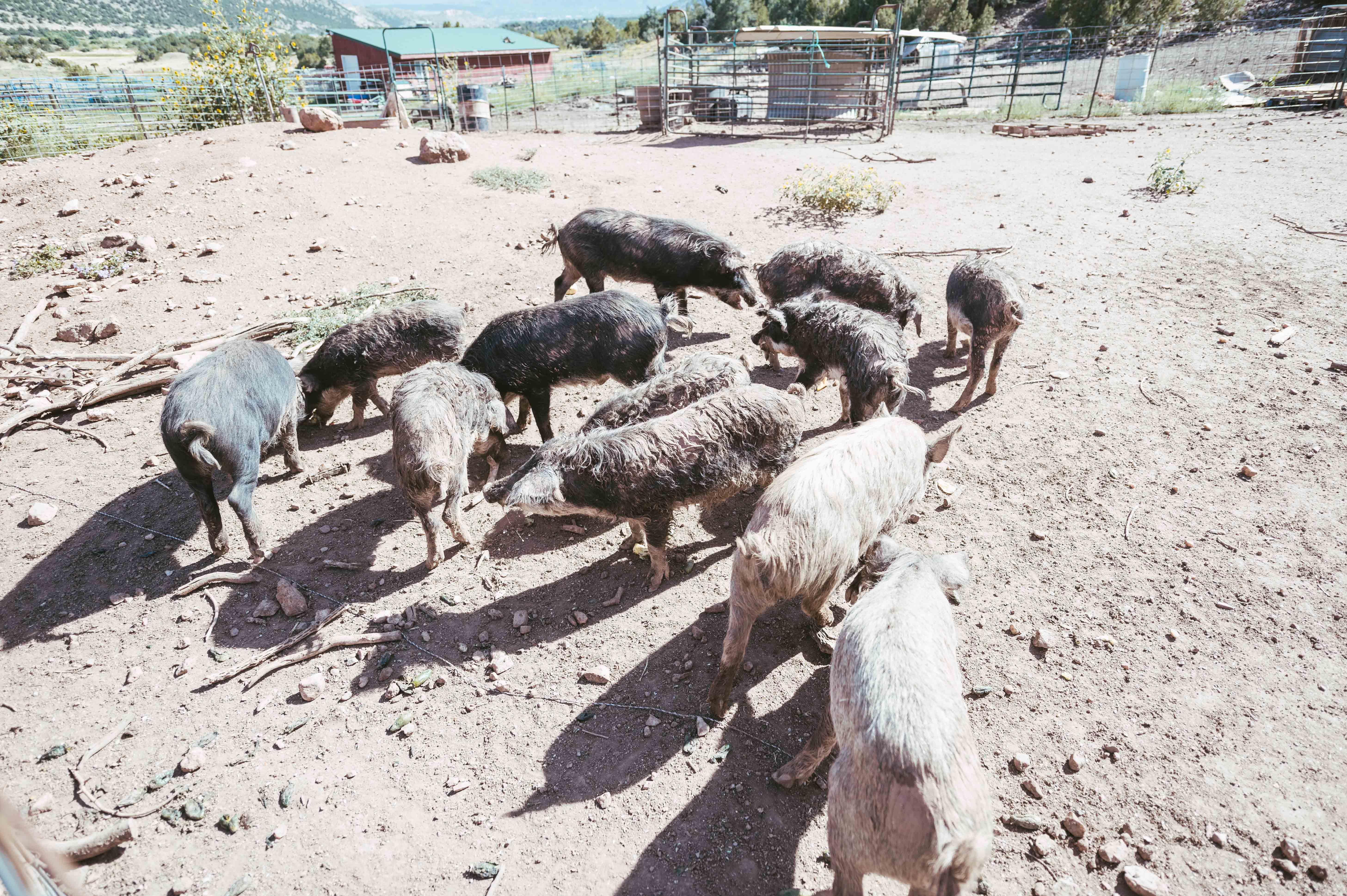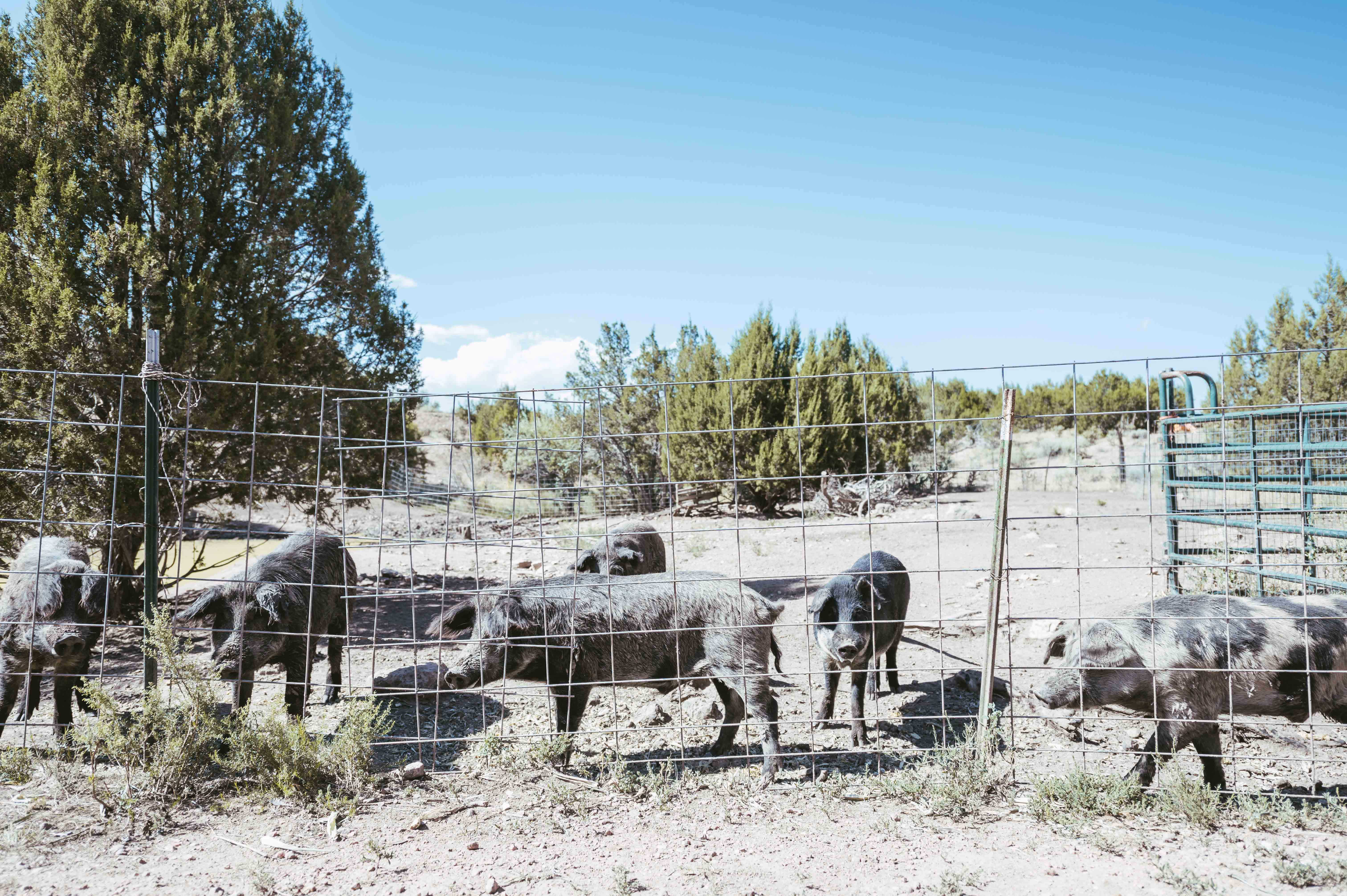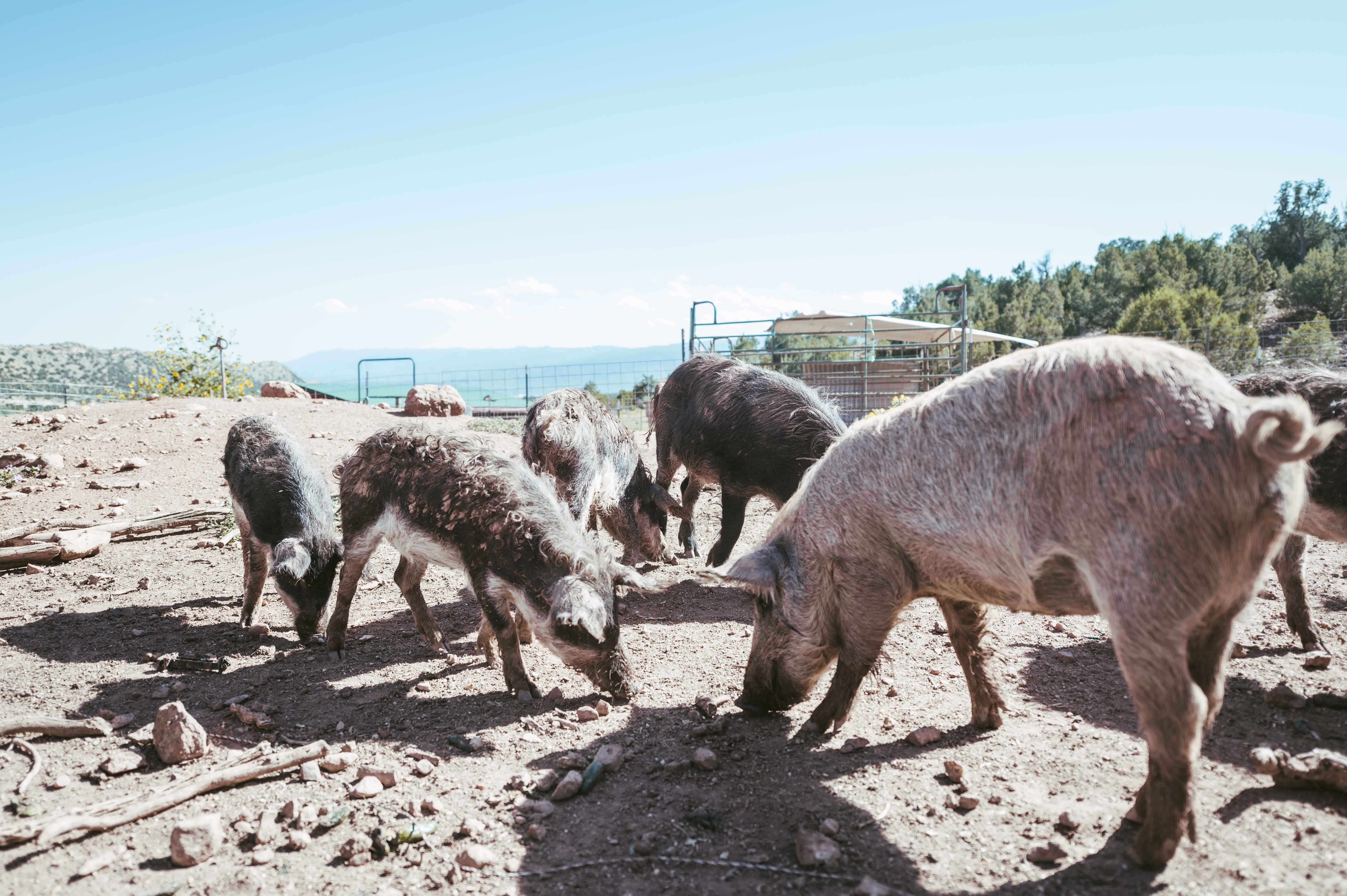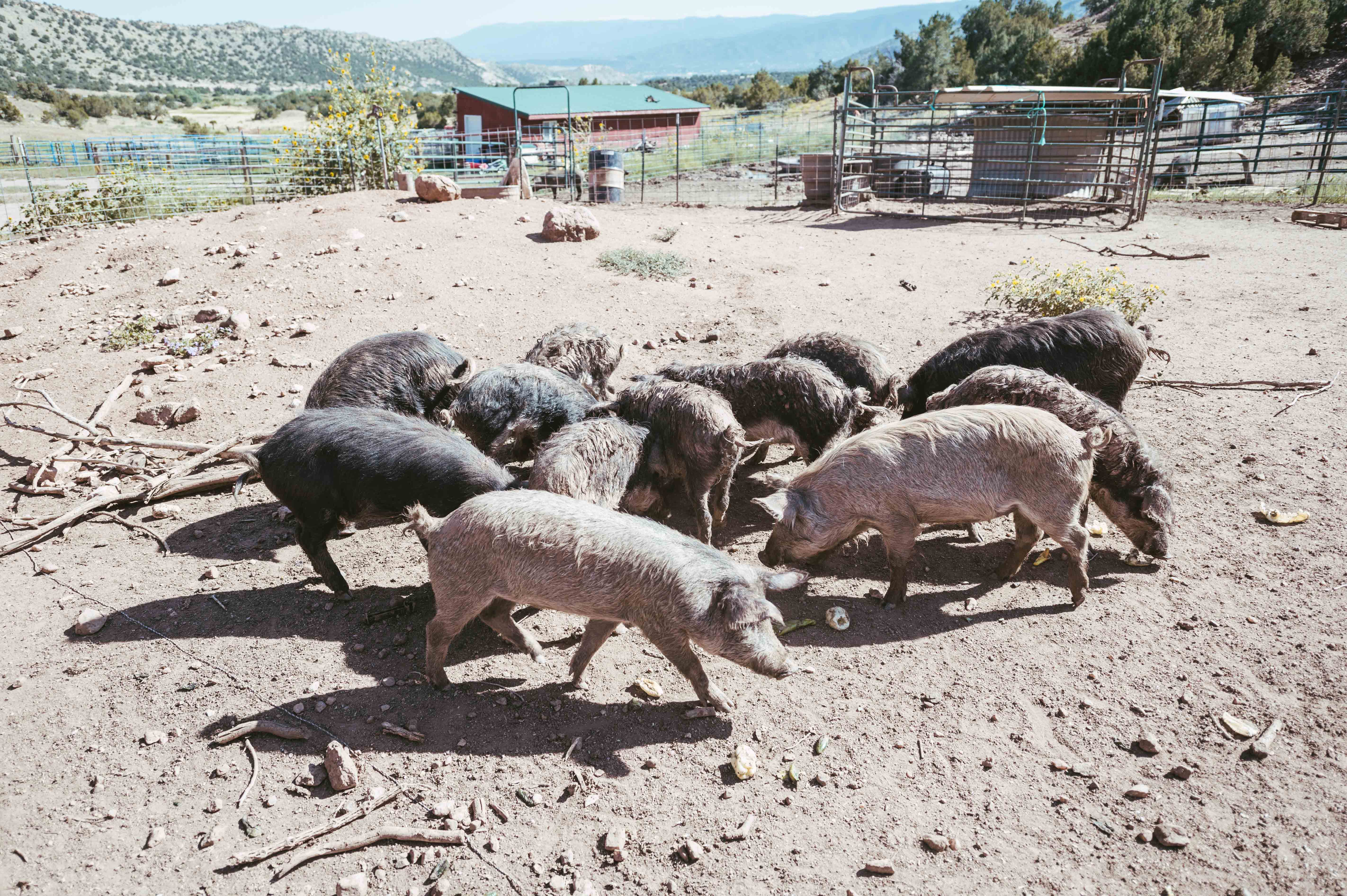 Two years ago Gall and Birge relocated to the current location, hoping that the lower elevation would be better suited for Birge’s daughter. The three live in a comfortable house on-site. Gall’s oil paintings adorn most of the walls and the regal feline Marley seems to always find the best spot to command the greatest amount of attention. Birge, self-described as the “ranch-hand Barbie” played a substantial role in the addition of the pigs — a mix of Berkshire, Mangalista and crossbreeds that only appeared at the new location — citing a long-lasting desire to have some of the animals around. The pack is fairly mild-mannered but definitely make their presence known. Hogs meant for breeding are given names like Bonnie and Clyde, while those destined for the chopping block receive designations like Bacon and Bits.