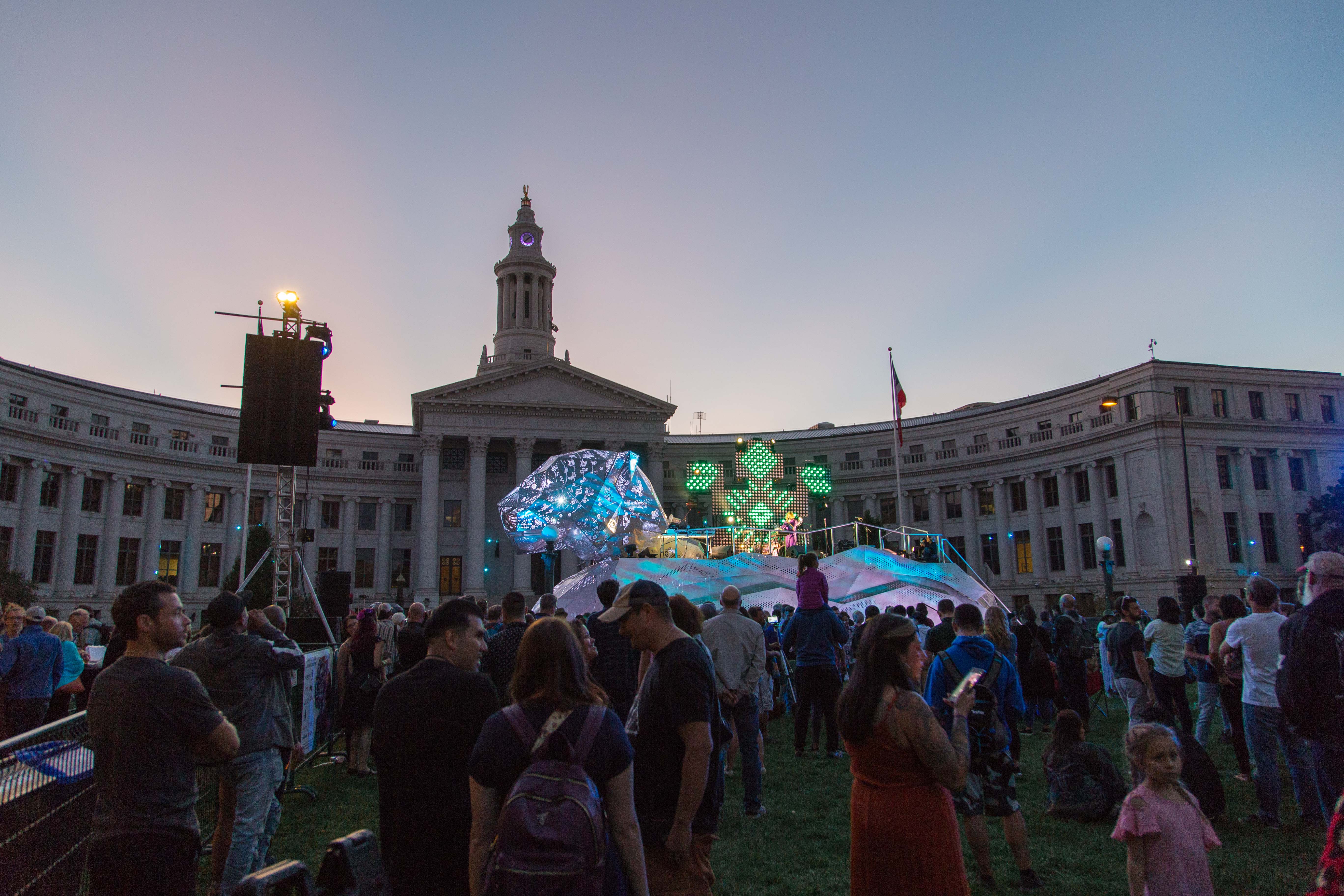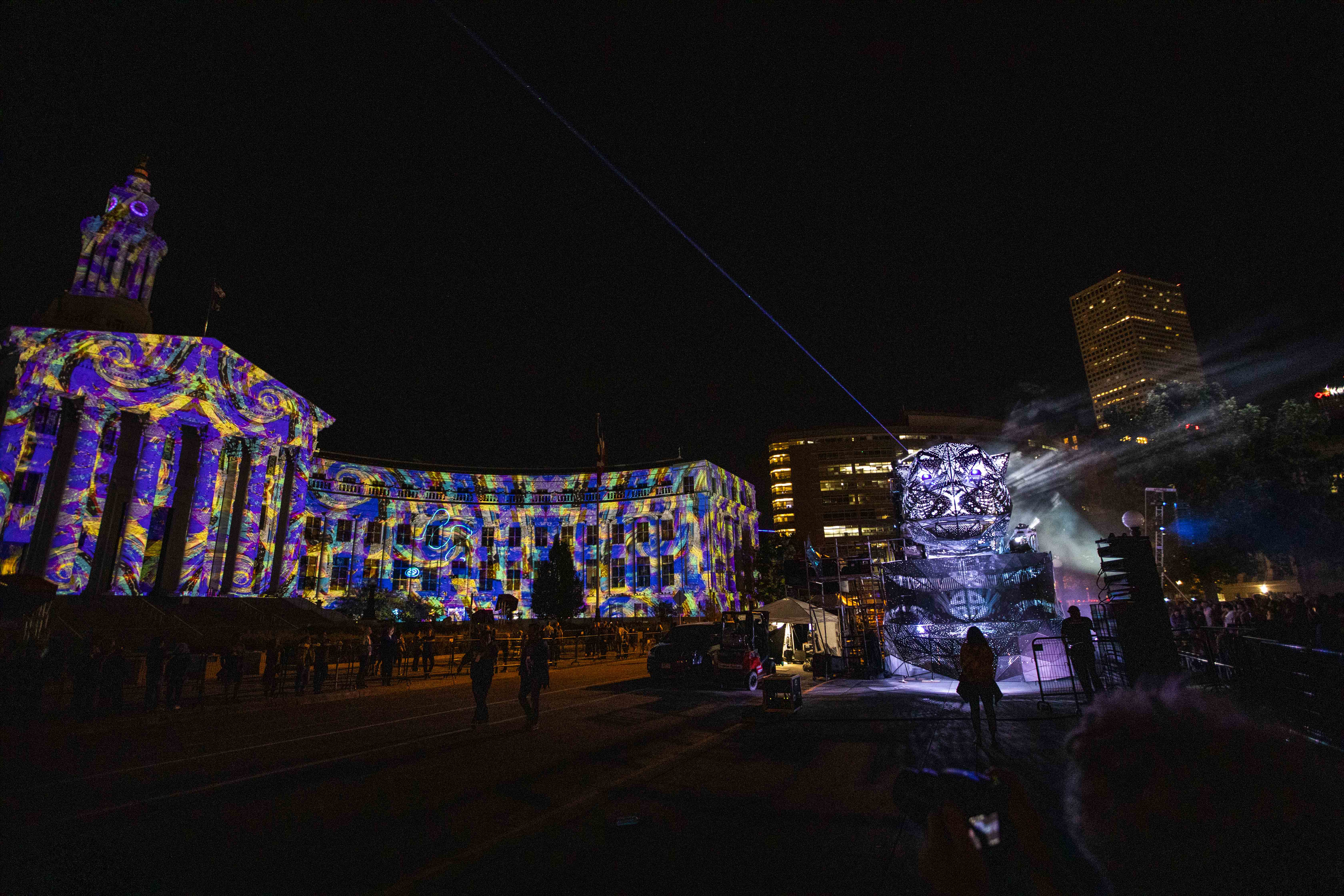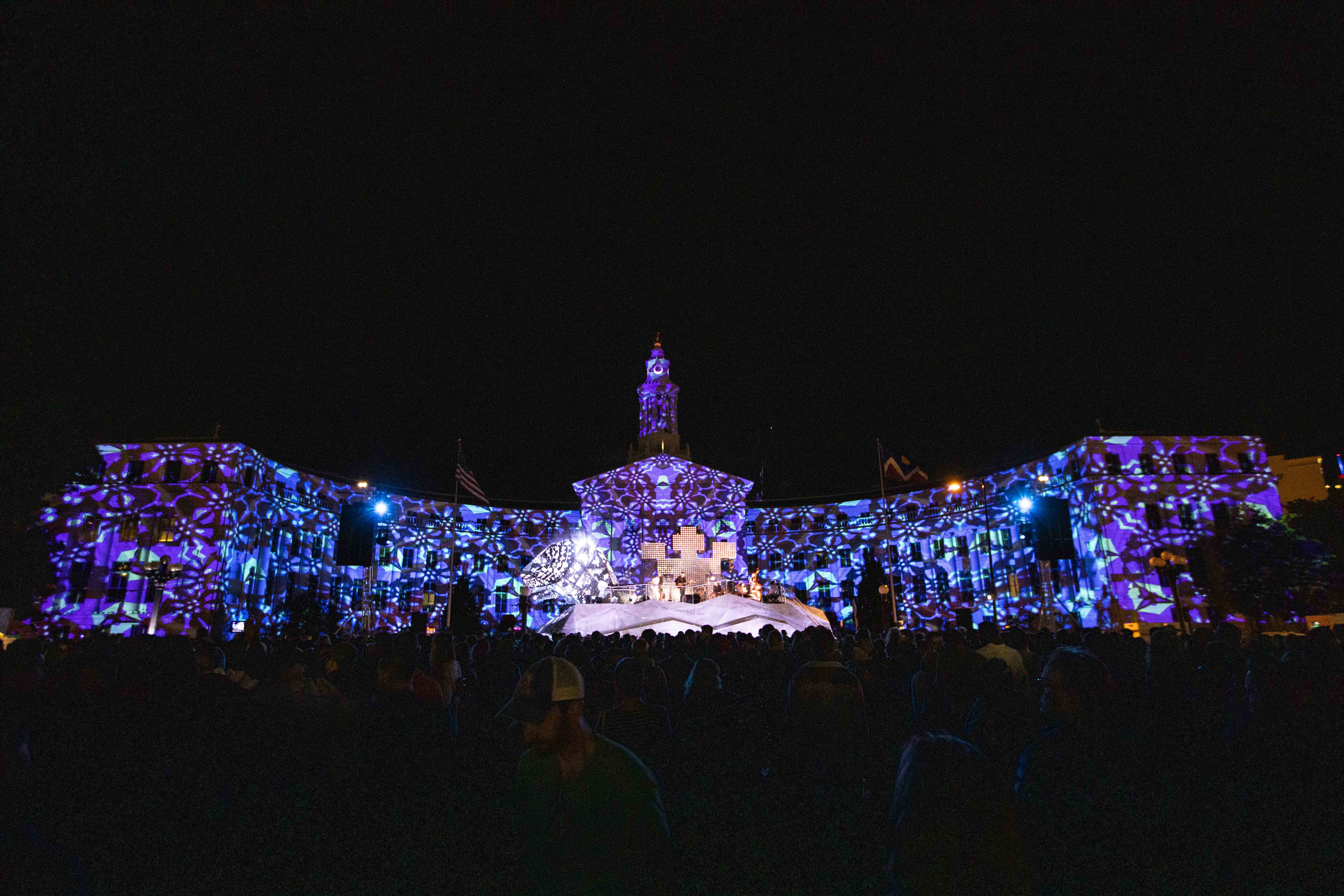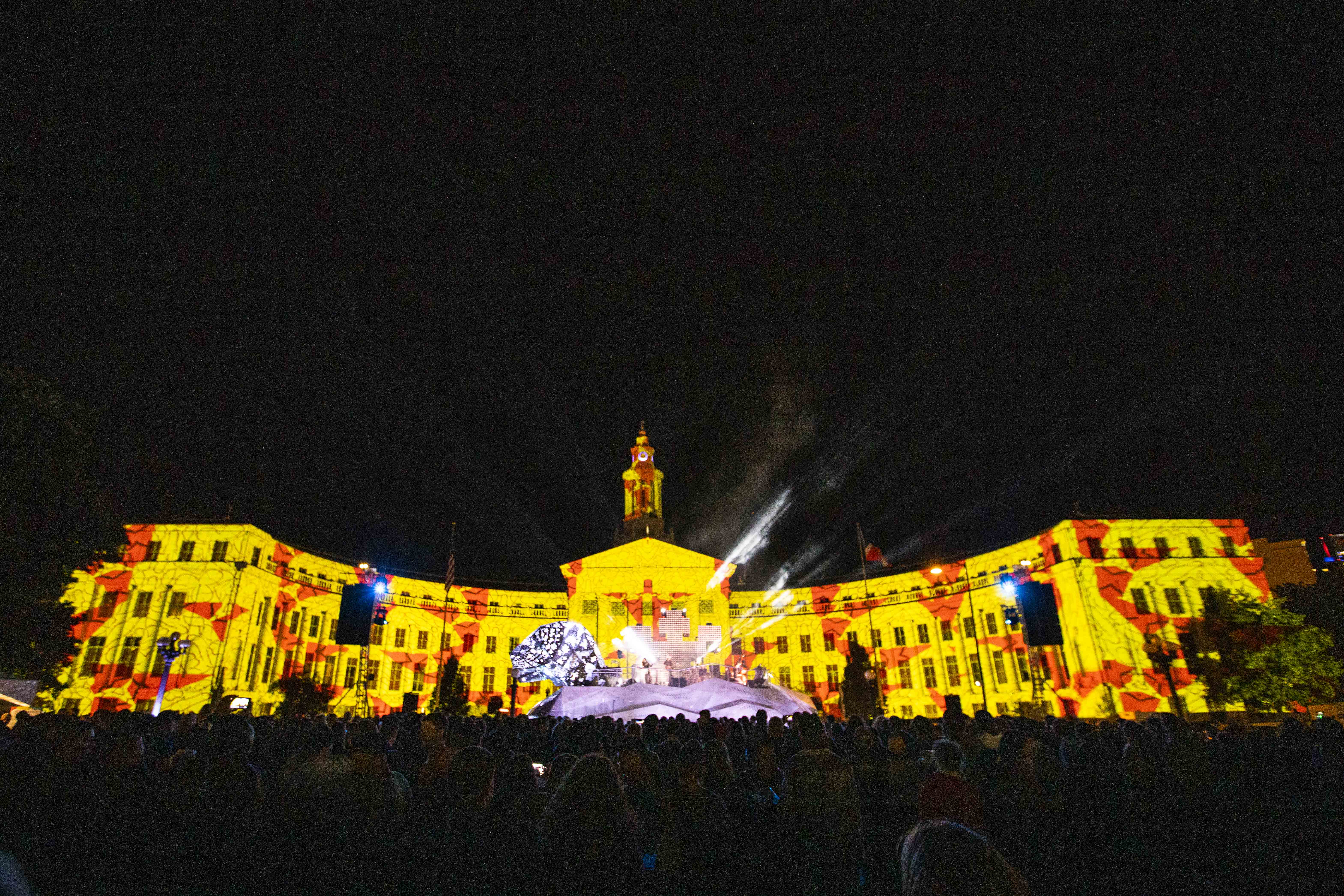In case you missed it on Saturday night, a giant geometric metal jaguar took over Civic Center Park, acting as a stage for a lineup of Latinx musicians during the centerpiece of the Biennial of the Americas festival. Once the sun went down and darkness set in, beautiful projections came to life on the Denver City and County Building, evoking South American motifs and transforming downtown into an urban jungle.