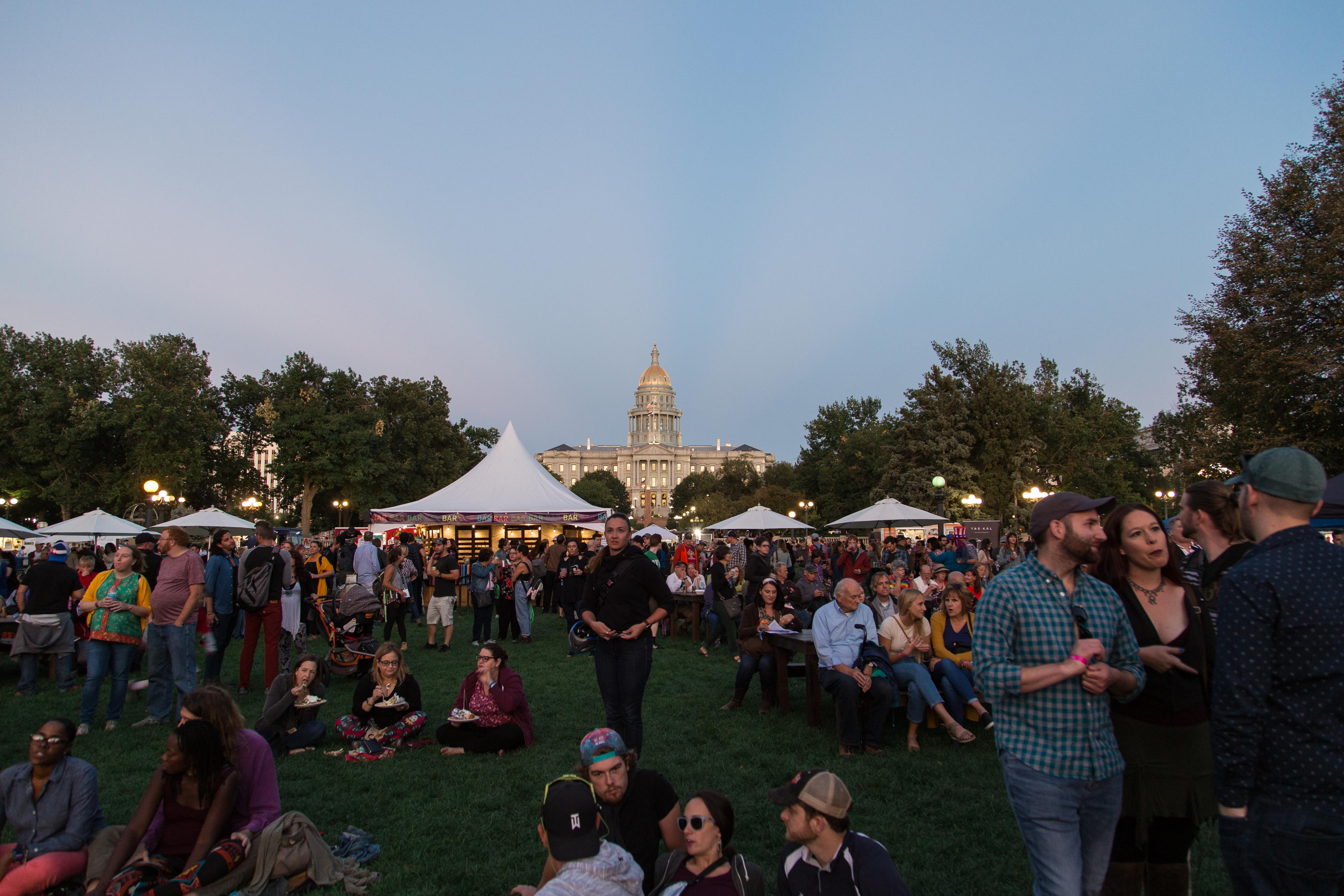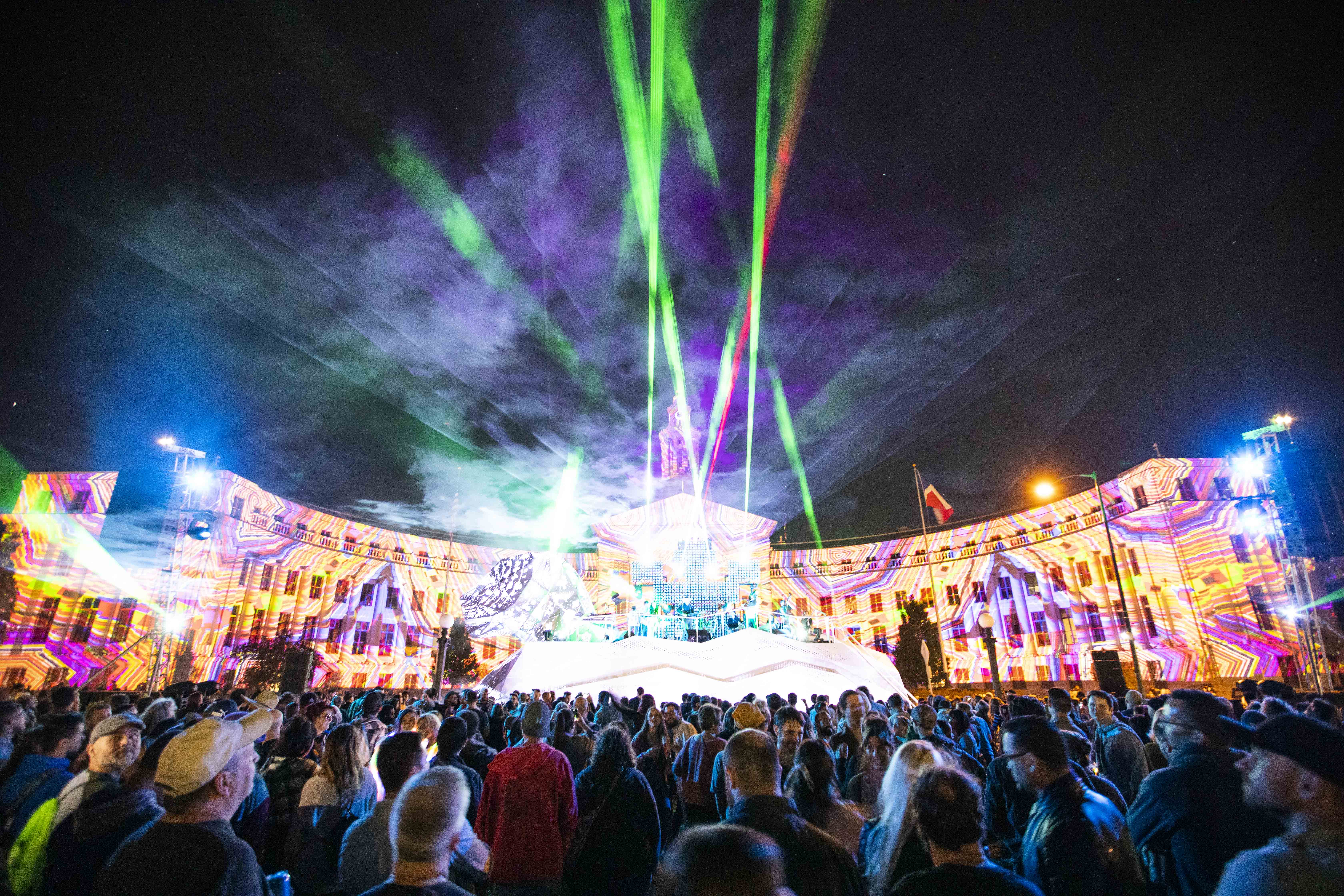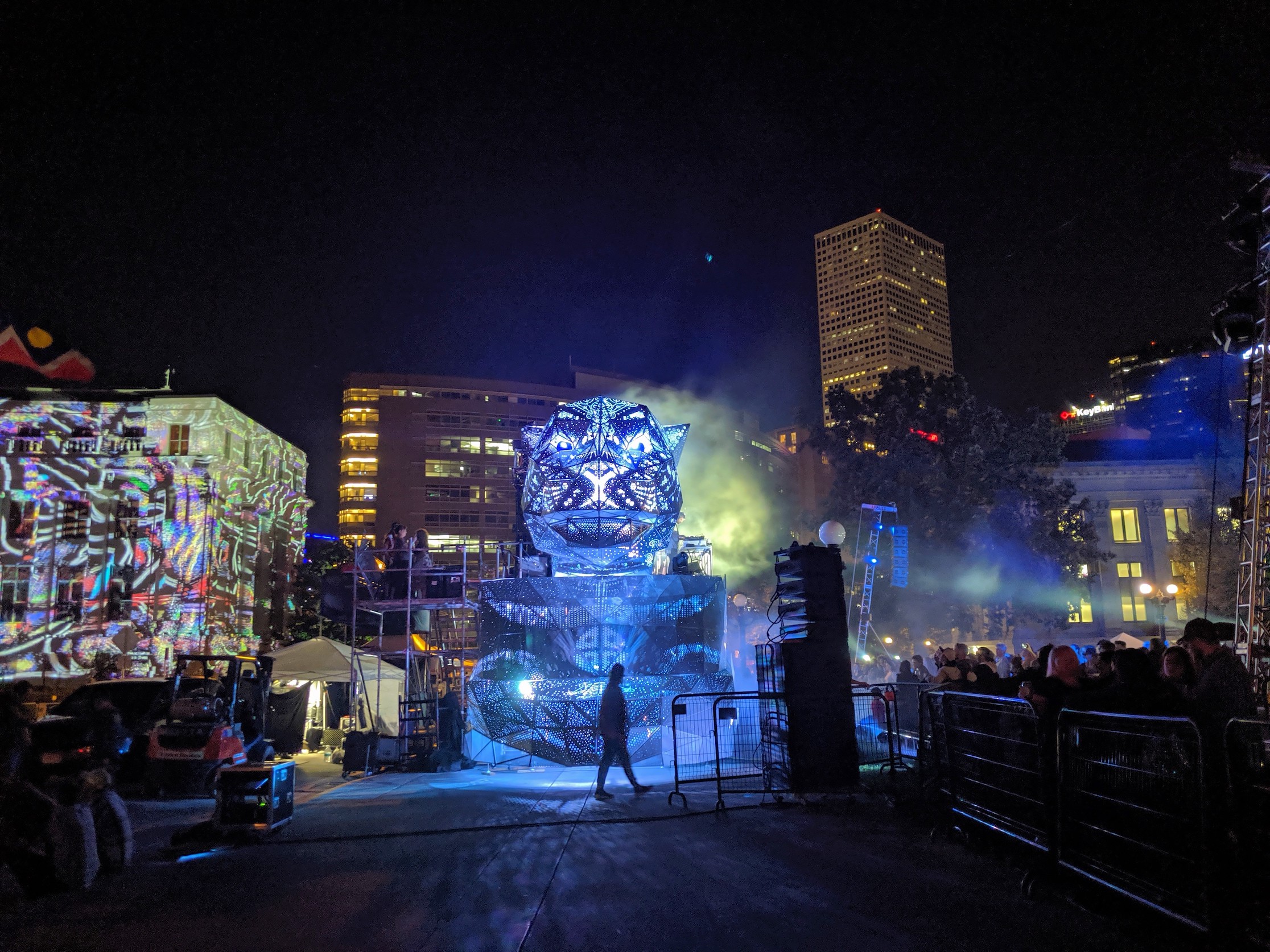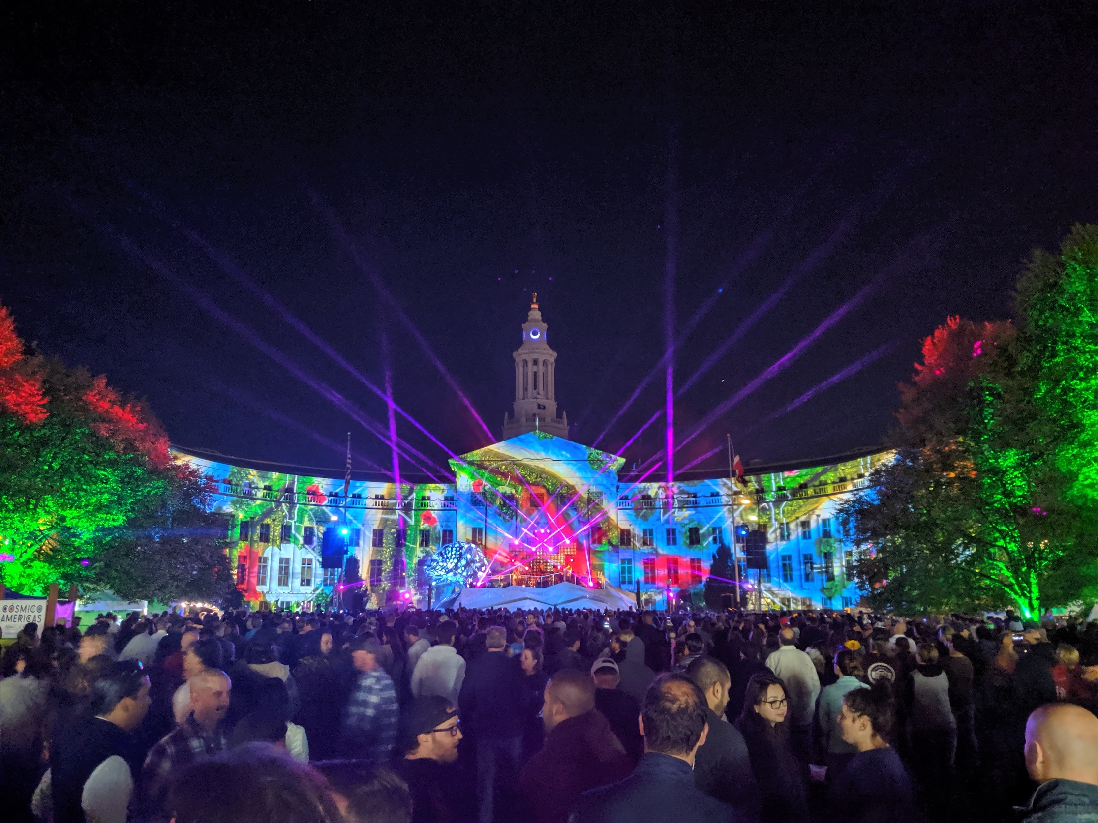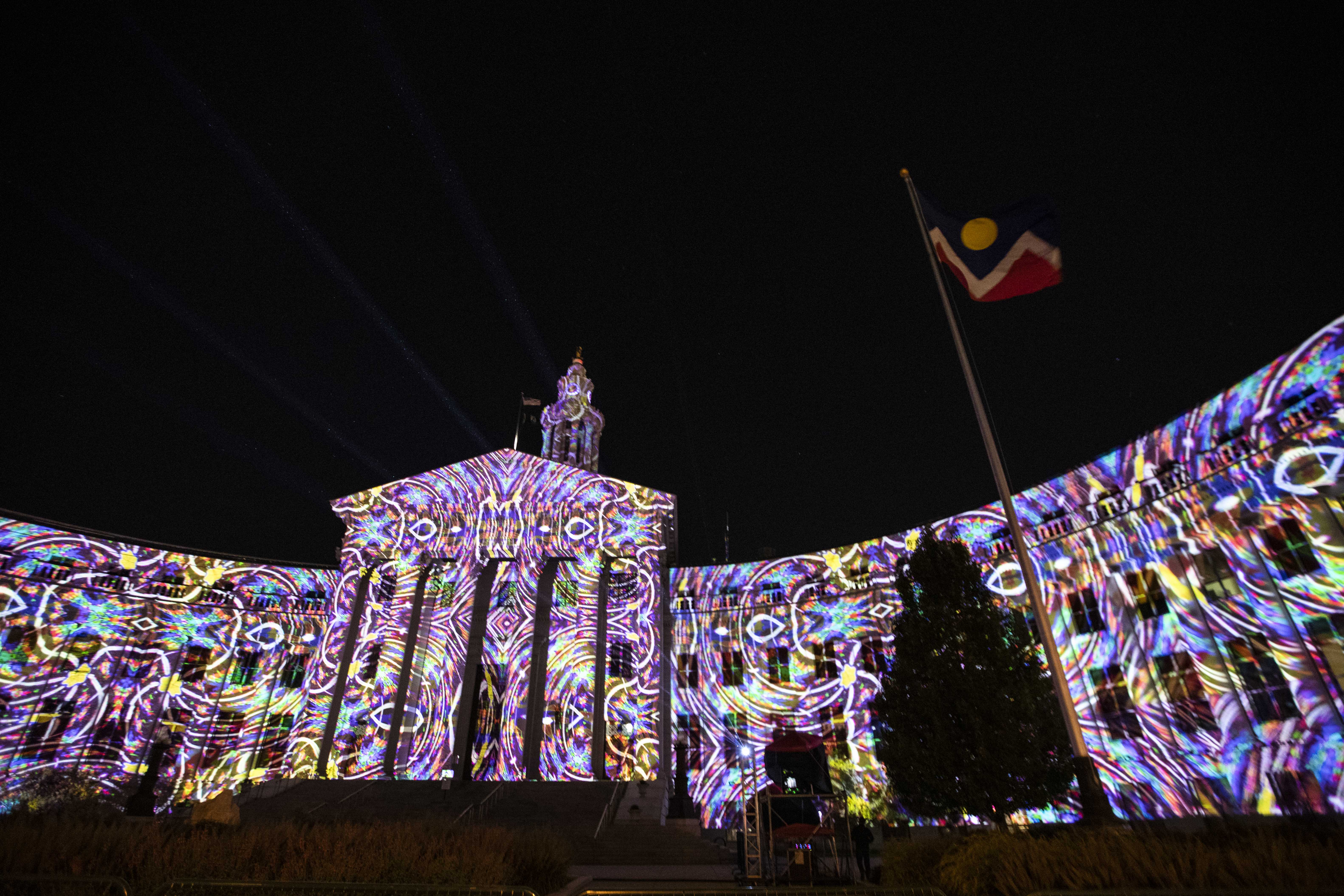 In case you missed it on Saturday night, a giant geometric metal jaguar took over Civic Center Park, acting as a stage for a lineup of Latinx musicians during the centerpiece of the Biennial of the Americas festival. Once the sun went down and darkness set in, beautiful projections came to life on the Denver City and County Building, evoking South American motifs and transforming downtown into an urban jungle.