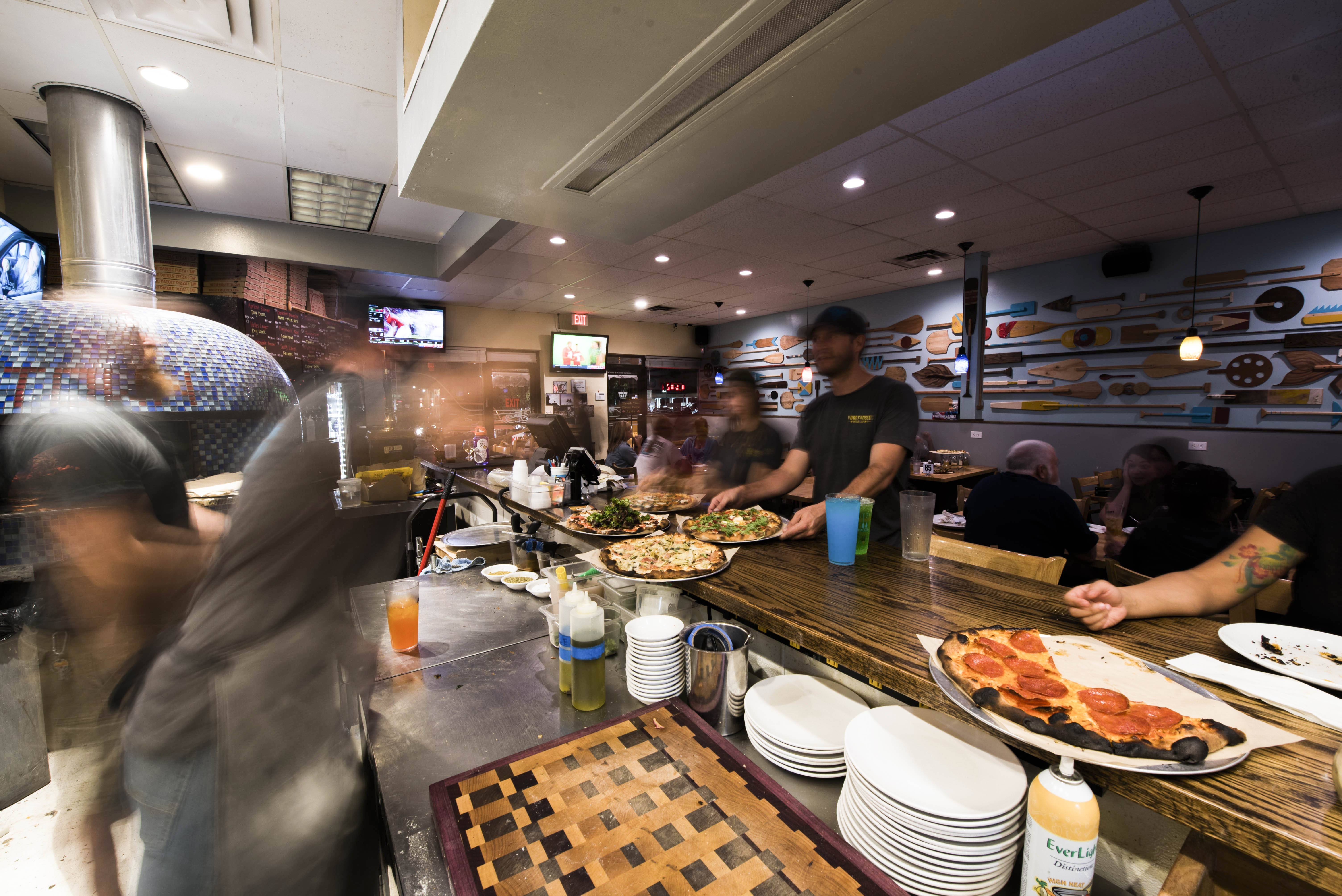 Wood Paddle isn’t just a unique name for this family-friendly pizzeria in Aurora. Rather, the funky shaped oars mirroring mermaid fins are used to decorate the walls while normal shaped paddles are used to slide freshly made pizzas into a teal tiled wood fire oven.