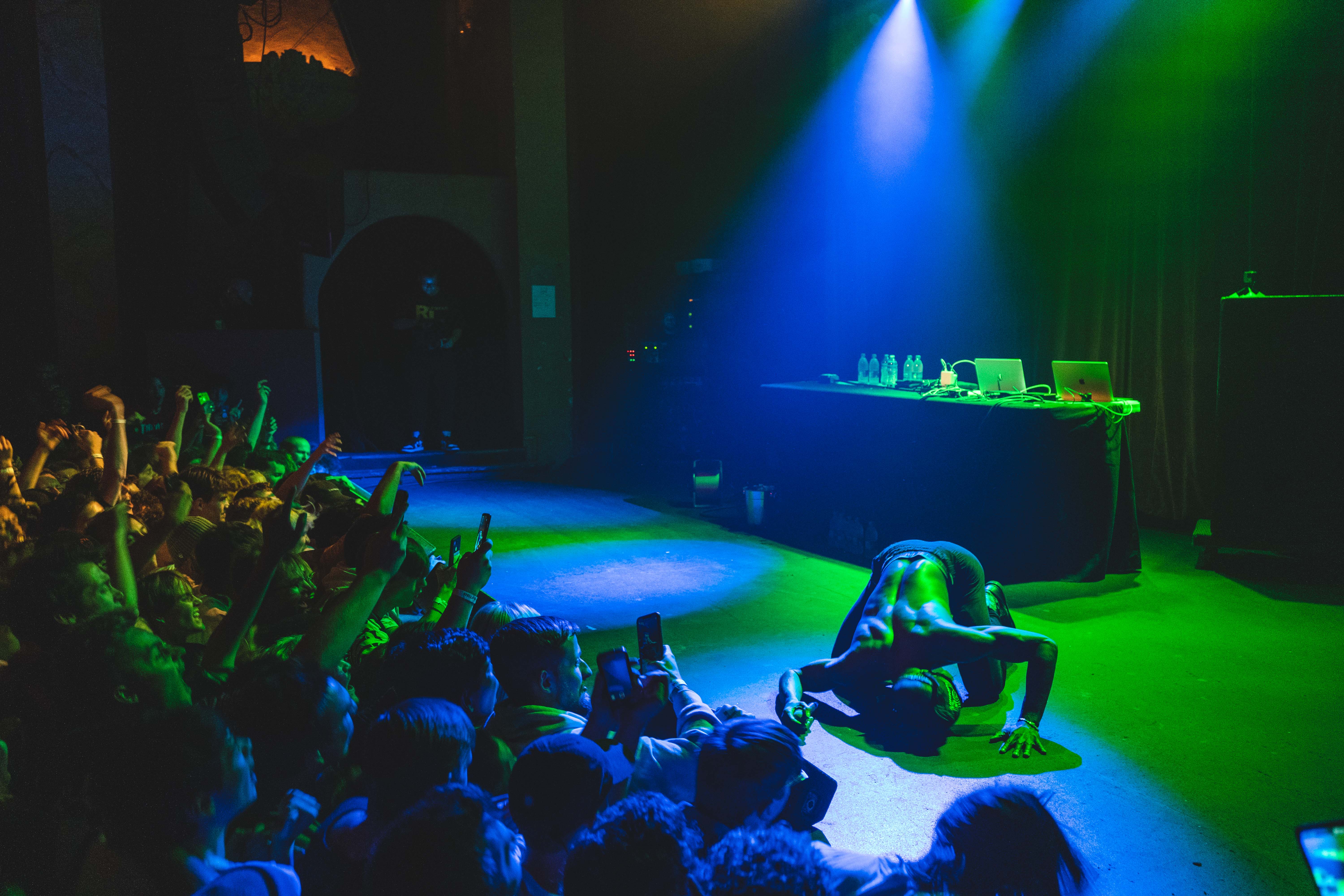 Butch Dawson kicked off the evening’s entertainment along with his DJ, Shido. The Baltimore-bred rapper’s experimental tendencies and occasionally goading lyrics made it obvious why Peggy chose him to be his supporting act. “Trigger” — the second song he performed and also the second track off his new album, Ollieworld — jarringly transitions into a skate-punk interlude at the song’s halfway mark, which features an actual the punk-rock band, white beast. Unexpected and seemingly random samples likewise pepper JPEG’s discography — see the industrial rock outro in “Kenan vs. Kel”.