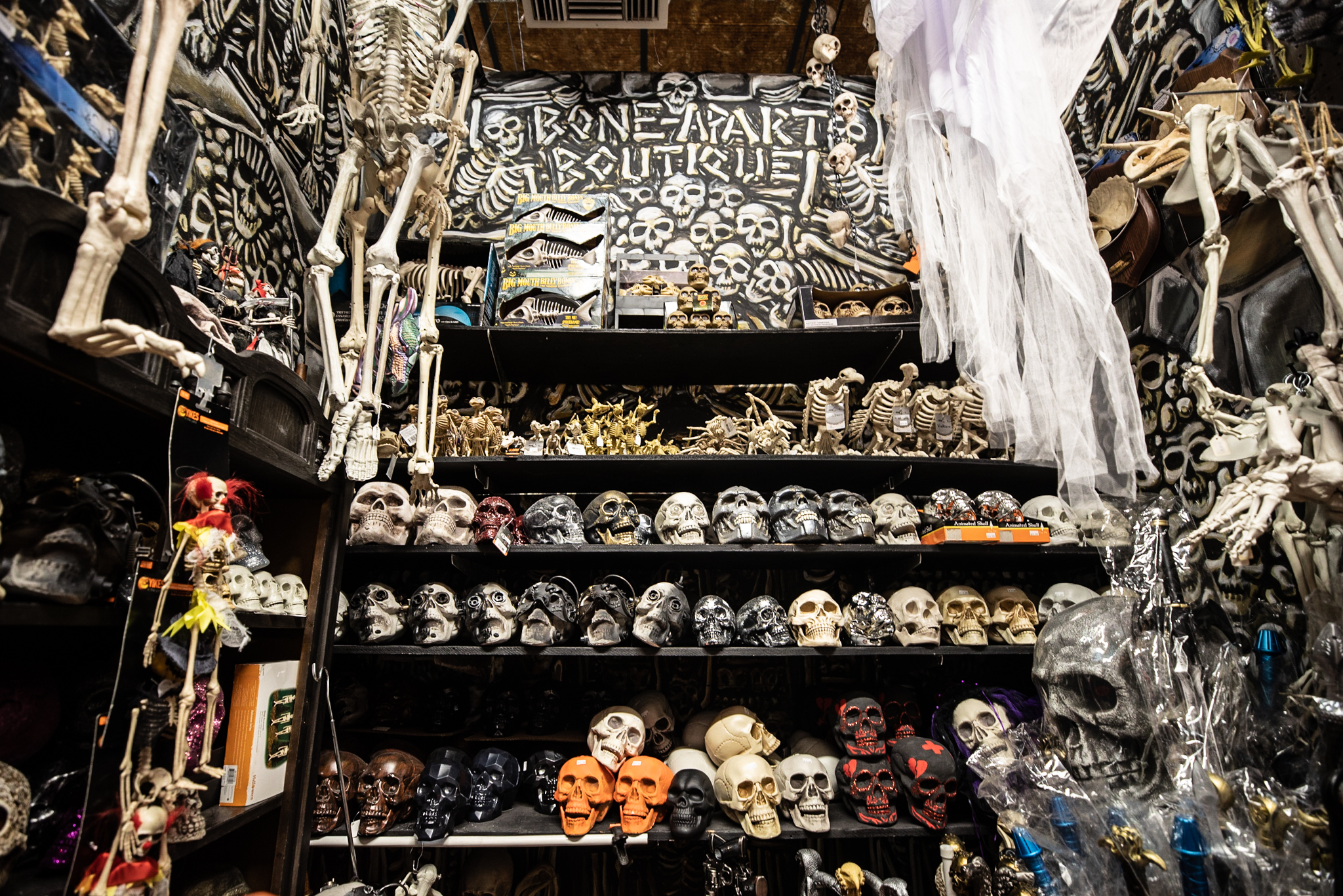 Aside from monstrous masks, Halloween home decor, spooky spider webs and glittery skulls and pumpkins, Reinke Brothers features roughly 6,000 costumes for sale and 10,000 costumes to rent — all categorized by time period or subject matter (for example, 1920s flapper dresses or mascot suits). They have a professional makeup studio, a “Bourbon Street” area with Mardi Gras beads for grabs, Christmas inflatables, pet costumes and silly hats.