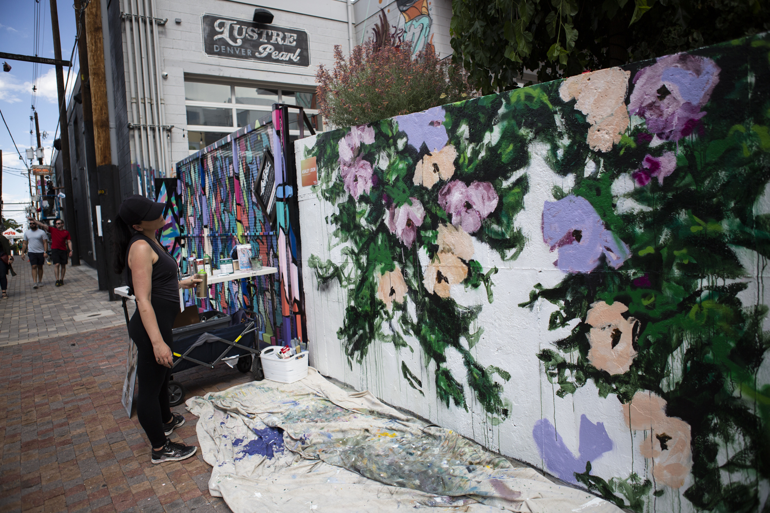 After Corona packs up, Joon will transform the little space into her own. She testifies that she found herself after seven hard years of studio practice. That essence is expressed through fluttery floral patterns that encapsulate the delicate and endearing characteristics of flowers as metaphors for grace, longing, happiness and more. Her use of non-traditional painting techniques brings movement into her paintings, and the flowers always seem to be captured in their most rapturous moment. If, after visiting her studio and gallery spot between November 15 and 24, you want to check out some of her murals, visit the following locations in Denver: The Garden at The Ramble Hotel, the alley between Larimer and Walnut on 26th Street, Hazel Art Bar and Charley Co.